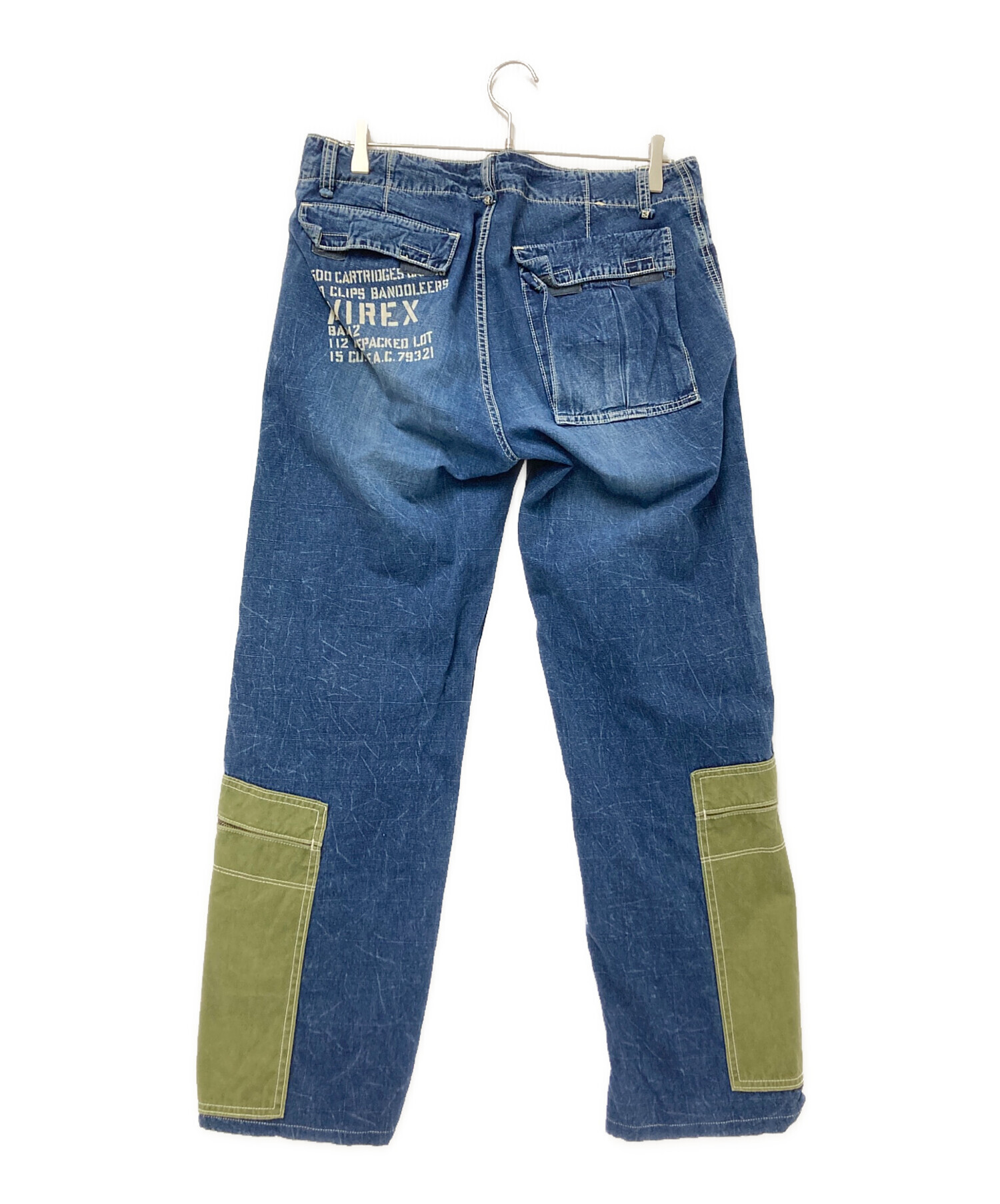 • AVIREX(アヴィレックス)AVIREX (アヴィレックス) 異素材ドッキングデニムパンツ インディゴ サイズ:Lの古着・服飾アイテム 背面ダメージ