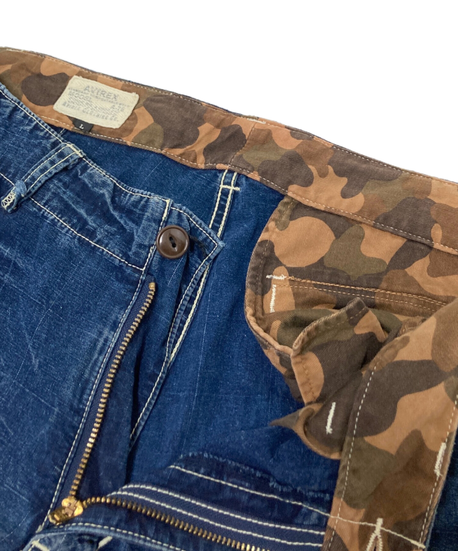 • AVIREX(アヴィレックス)AVIREX (アヴィレックス) 異素材ドッキングデニムパンツ インディゴ サイズ:Lの古着・服飾アイテム