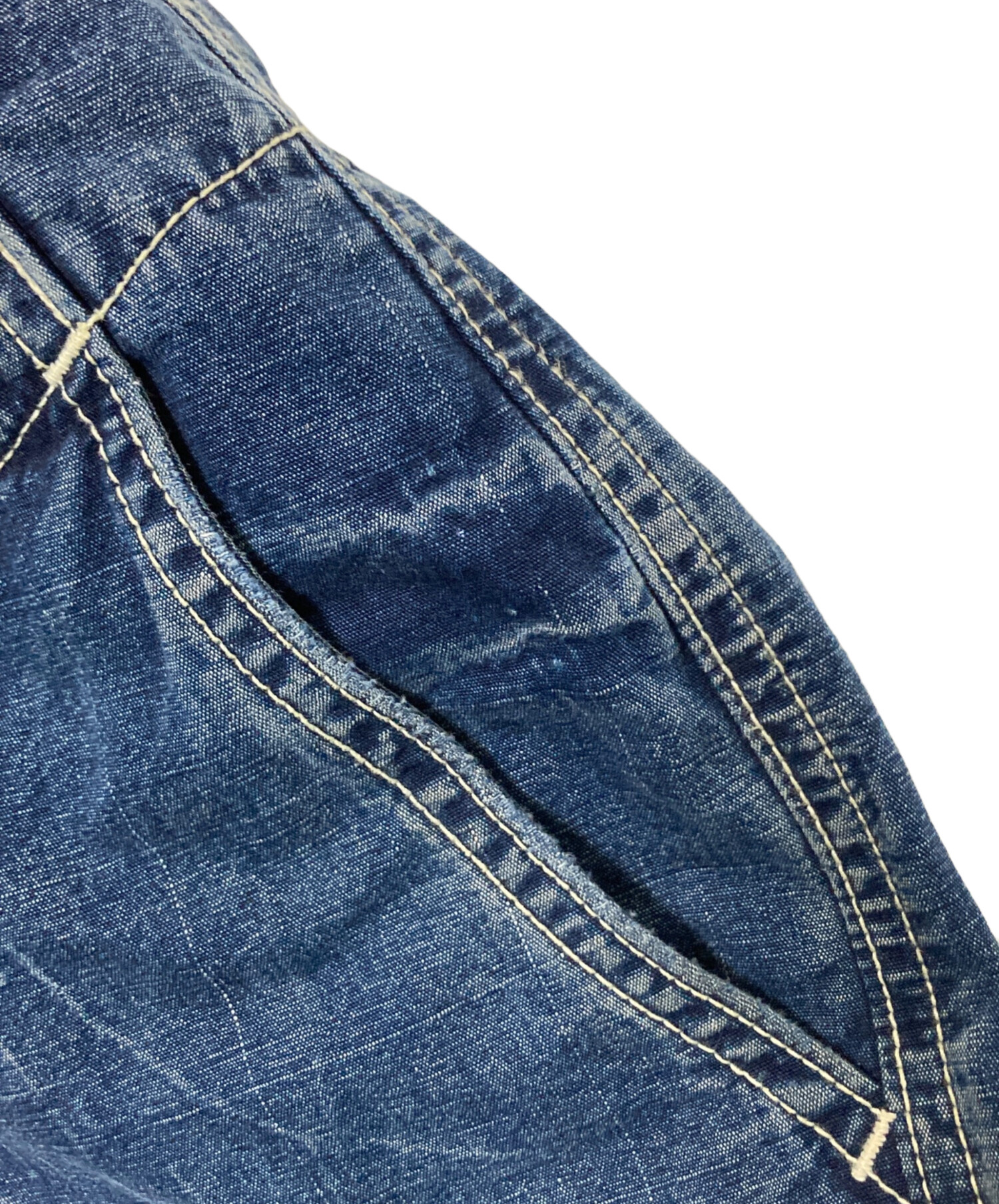 • AVIREX(アヴィレックス)AVIREX (アヴィレックス) 異素材ドッキングデニムパンツ インディゴ サイズ:Lの古着・服飾アイテム 背面色褪せ