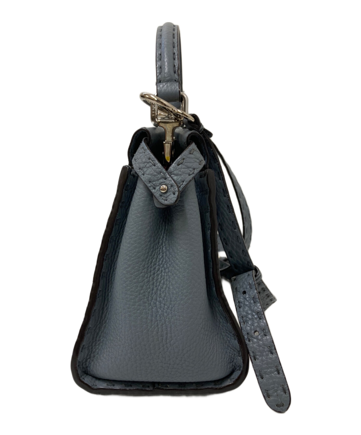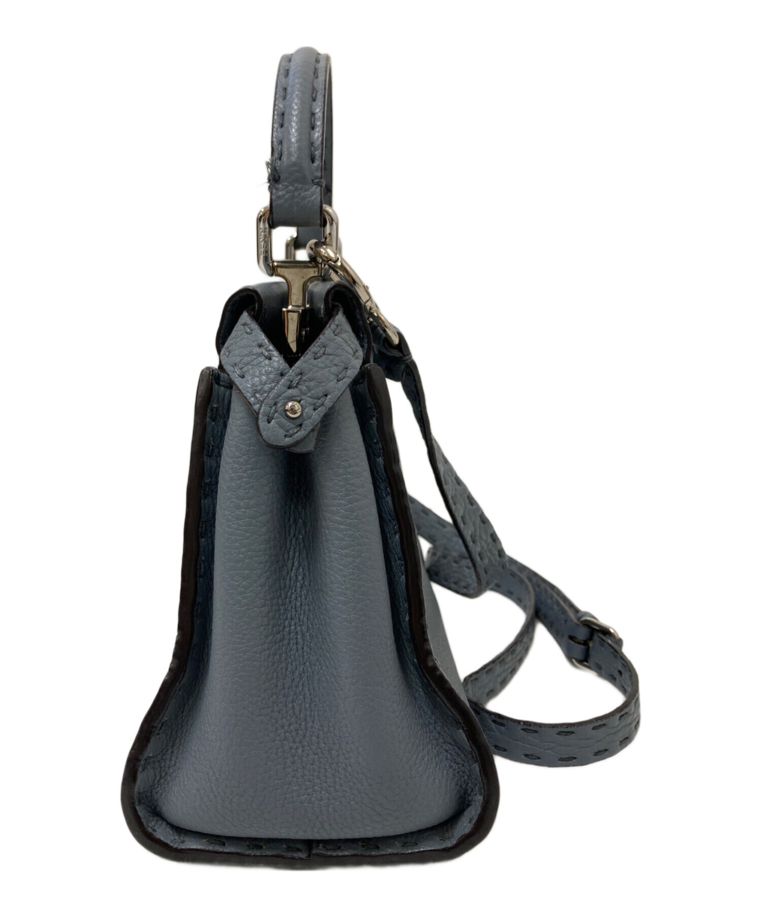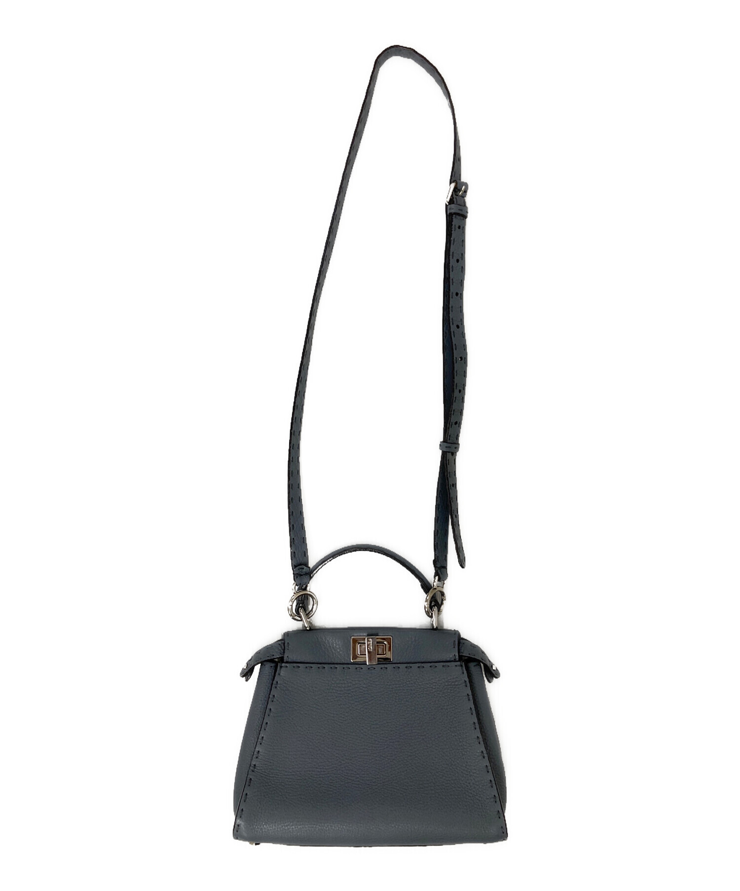 | スタッフコメント | 1925年から愛され続けるFENDIの「セレリア」ライン。上質で柔らかいレザーの為、肌なじみがよく経年変化も楽しめそうです。色味もくすんだブルーとグレーが混ざったような色合いなので、コーディネートの邪魔にもならず、人とも被りにくいです。 |