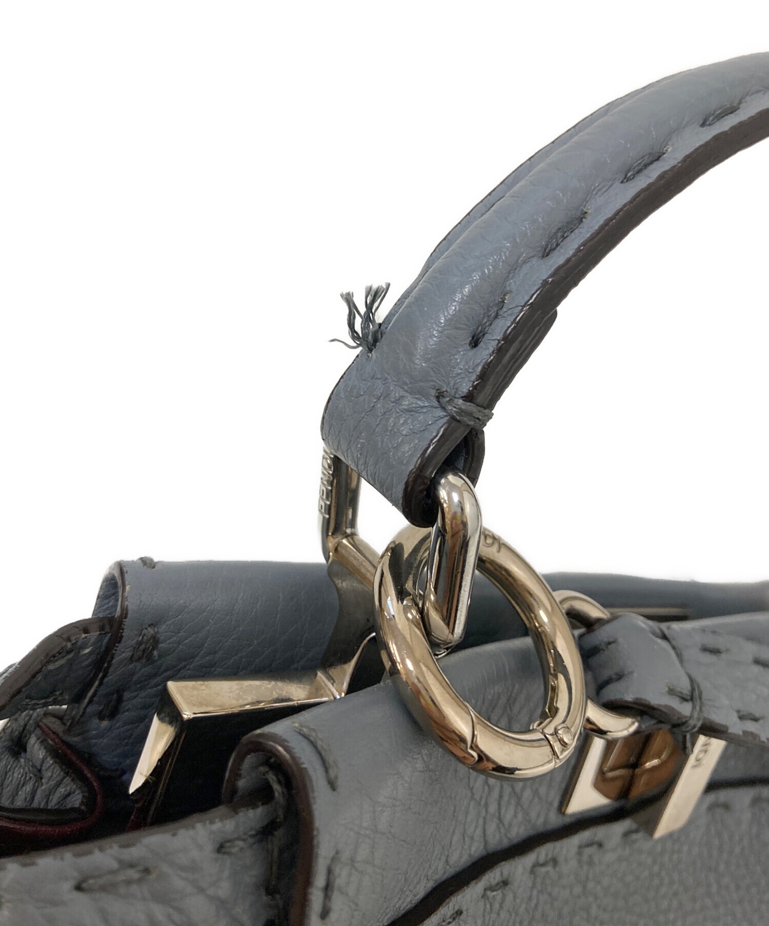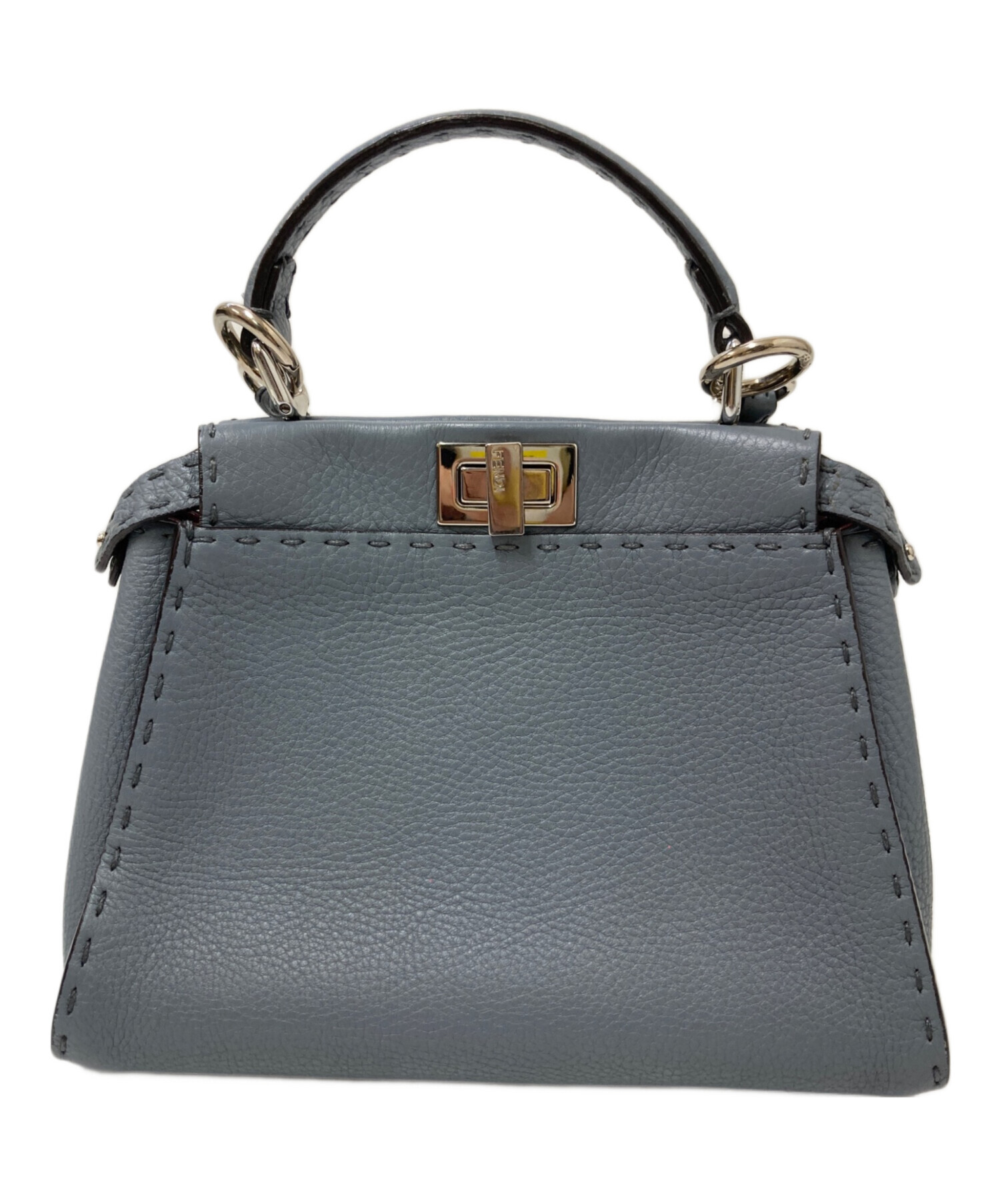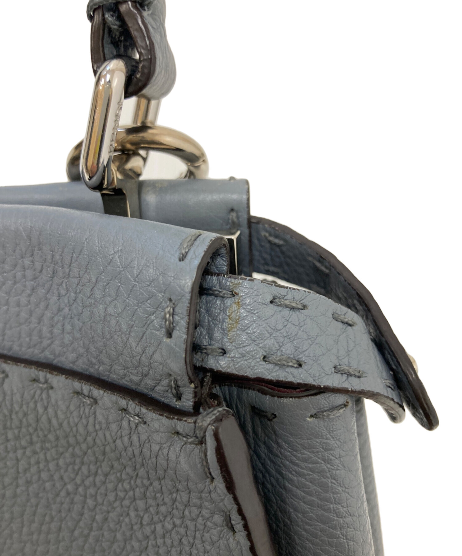 | スタッフコメント | 1925年から愛され続けるFENDIの「セレリア」ライン。上質で柔らかいレザーの為、肌なじみがよく経年変化も楽しめそうです。色味もくすんだブルーとグレーが混ざったような色合いなので、コーディネートの邪魔にもならず、人とも被りにくいです。 |