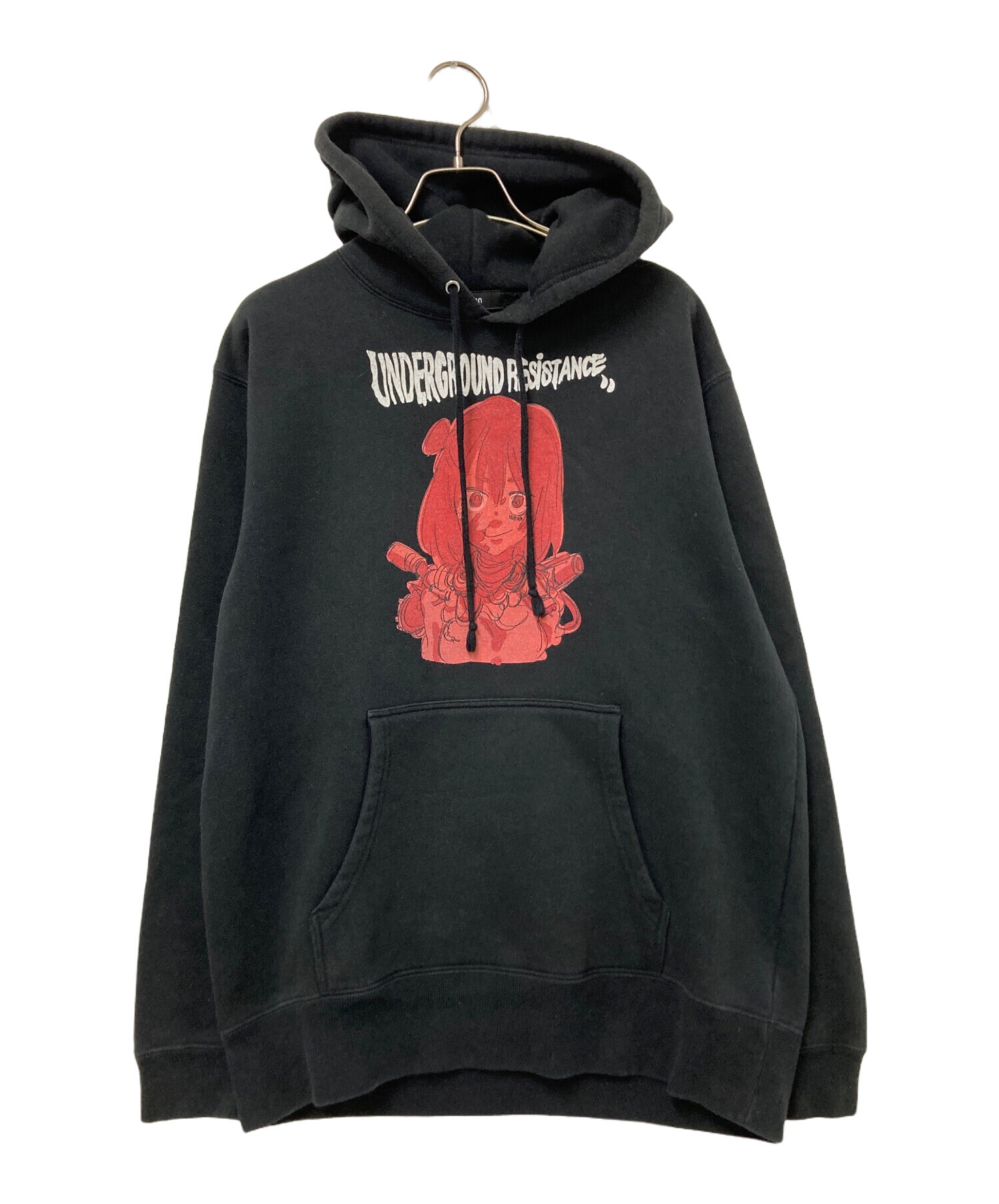 • nubian(ヌビアン)nubian (ヌビアン) プリントパーカー ブラック サイズ:Lの古着・服飾アイテム 袖口ヨゴレ
