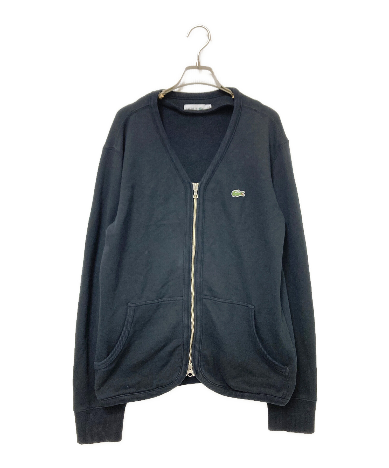 • LACOSTE(ラコステ)LACOSTE (ラコステ) スウェットカーディガン ブラック サイズ:US:Mの古着・服飾アイテム フロントヨゴレ