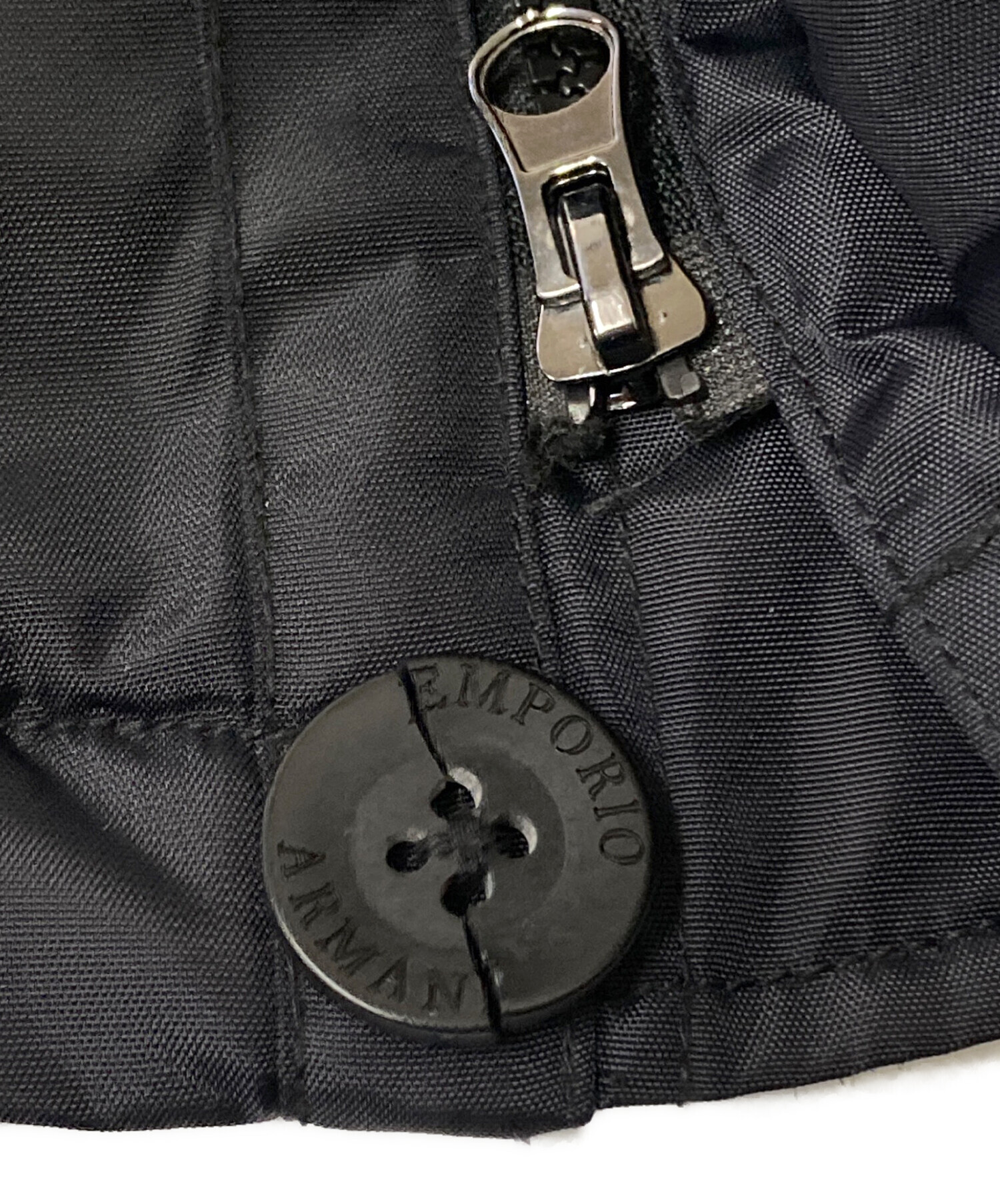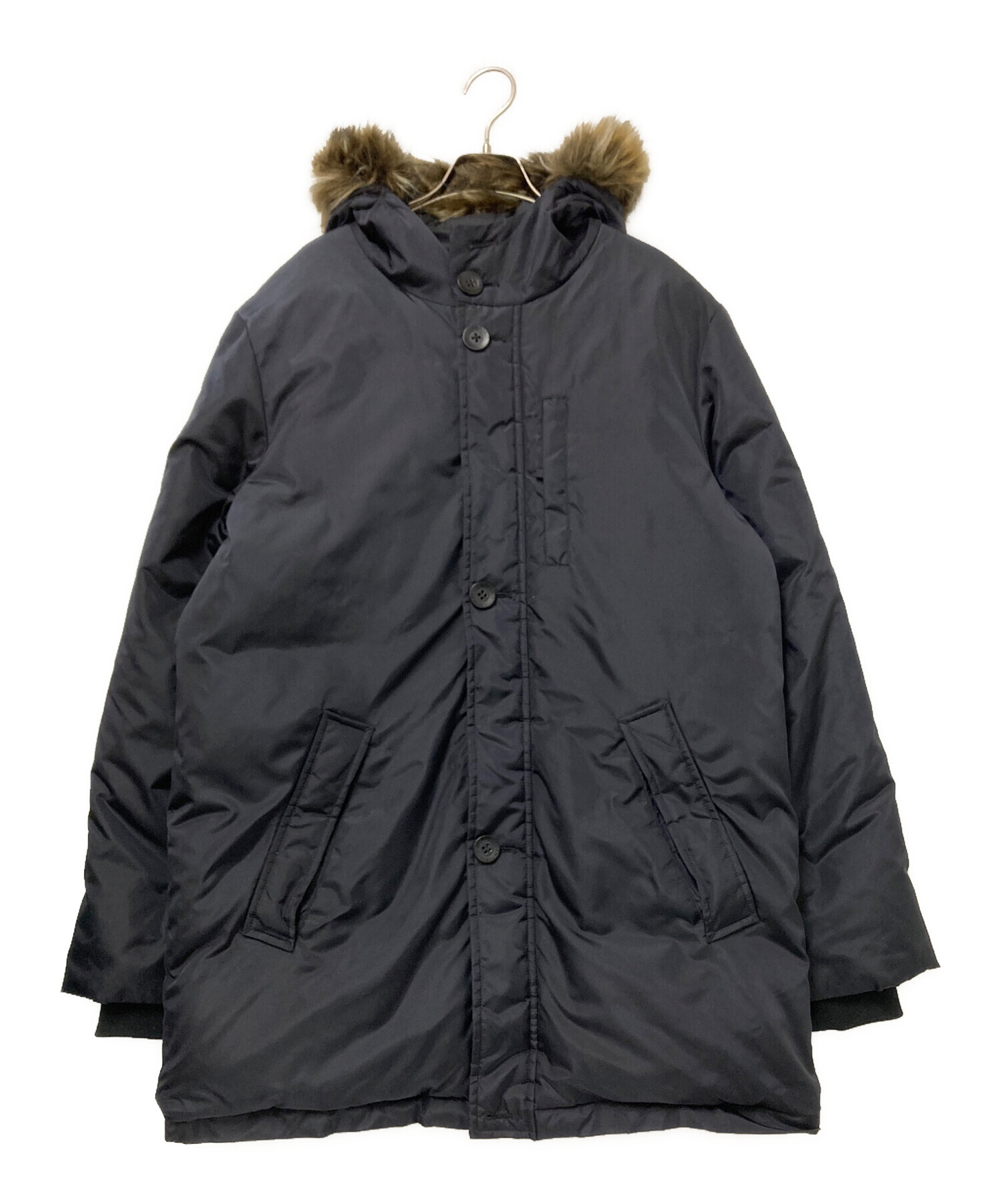 • EMPORIO ARMANI(エンポリオアルマーニ)EMPORIO ARMANI (エンポリオアルマーニ) フェイクファーダウンコート ネイビー サイズ:Mの古着・服飾アイテム 第一ボタン欠損