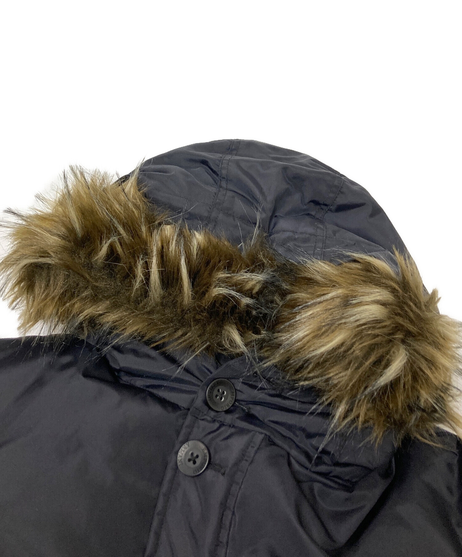 • EMPORIO ARMANI(エンポリオアルマーニ)EMPORIO ARMANI (エンポリオアルマーニ) フェイクファーダウンコート ネイビー サイズ:Mの古着・服飾アイテム 背面ヨゴレ
