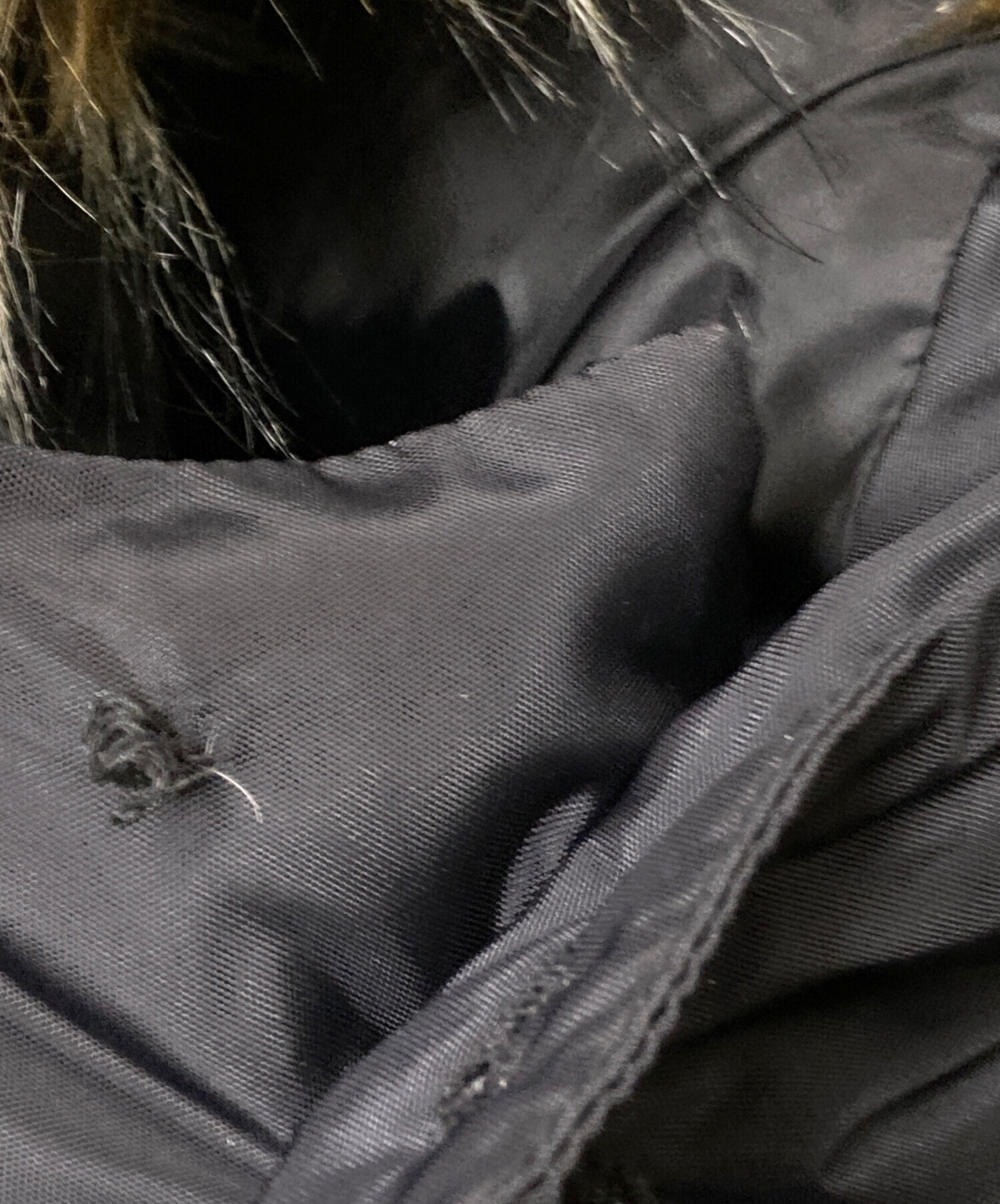 • EMPORIO ARMANI(エンポリオアルマーニ)EMPORIO ARMANI (エンポリオアルマーニ) フェイクファーダウンコート ネイビー サイズ:Mの古着・服飾アイテム ボタン割れ
