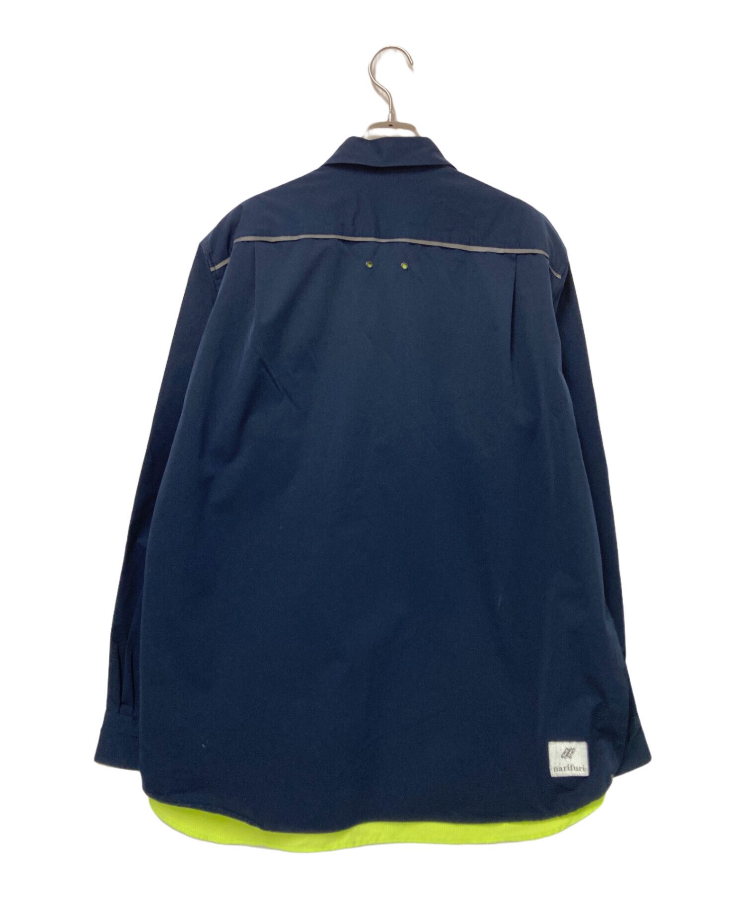 • narifuri(ナリフリ)narifuri (ナリフリ) UPR ベンチレーションシャツ ネイビー×イエロー サイズ:XLの古着・服飾アイテム 背面ヨゴレ