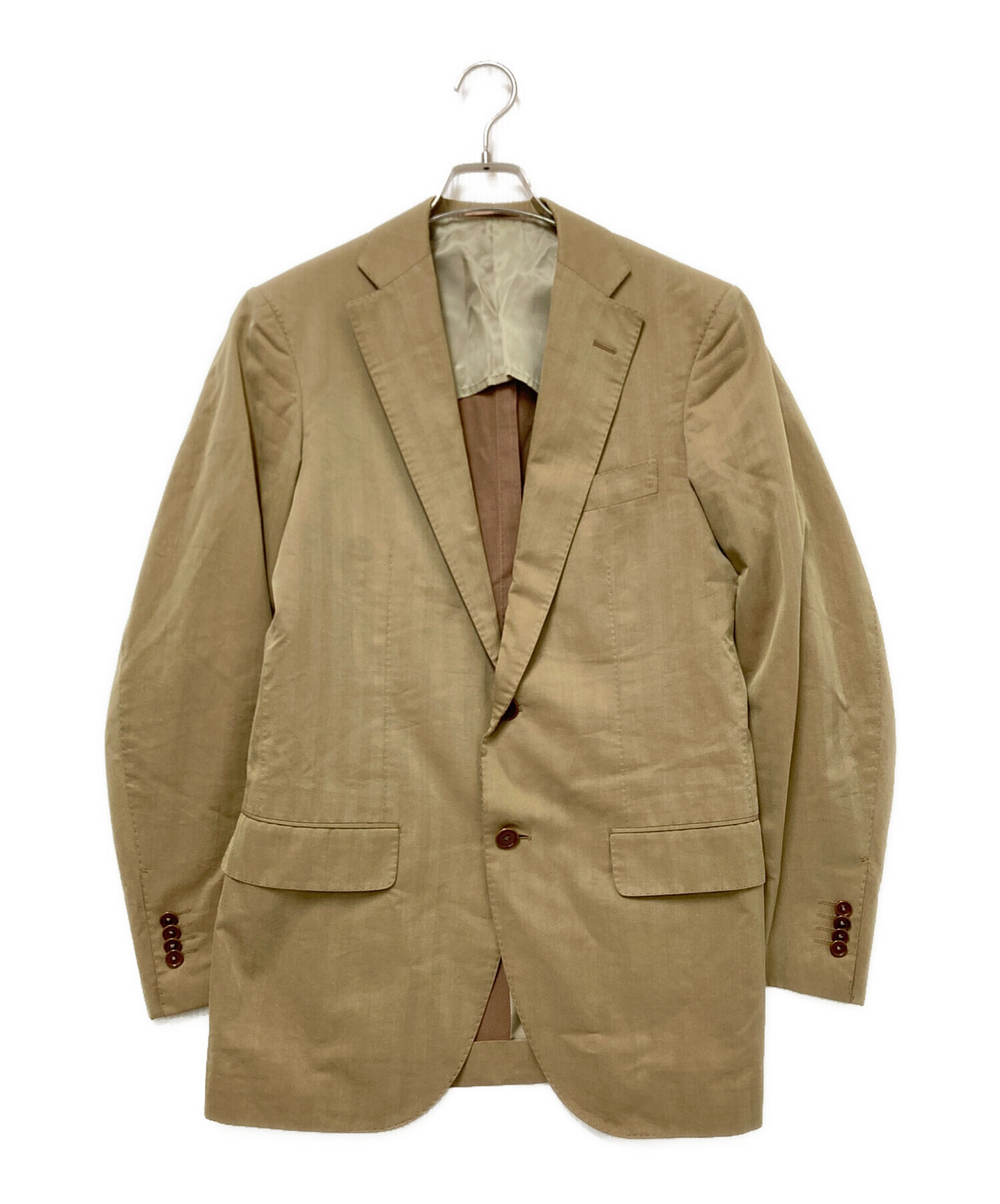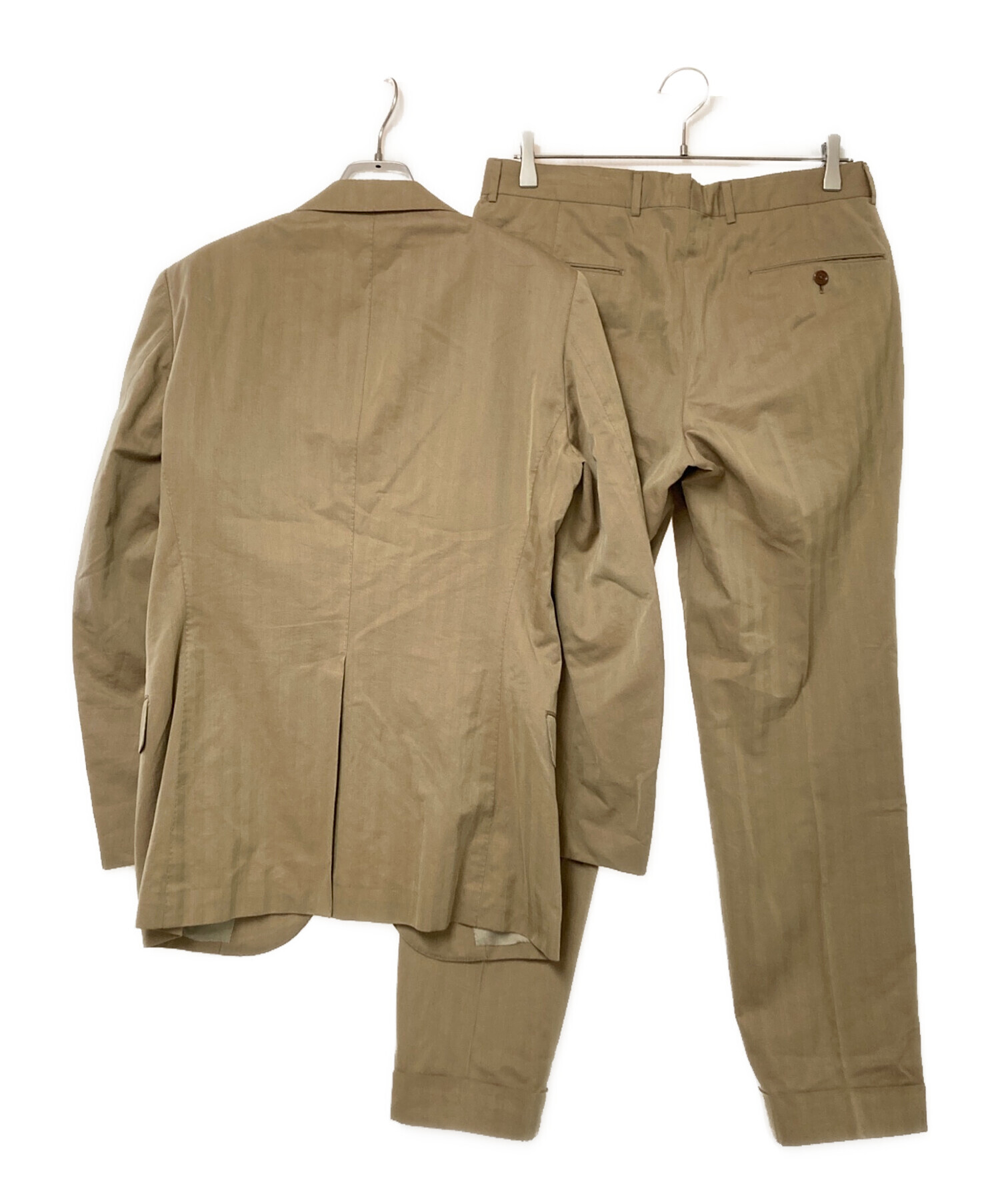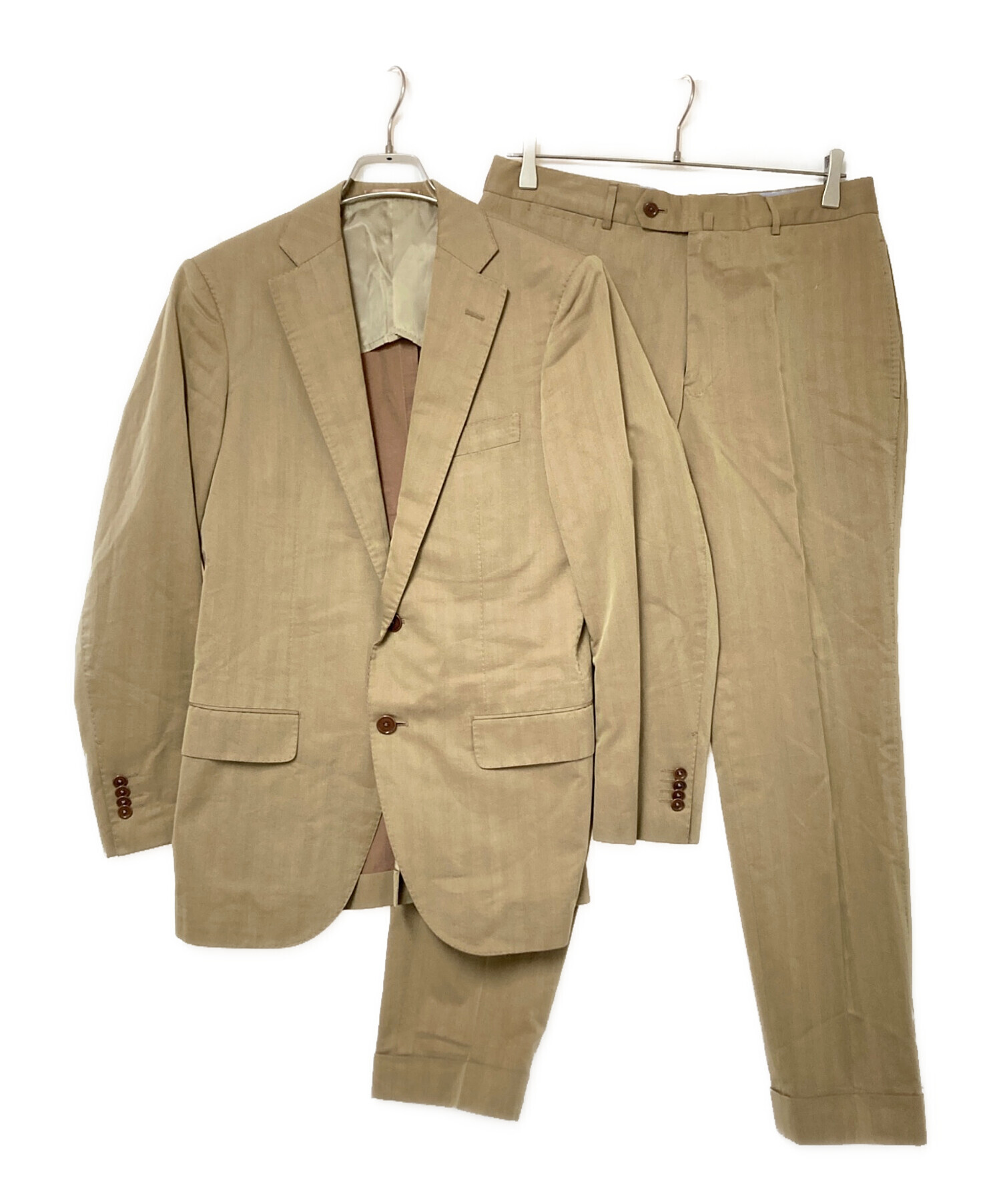 • TOMORROW LAND PILGRIM(トゥモローランド ピルグリム)TOMORROW LAND PILGRIM (トゥモローランド ピルグリム) ヘリンボーンセットアップスーツ ベージュ サイズ:46の古着・服飾アイテム 襟ヨゴレ