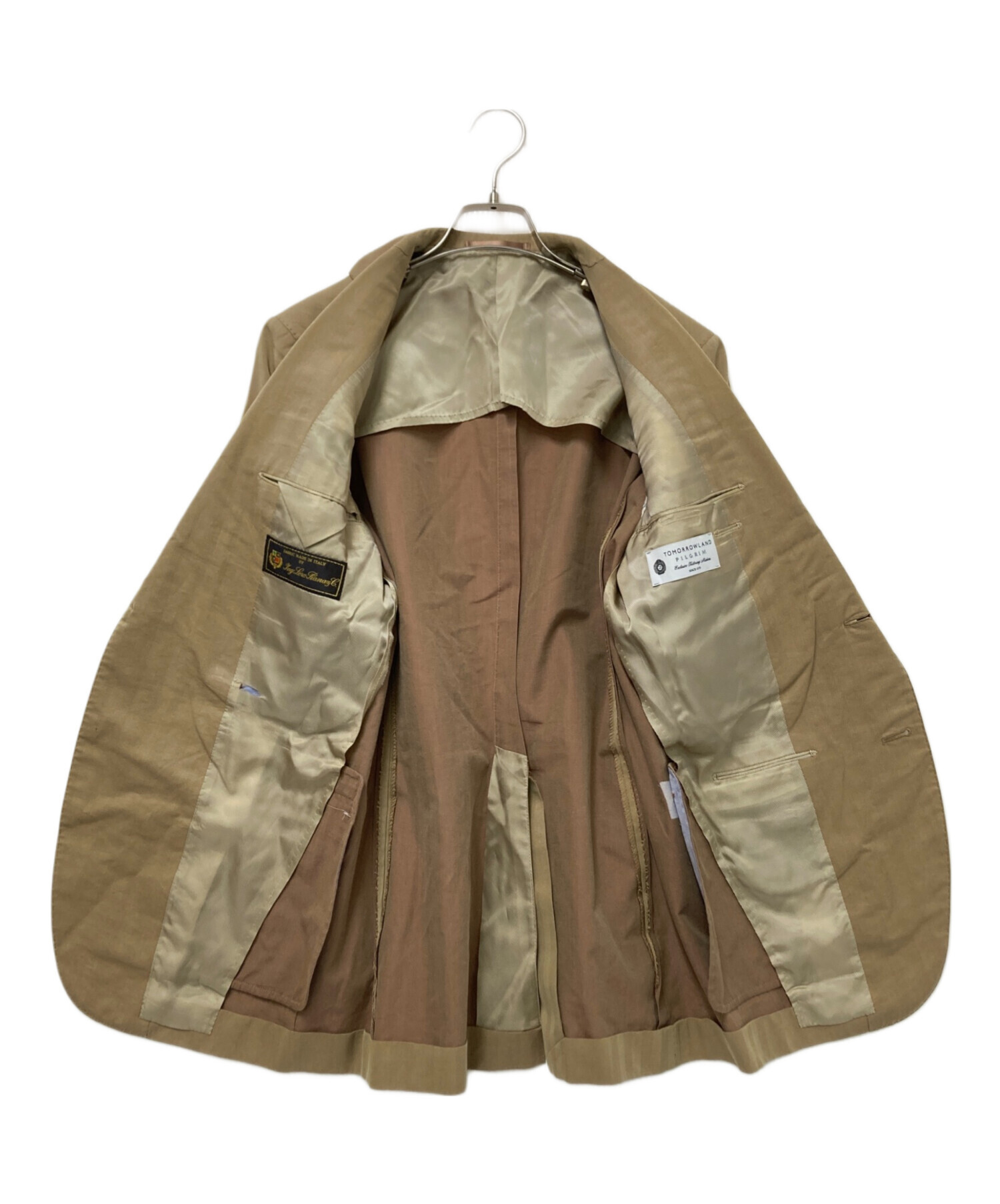 • TOMORROW LAND PILGRIM(トゥモローランド ピルグリム)TOMORROW LAND PILGRIM (トゥモローランド ピルグリム) ヘリンボーンセットアップスーツ ベージュ サイズ:46の古着・服飾アイテム アウターライナーダメージ