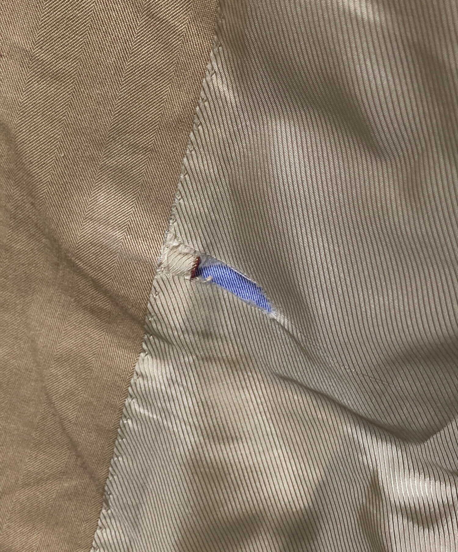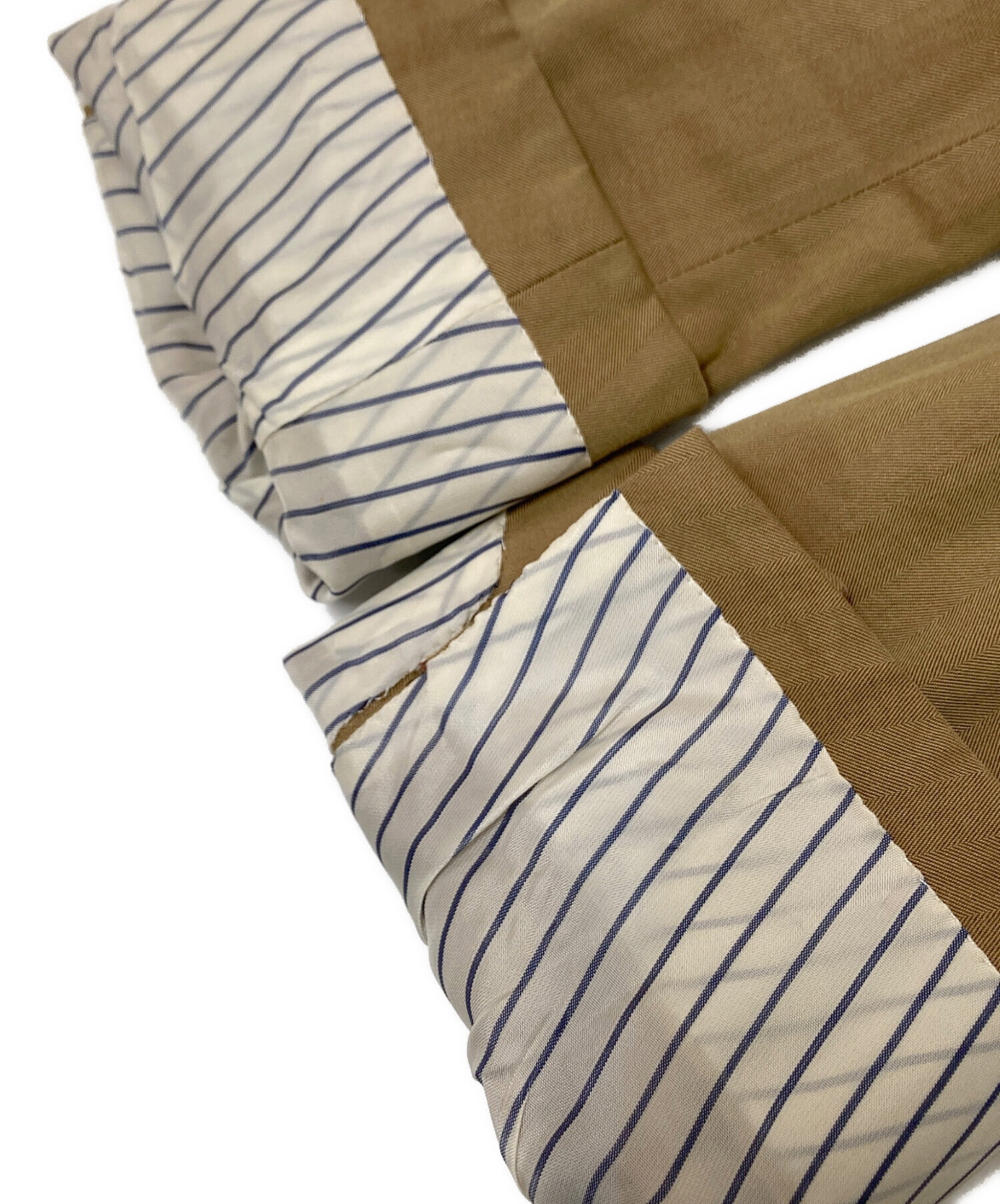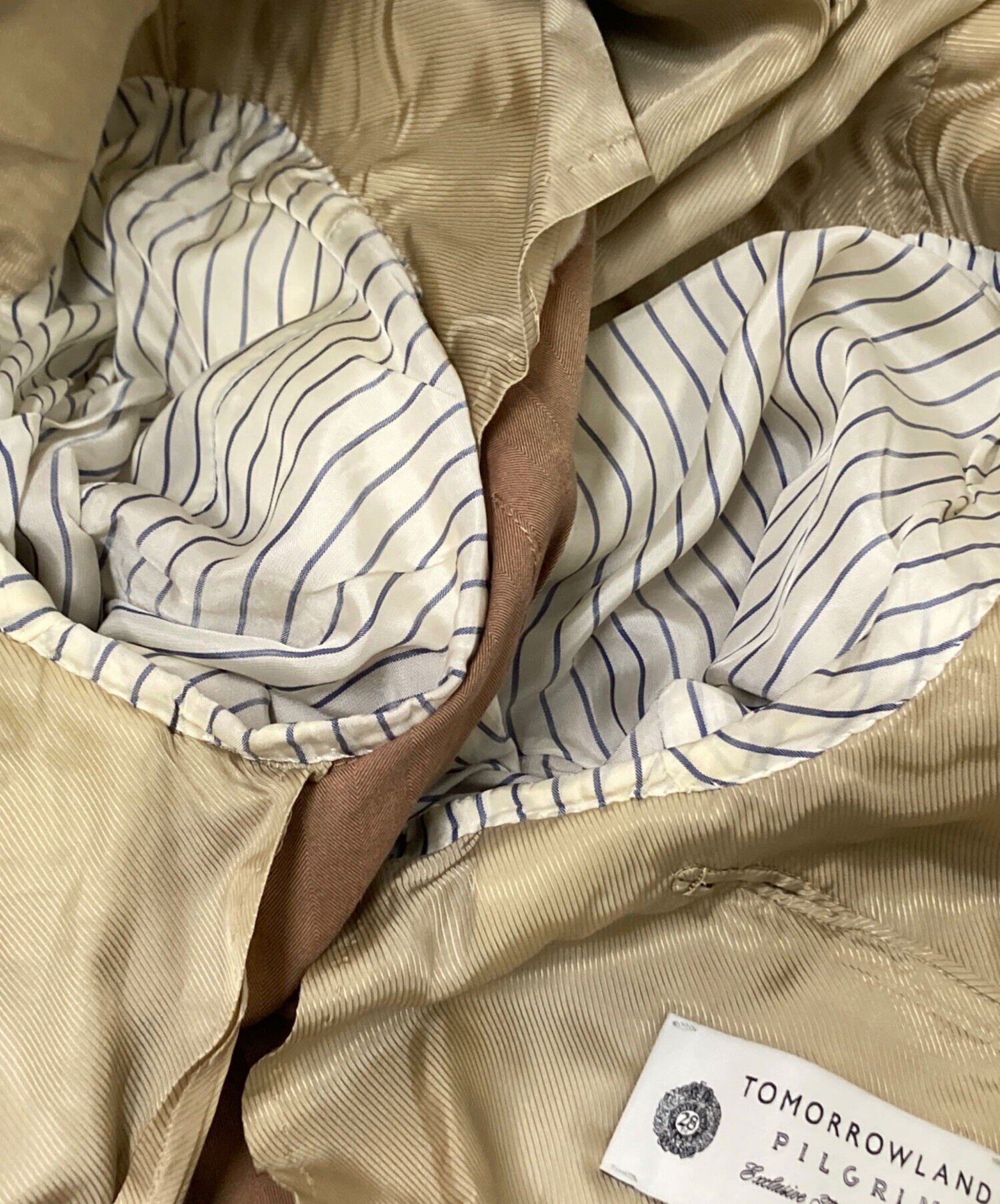 • TOMORROW LAND PILGRIM(トゥモローランド ピルグリム)TOMORROW LAND PILGRIM (トゥモローランド ピルグリム) ヘリンボーンセットアップスーツ ベージュ サイズ:46の古着・服飾アイテム 内部脇にヨゴレ
