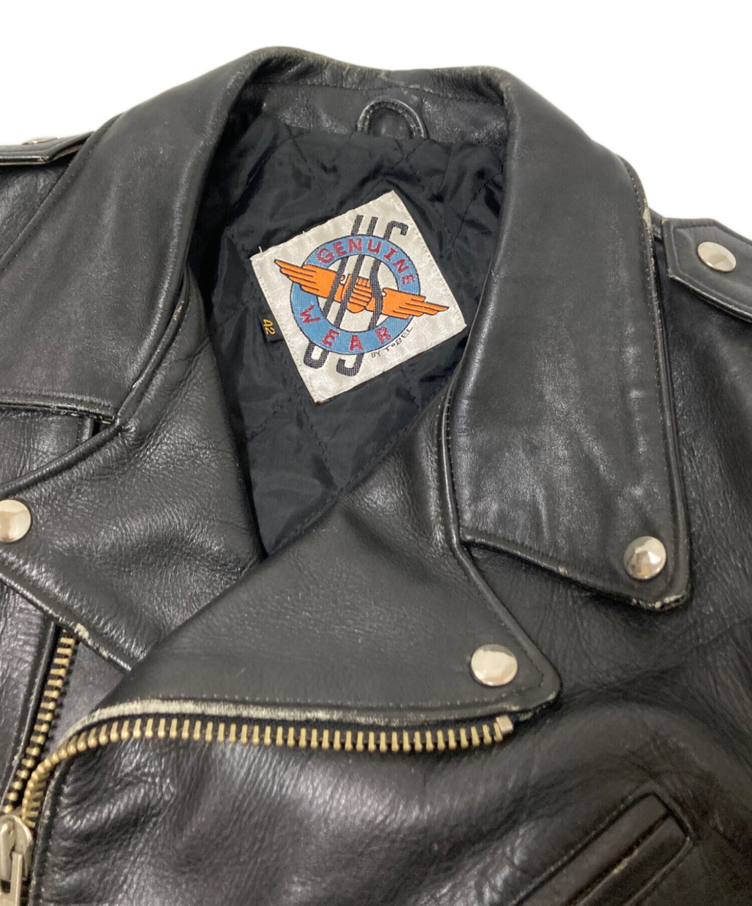 • US GENUINE WEAR(ユーエス ジェニュイン ウェア)US GENUINE WEAR (ユーエス ジェニュイン ウェア) レザーライダースジャケット ブラック サイズ:42の古着・服飾アイテム 襟スレ