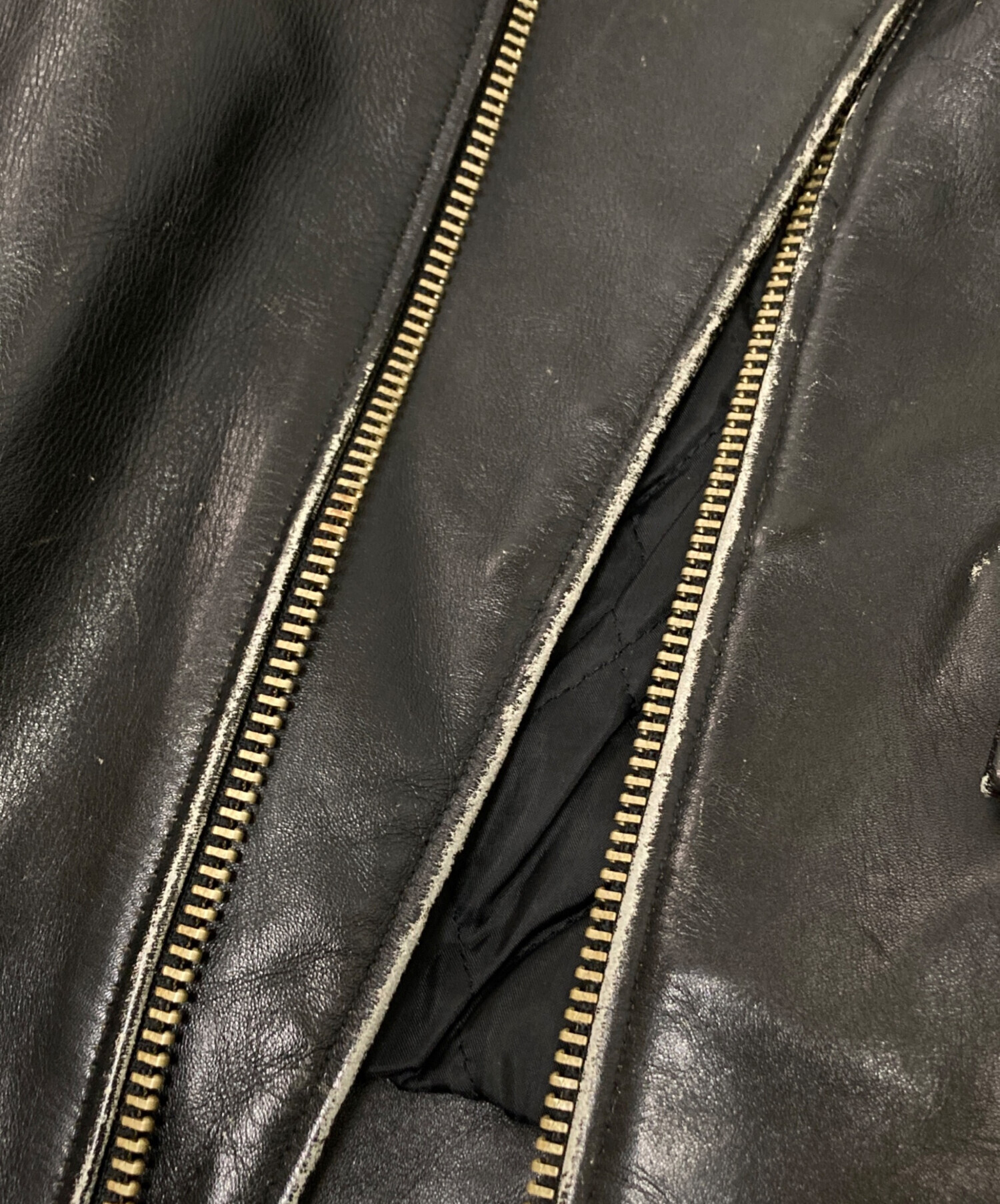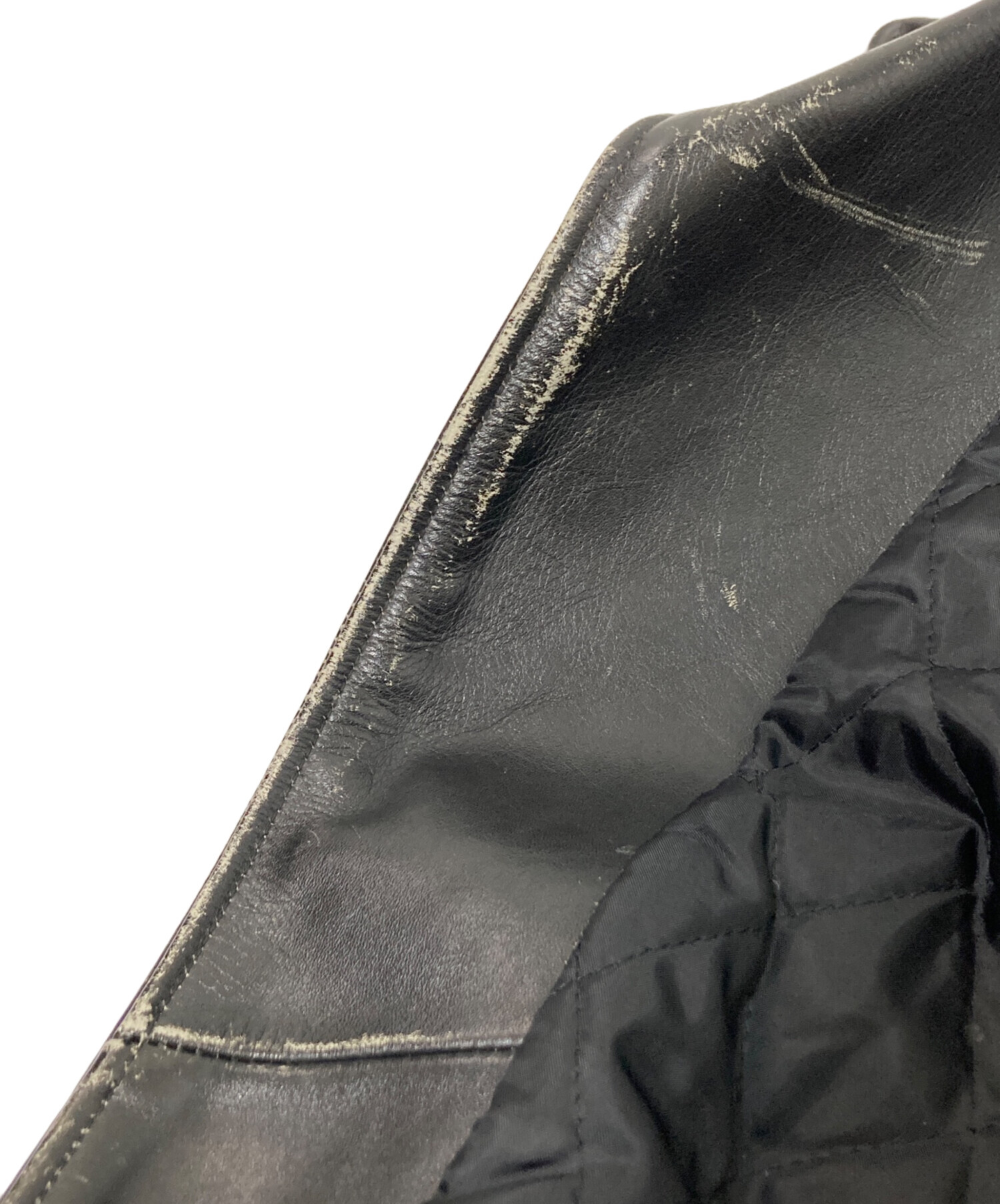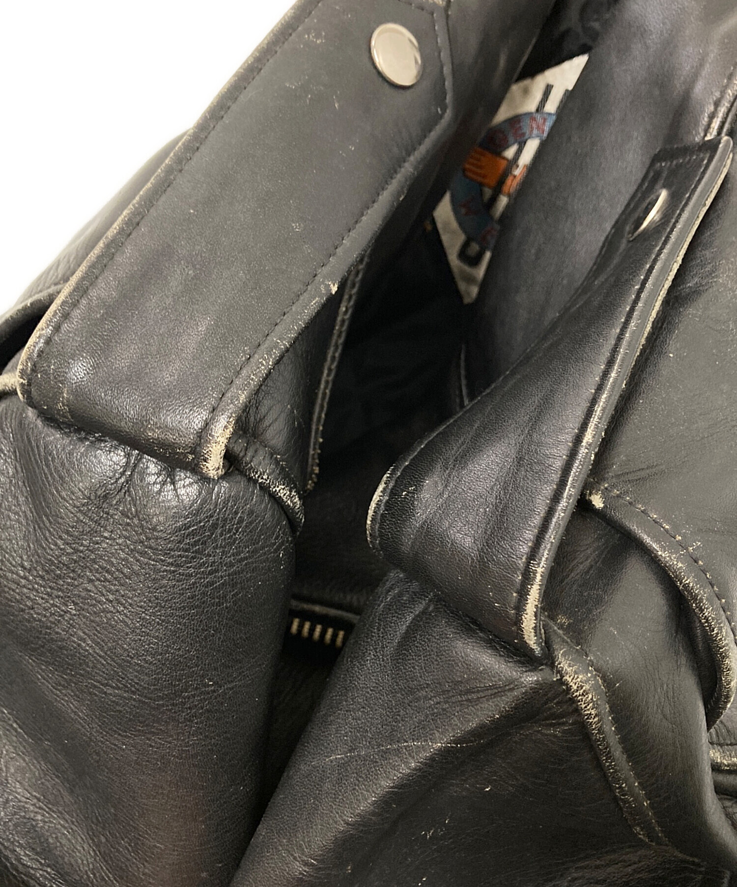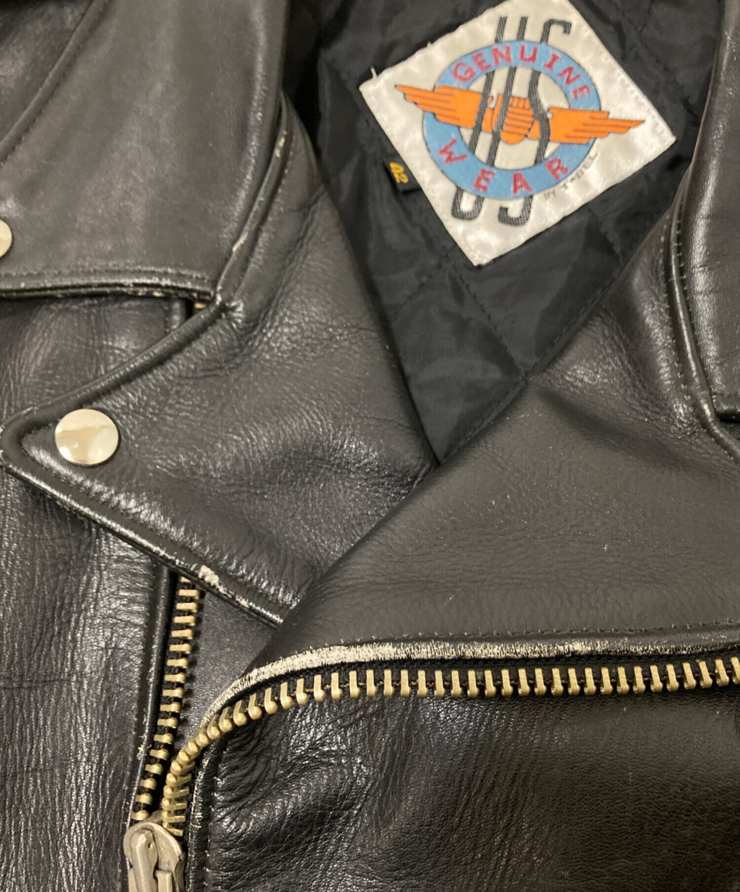 • US GENUINE WEAR(ユーエス ジェニュイン ウェア)US GENUINE WEAR (ユーエス ジェニュイン ウェア) レザーライダースジャケット ブラック サイズ:42の古着・服飾アイテム 内部スレ