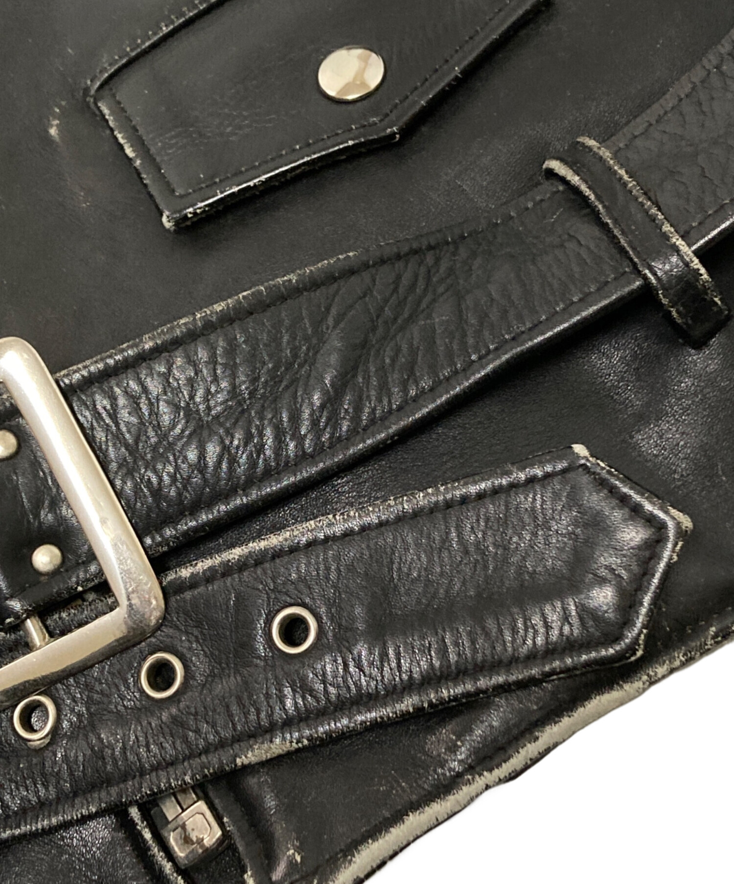 • US GENUINE WEAR(ユーエス ジェニュイン ウェア)US GENUINE WEAR (ユーエス ジェニュイン ウェア) レザーライダースジャケット ブラック サイズ:42の古着・服飾アイテム バックルキズ