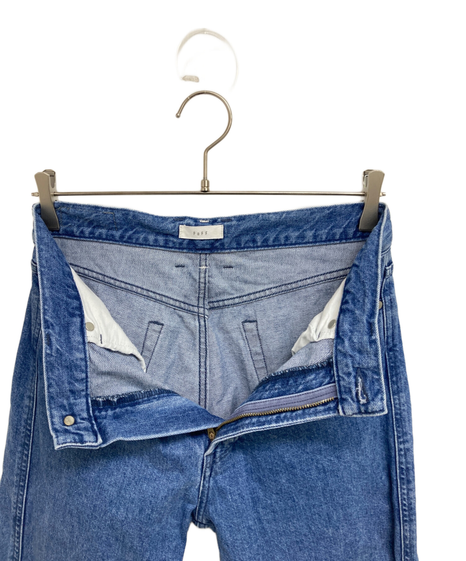 • PoFF(ポーフ)PoFF (ポーフ) basic straight denim インディゴ サイズ:25の古着・服飾アイテム ベルトループホツレ