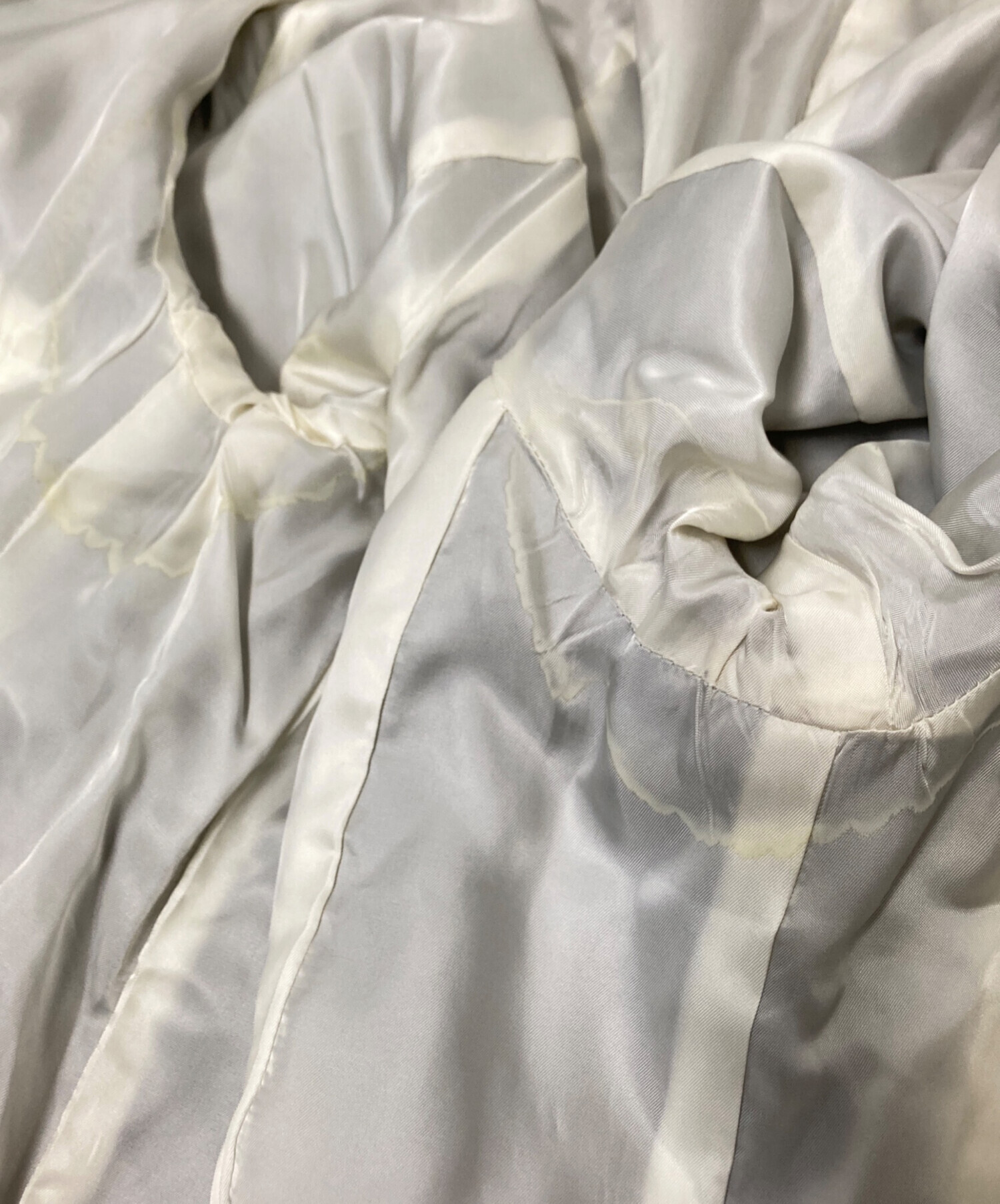 目立つシミや汚れ、におい等がある場合は商品画像や説明文にて極力表記させていただいておりますが、中古品という商品の特性上、全ての瑕疵や不備、洋服直し箇所を撮影・記載をすることは難しくなっております。また、ほとんどのアイテムは店頭と併売しておりますため、出品掲載時からコンディションが変動している場合もございます。あらかじめご了承くださいませ。