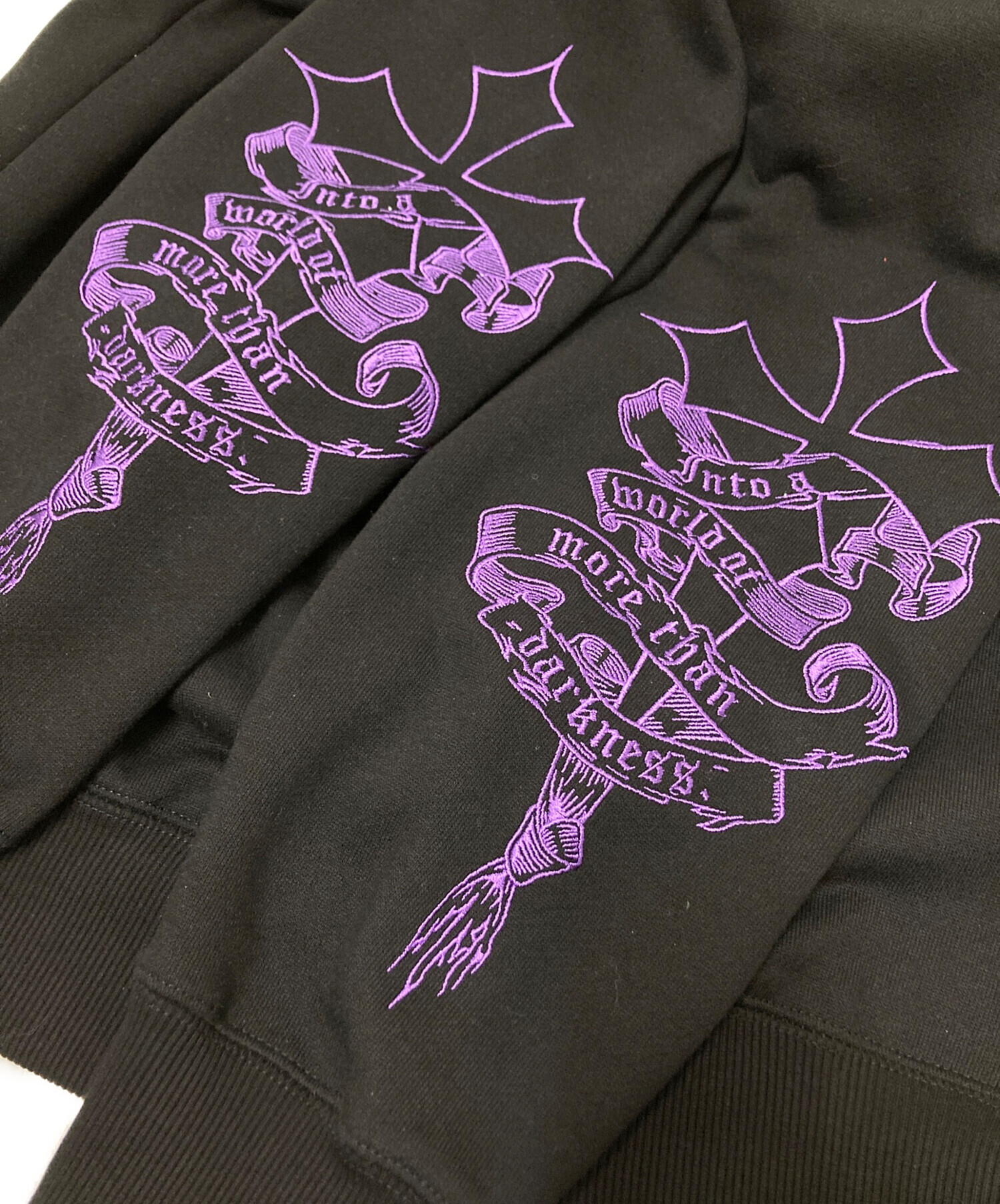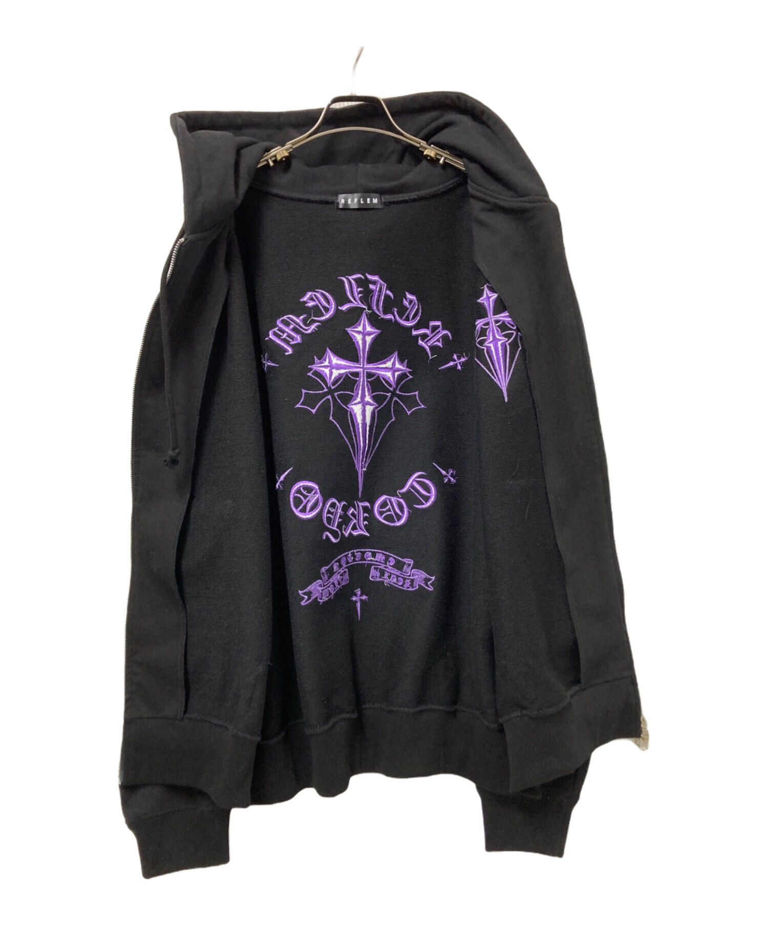 • REFLEM(レフレム)REFLEM (レフレム) クロス刺繍ZIPフーディー ブラック×パープル サイズ:FREEの古着・服飾アイテム 袖裏ヨゴレ有
