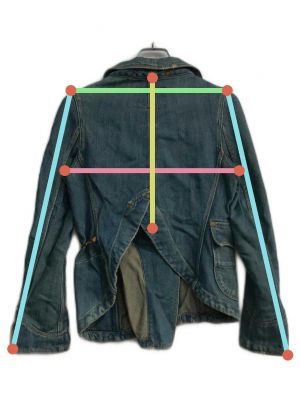 当サイトでは商品の表記サイズの他に、出品商品を採寸しサイズを記載しております。また、実際のアイテム画像を使用した計測とイラストを使用した計測の2パターンがございます。