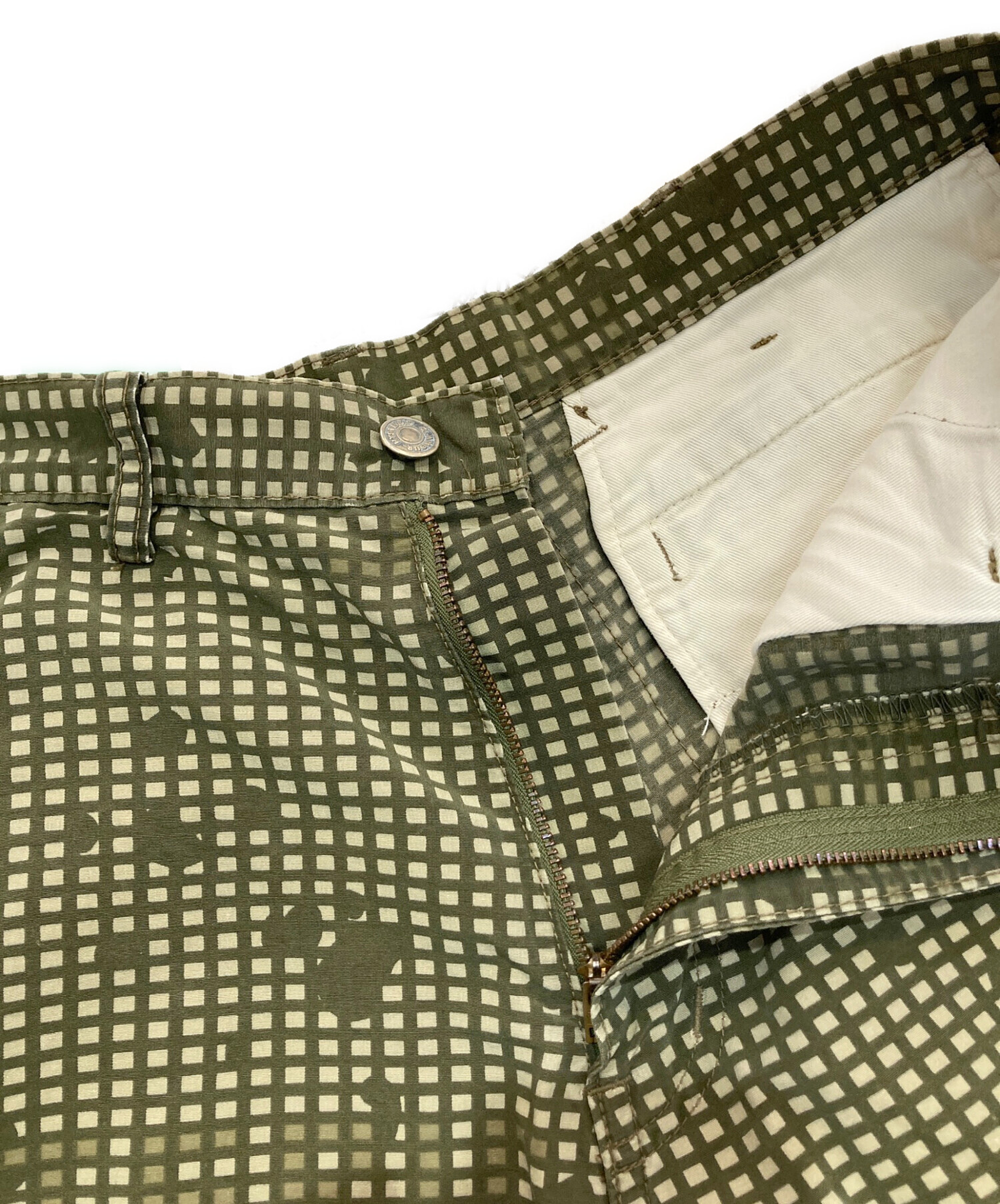 目立つシミや汚れ、におい等がある場合は商品画像や説明文にて極力表記させていただいておりますが、中古品という商品の特性上、全ての瑕疵や不備、洋服直し箇所を撮影・記載をすることは難しくなっております。また、ほとんどのアイテムは店頭と併売しておりますため、出品掲載時からコンディションが変動している場合もございます。あらかじめご了承くださいませ。