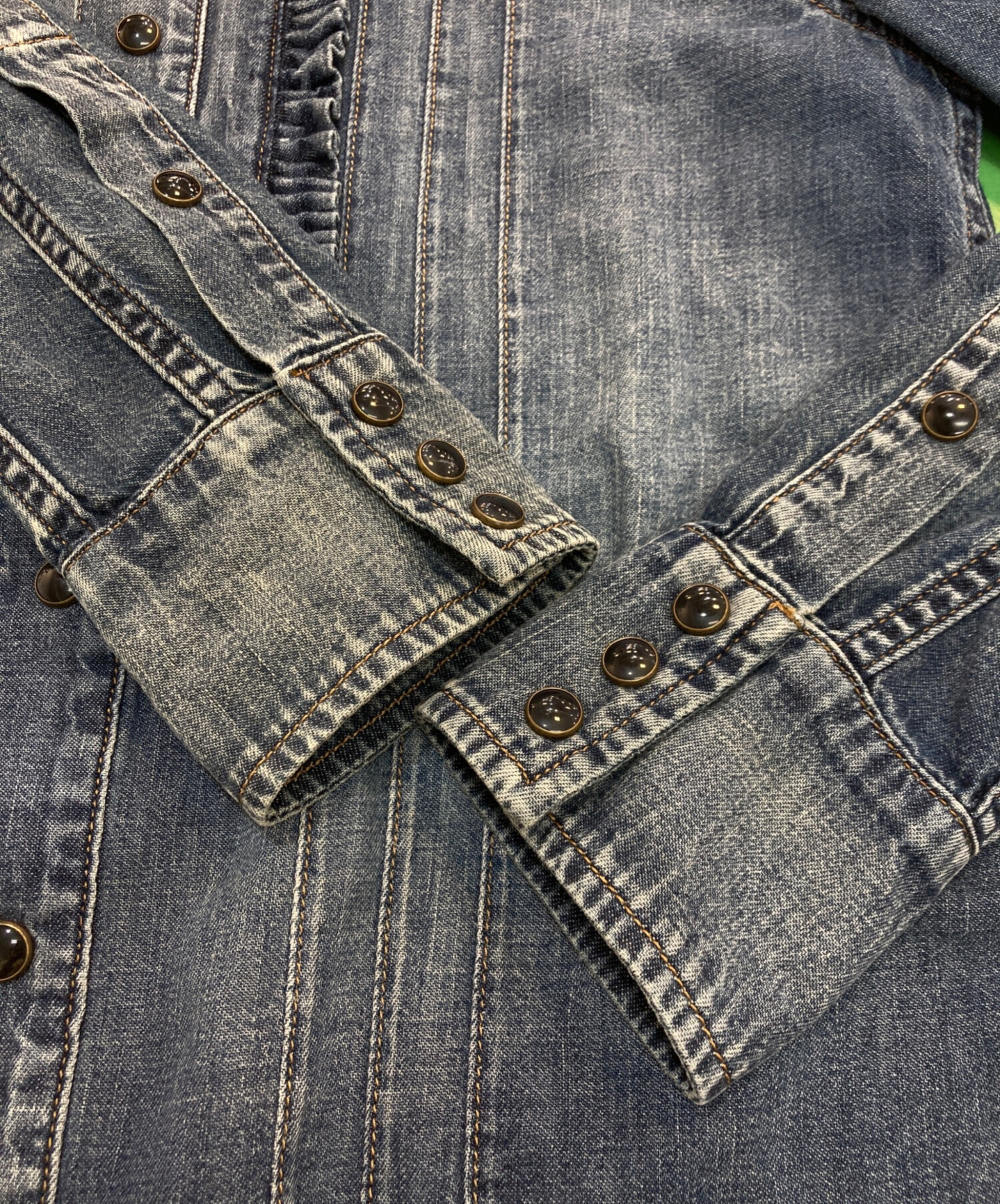 | アイテム名 | ウォッシュ加工ピンタック デニムシャツ 663871 Y24AA |
