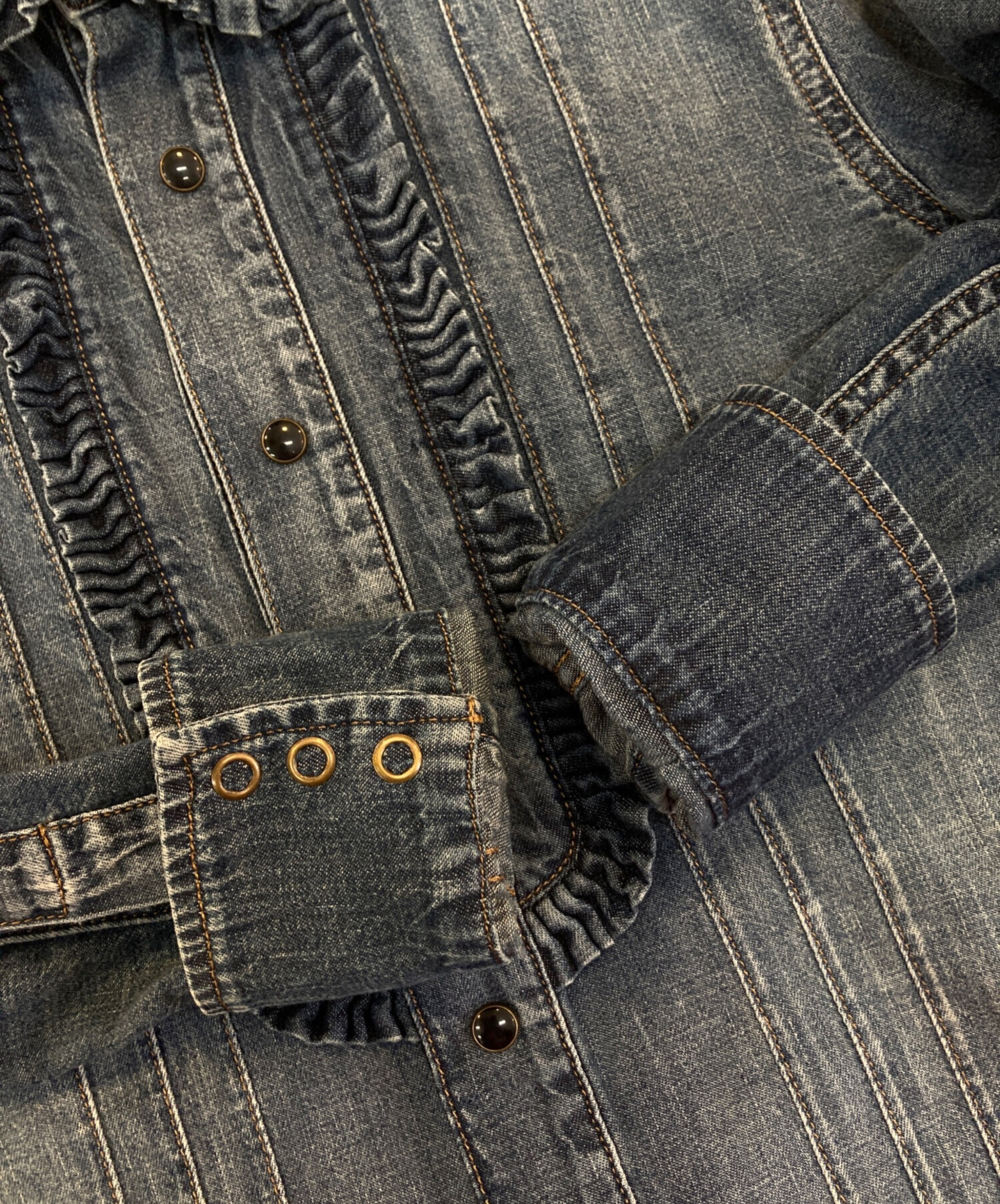 ウォッシュ加工ピンタック デニムシャツ 663871 Y24AA