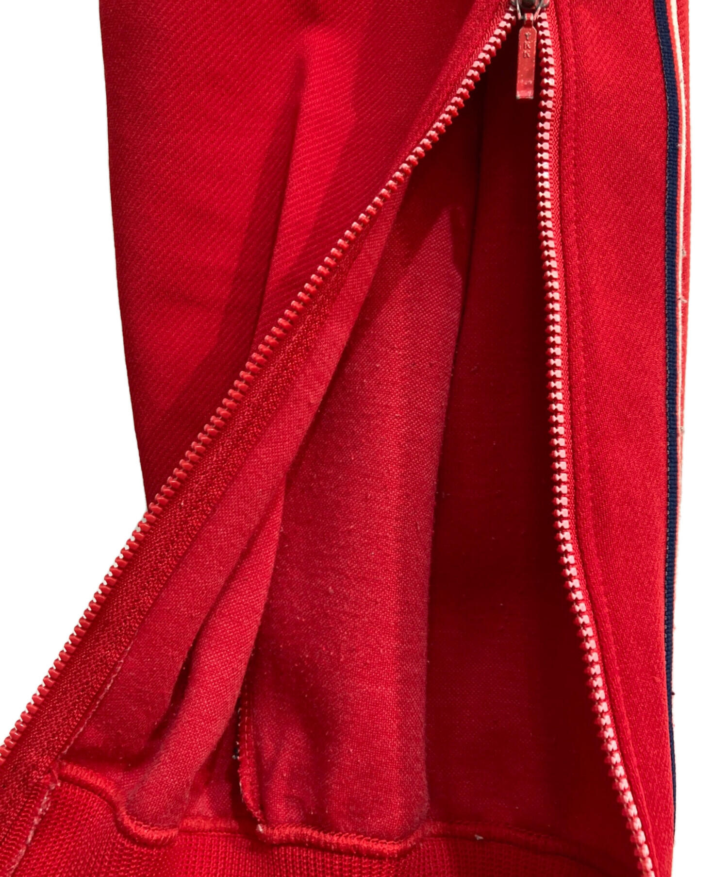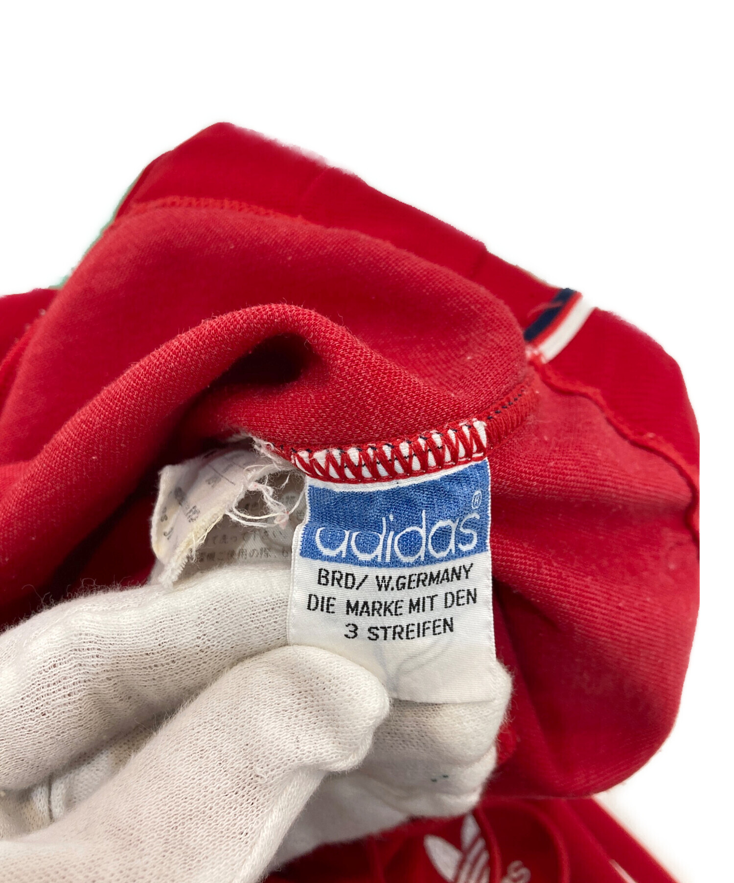 • adidas(アディダス)adidas (アディダス) トレフォイルジャージパンツ 80’S デサントタグ 西ドイツ製 C-OS 3011 レッド サイズ:80の古着・服飾アイテム ツレ・毛羽立ち
