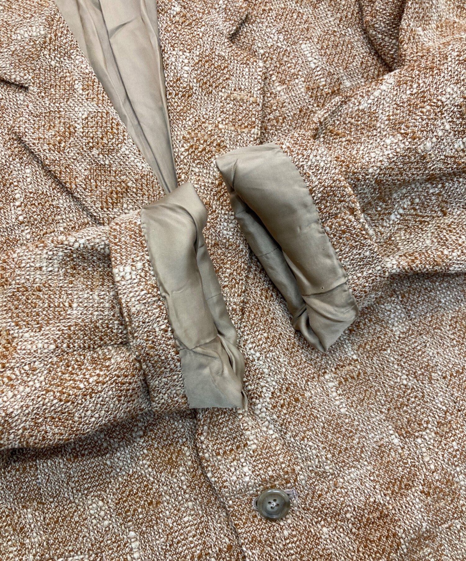 目立つシミや汚れ、におい等がある場合は商品画像や説明文にて極力表記させていただいておりますが、中古品という商品の特性上、全ての瑕疵や不備、洋服直し箇所を撮影・記載をすることは難しくなっております。また、ほとんどのアイテムは店頭と併売しておりますため、出品掲載時からコンディションが変動している場合もございます。あらかじめご了承くださいませ。