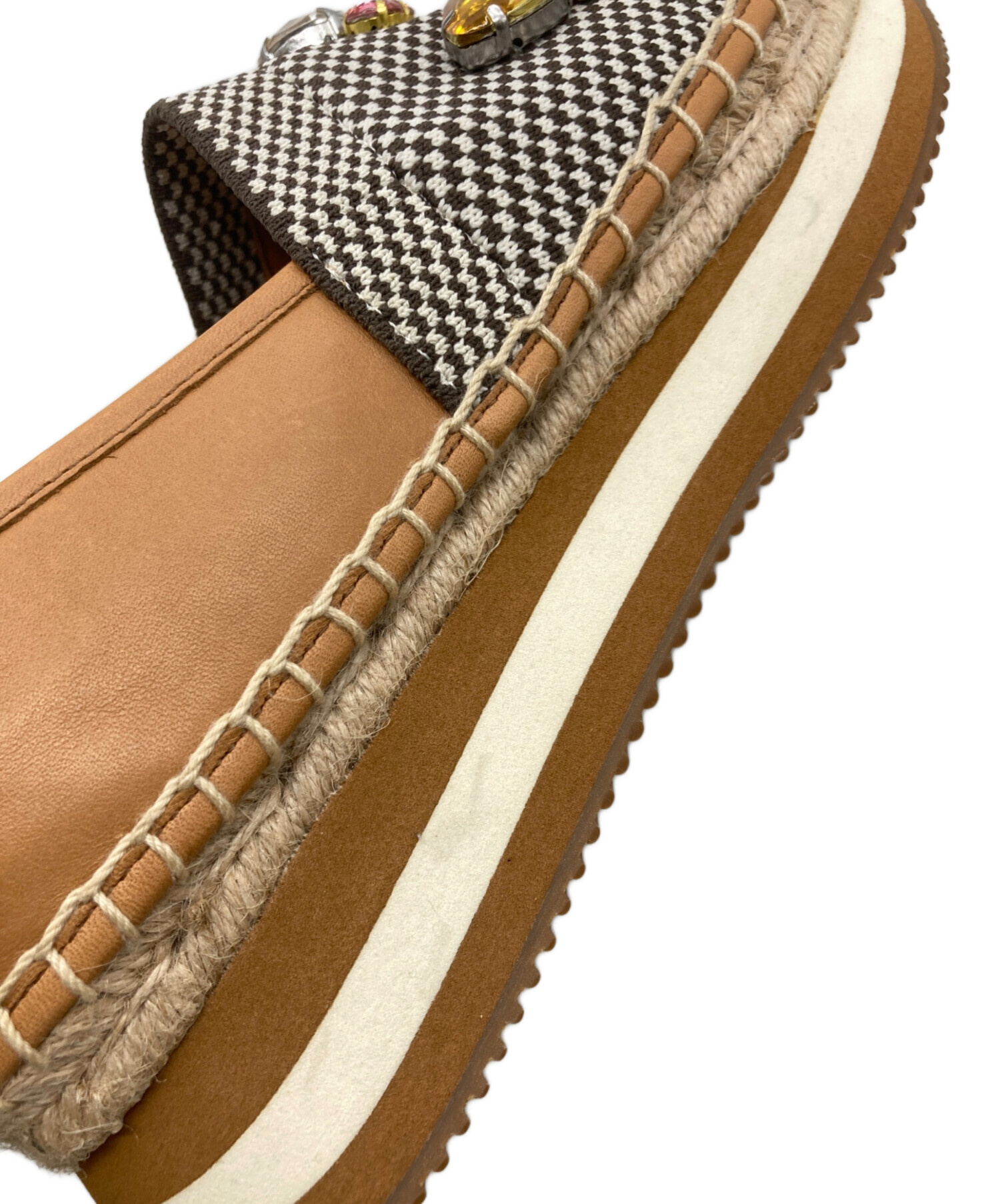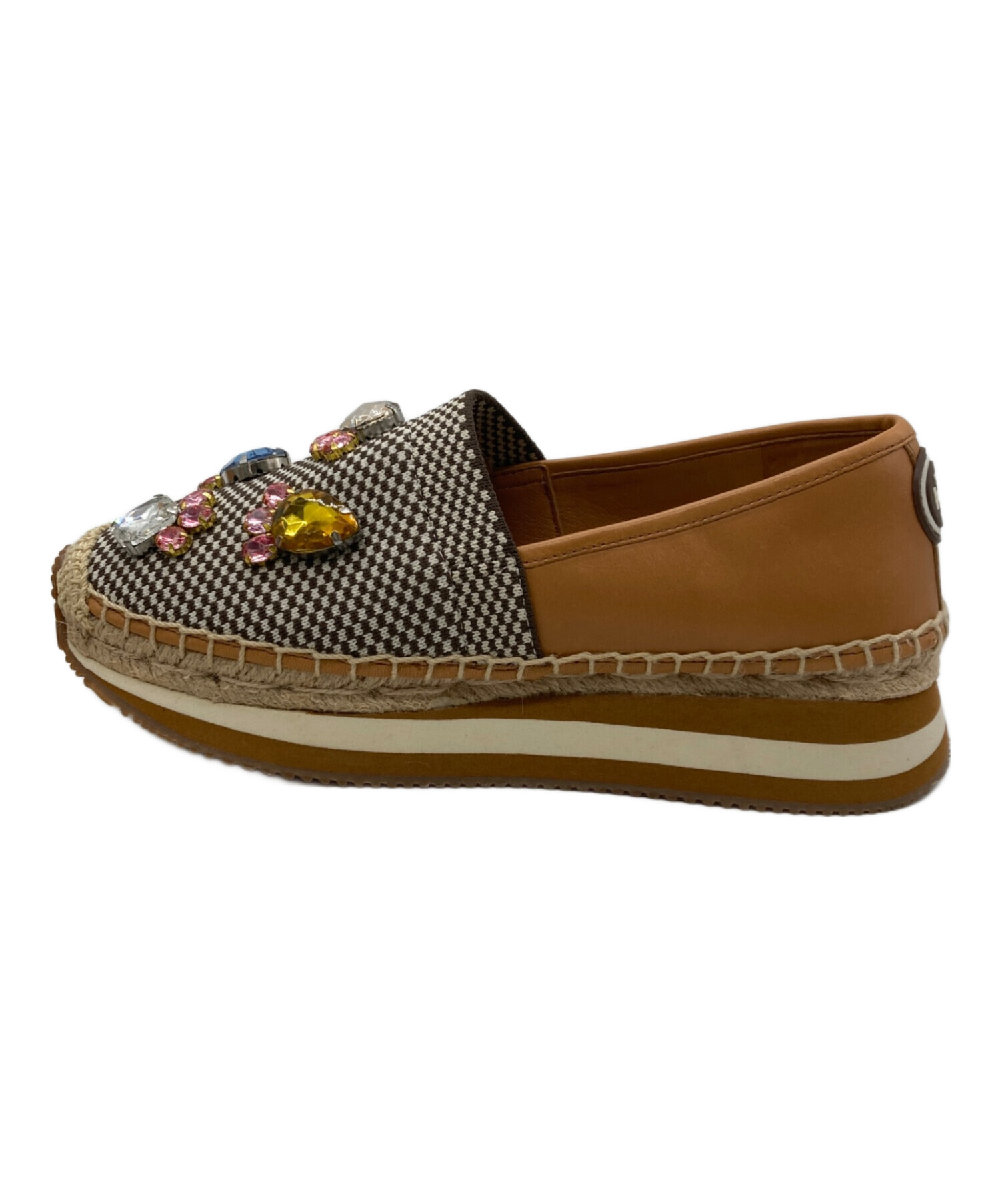 • TORY BURCH(トリーバーチ)TORY BURCH (トリーバーチ) デイジー クリスタルエスパドリーユ ブラウン サイズ:6Mの古着・服飾アイテム 汚れ