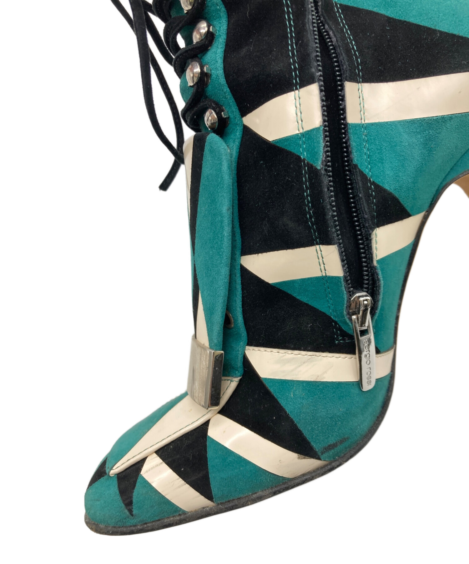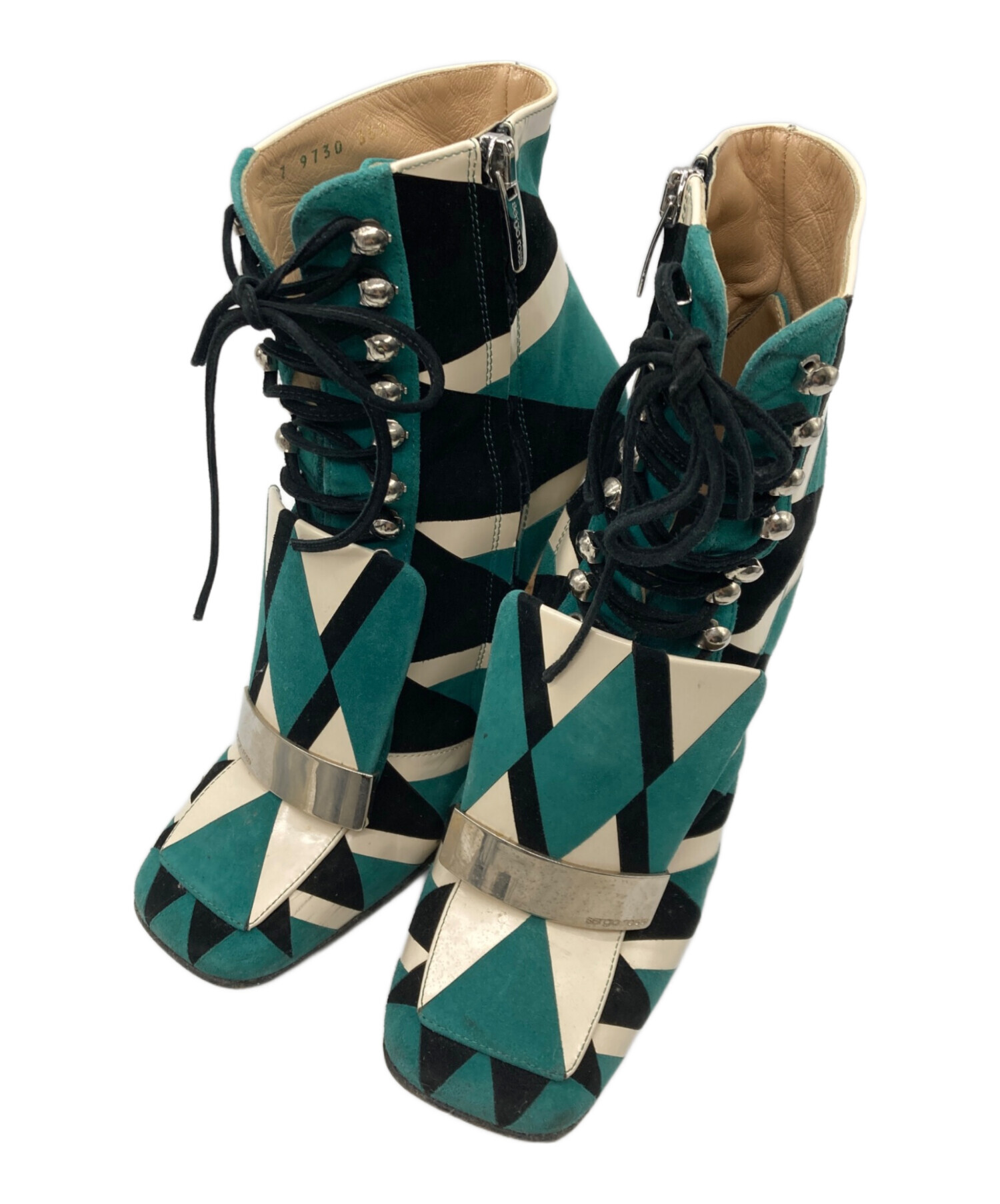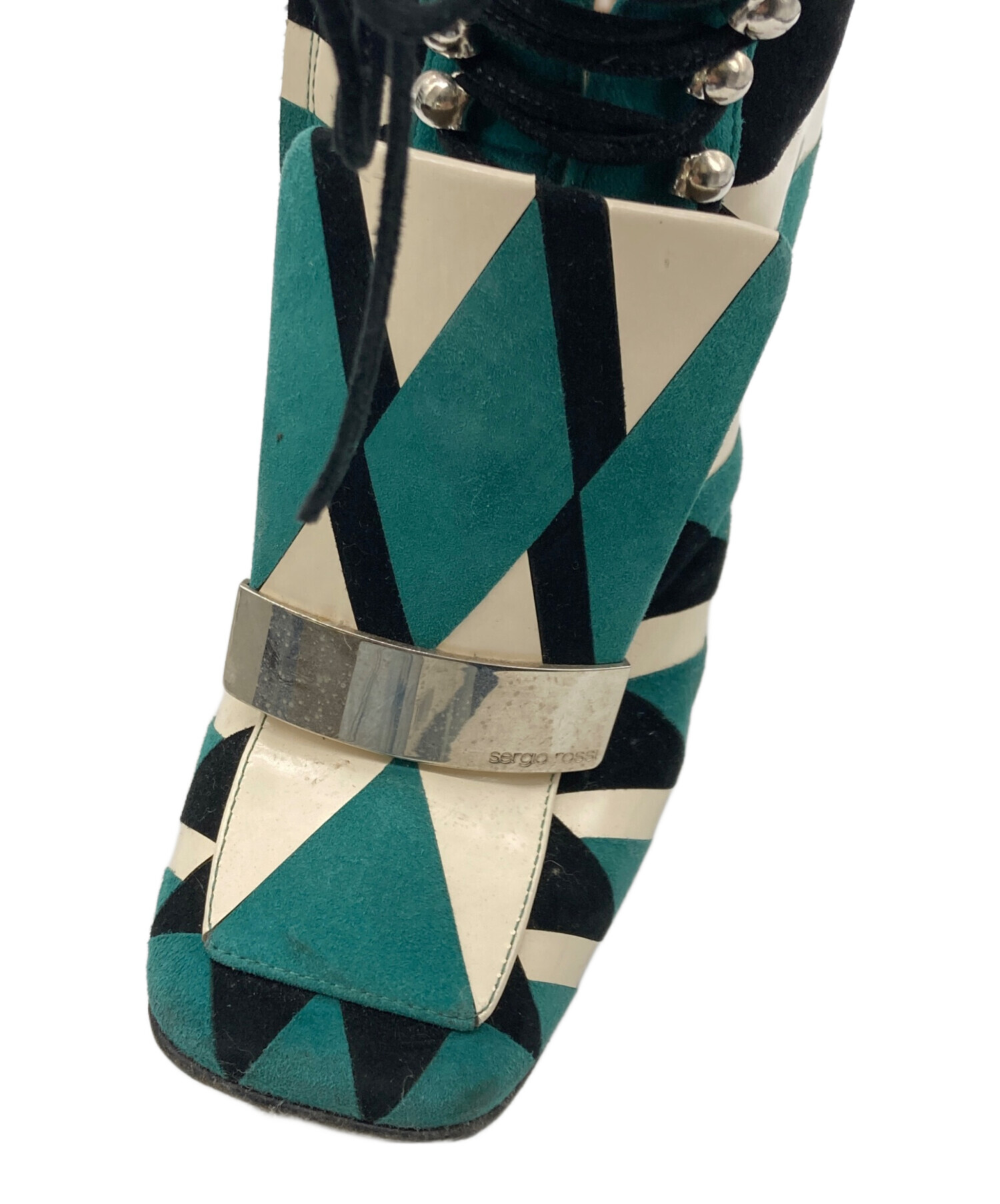 • sergio rossi(セルジオロッシ)sergio rossi (セルジオロッシ) レースアップ グリッター ショートブーツ グリーン サイズ:35 1/2の古着・服飾アイテム 内部小汚れ