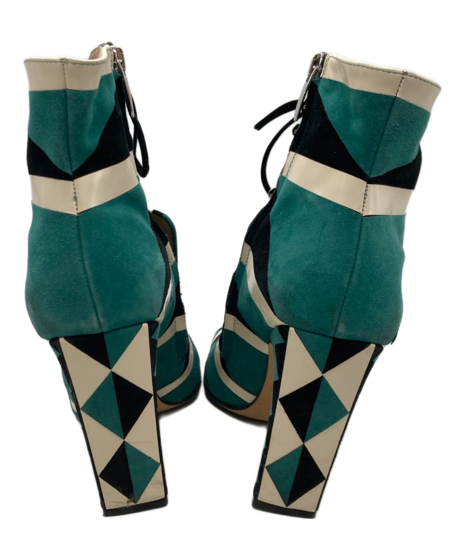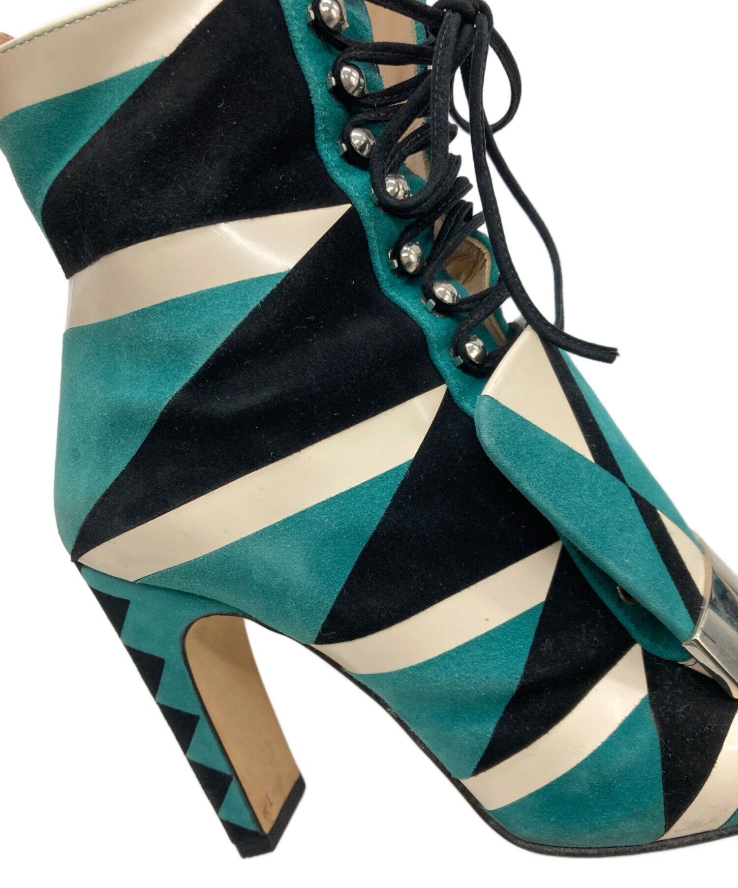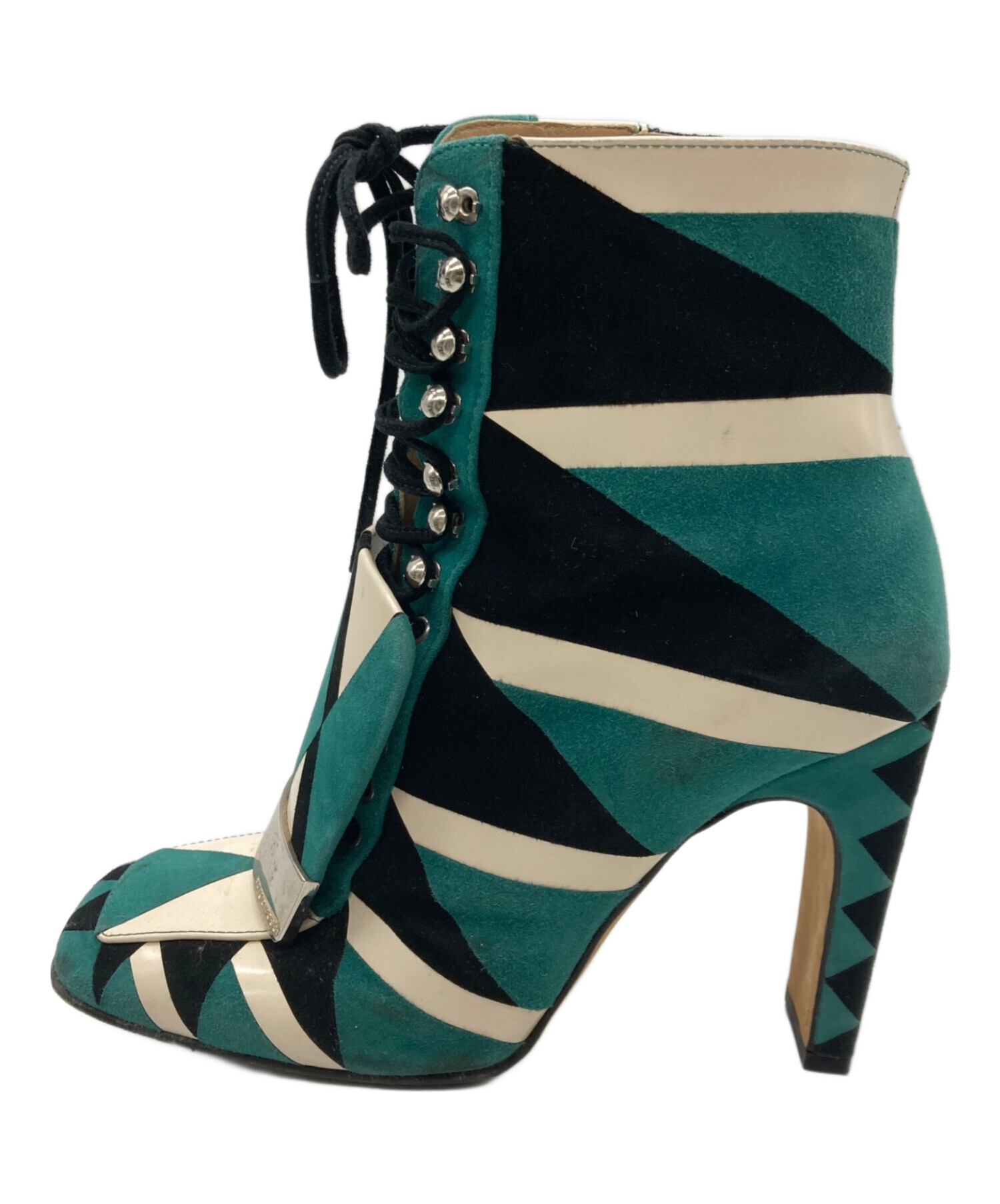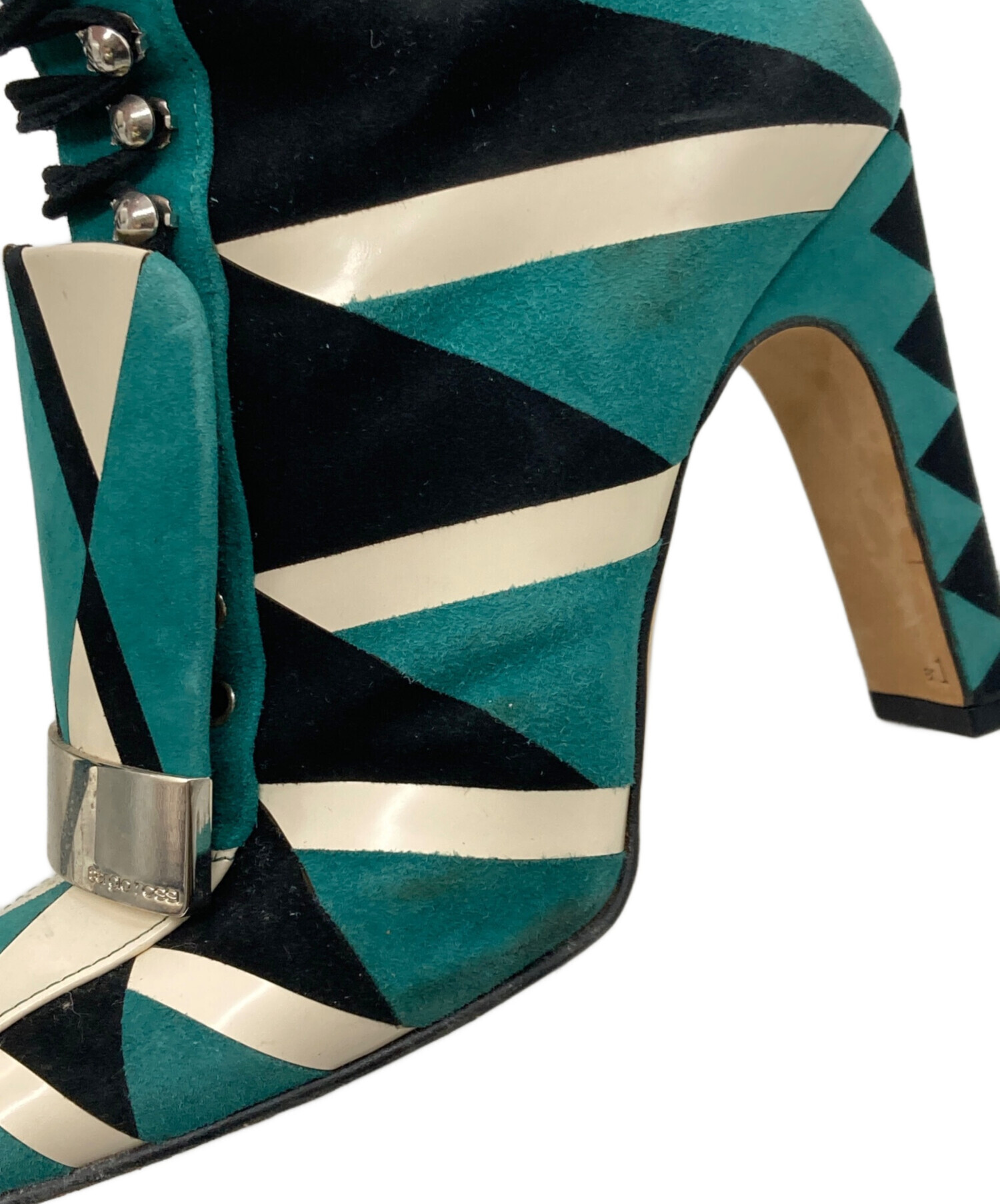 • sergio rossi(セルジオロッシ)sergio rossi (セルジオロッシ) レースアップ グリッター ショートブーツ グリーン サイズ:35 1/2の古着・服飾アイテム 内部小汚れ