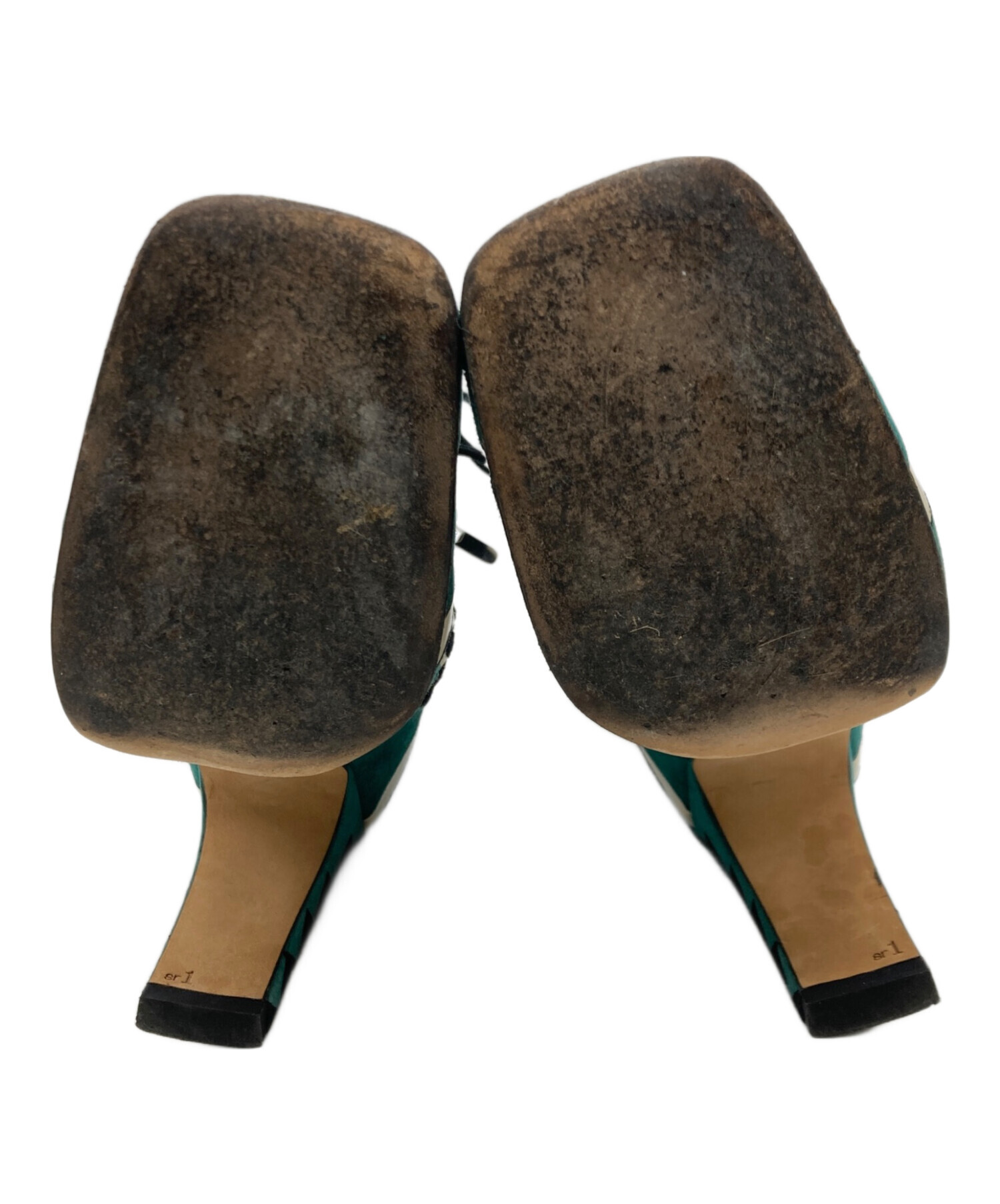 • sergio rossi(セルジオロッシ)sergio rossi (セルジオロッシ) レースアップ グリッター ショートブーツ グリーン サイズ:35 1/2の古着・服飾アイテム ソール汚れ
