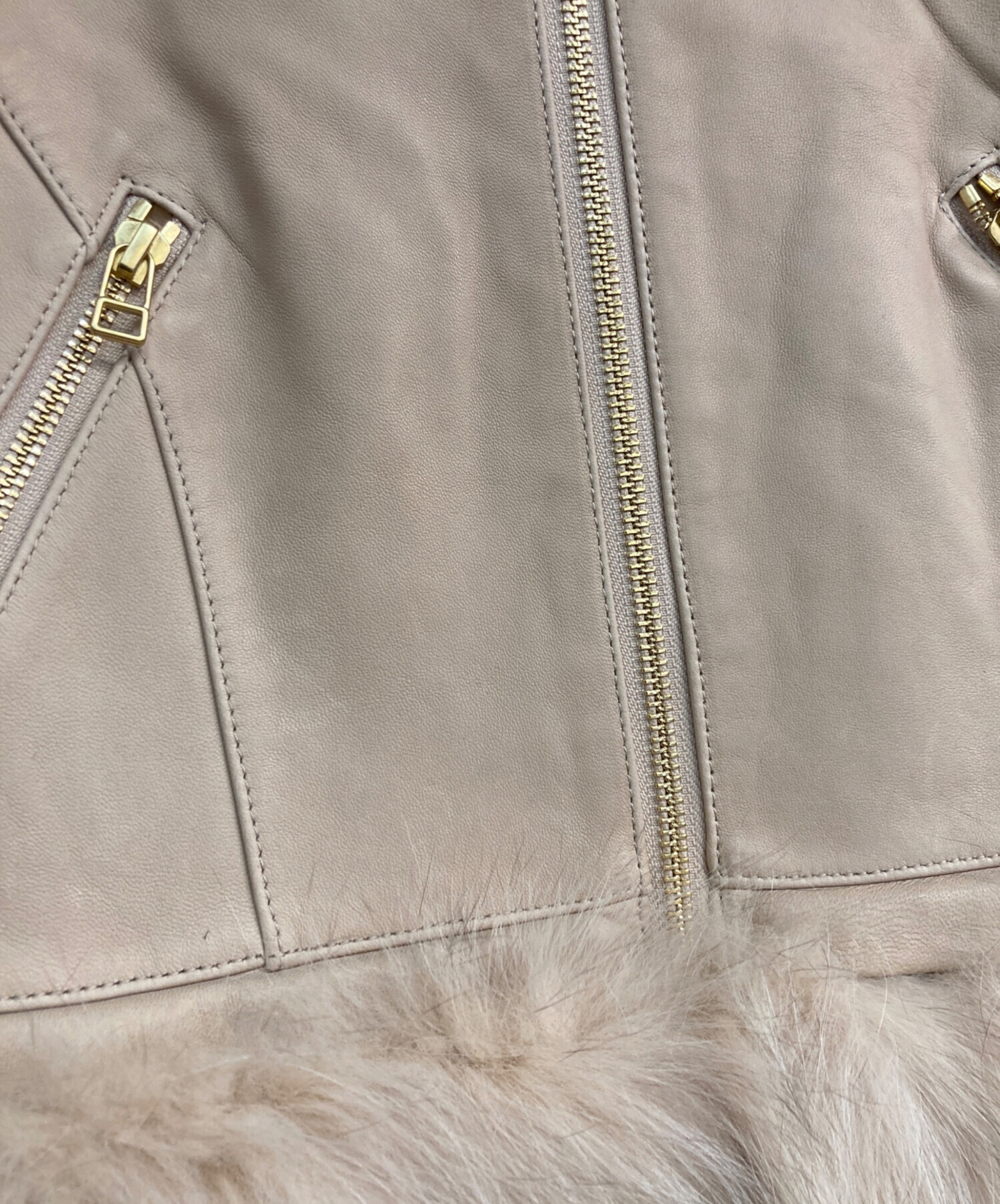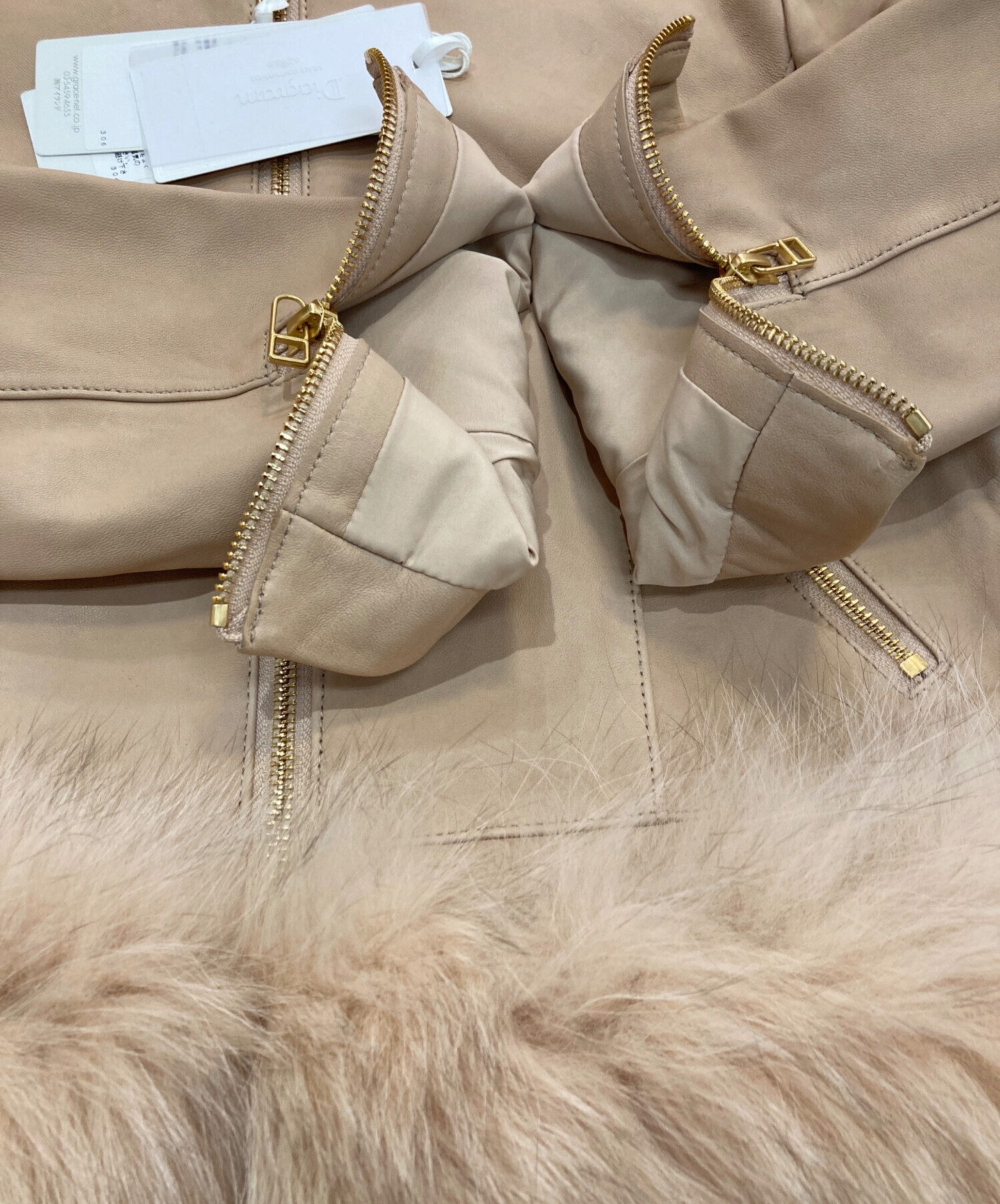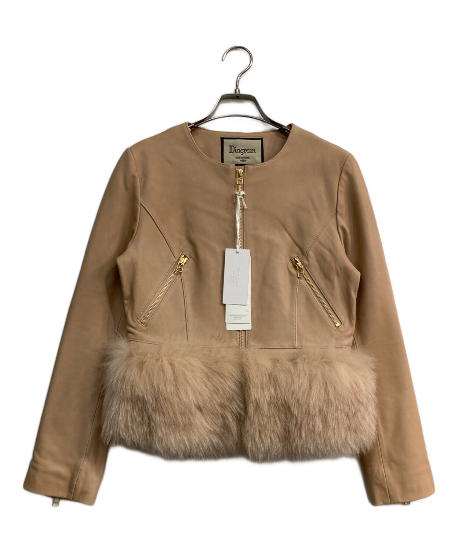 Diagram GRACE CONTINENTAL(ダイアグラム グレースコンチネンタル)Diagram GRACE CONTINENTAL (ダイアグラム グレースコンチネンタル) フォックスファーラムレザージャケット ベージュ サイズ:S(36)の古着・服飾アイテム