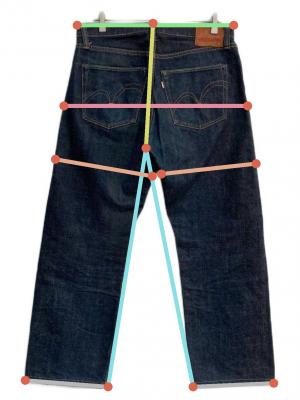 ウエスト周り約86.5cm ヒップ周り約111.5cm もも周り約63.5cm 裾周り約46cm 股上(後ろ)約36cm 股下(後ろ)約67.5cm