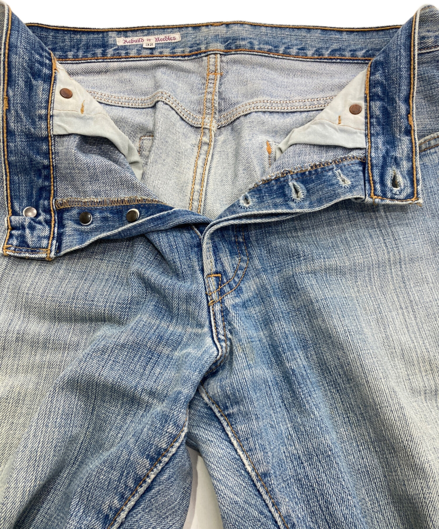 • Rebuild by Needles(リビルドバイニードルス)Rebuild by Needles (リビルドバイニードルス) 立体裁断デニムパンツ インディゴ サイズ:32の古着・服飾アイテム 穴有