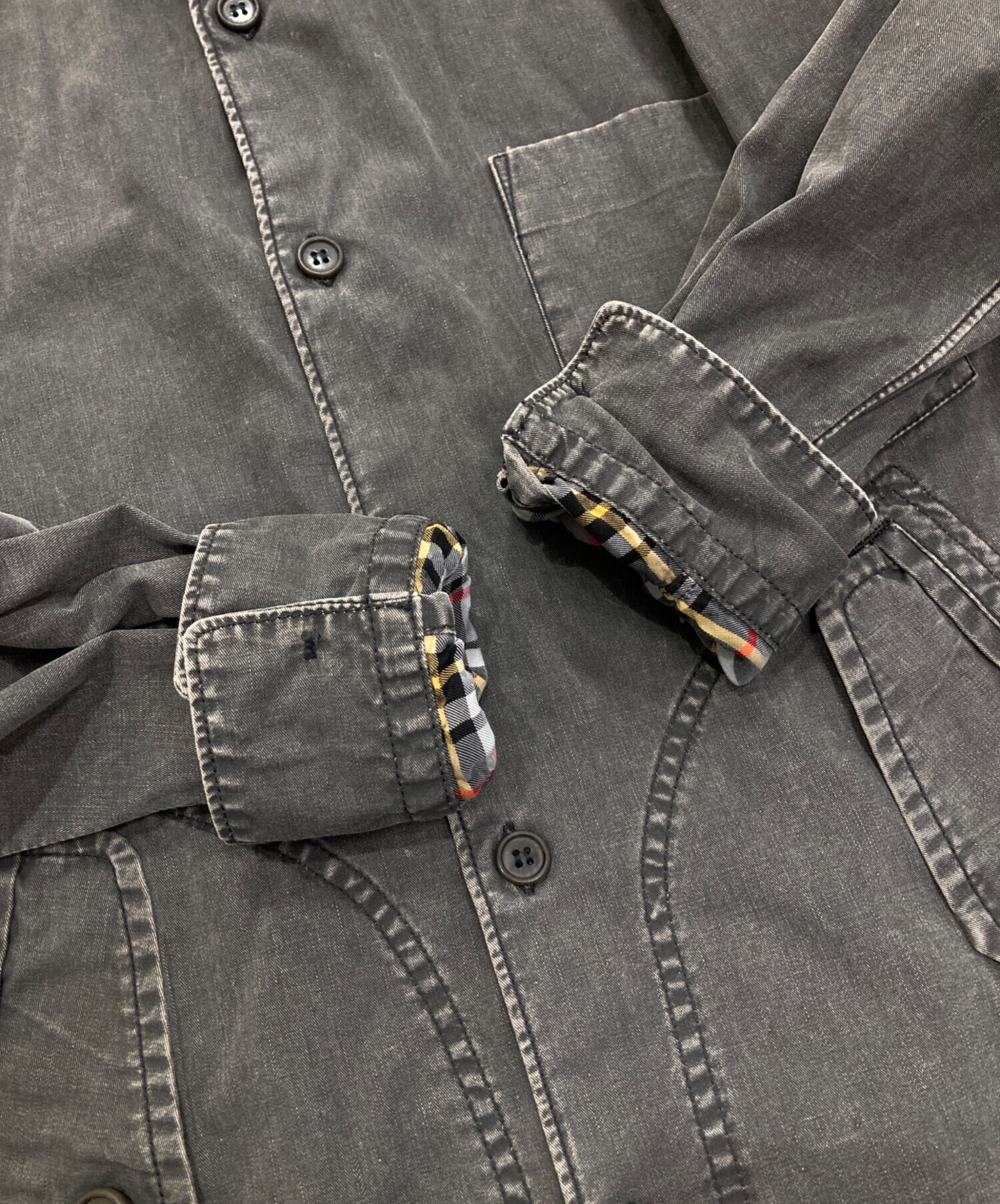 目立つシミや汚れ、におい等がある場合は商品画像や説明文にて極力表記させていただいておりますが、中古品という商品の特性上、全ての瑕疵や不備、洋服直し箇所を撮影・記載をすることは難しくなっております。また、ほとんどのアイテムは店頭と併売しておりますため、出品掲載時からコンディションが変動している場合もございます。あらかじめご了承くださいませ。