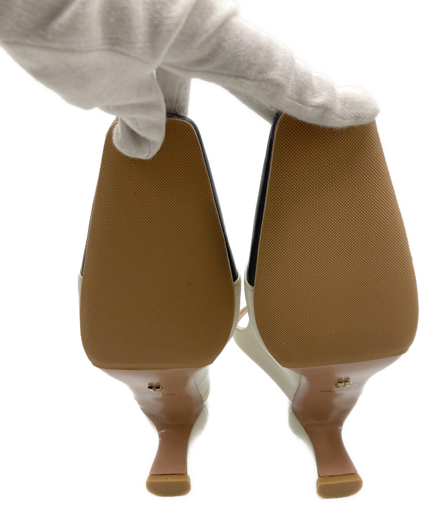 • HER LIP TO(ハーリップトゥ)Her lip to (ハーリップトゥ) Mademoiselle Mules アイボリー×ブラック サイズ:39の古着・服飾アイテム 踵浮き有