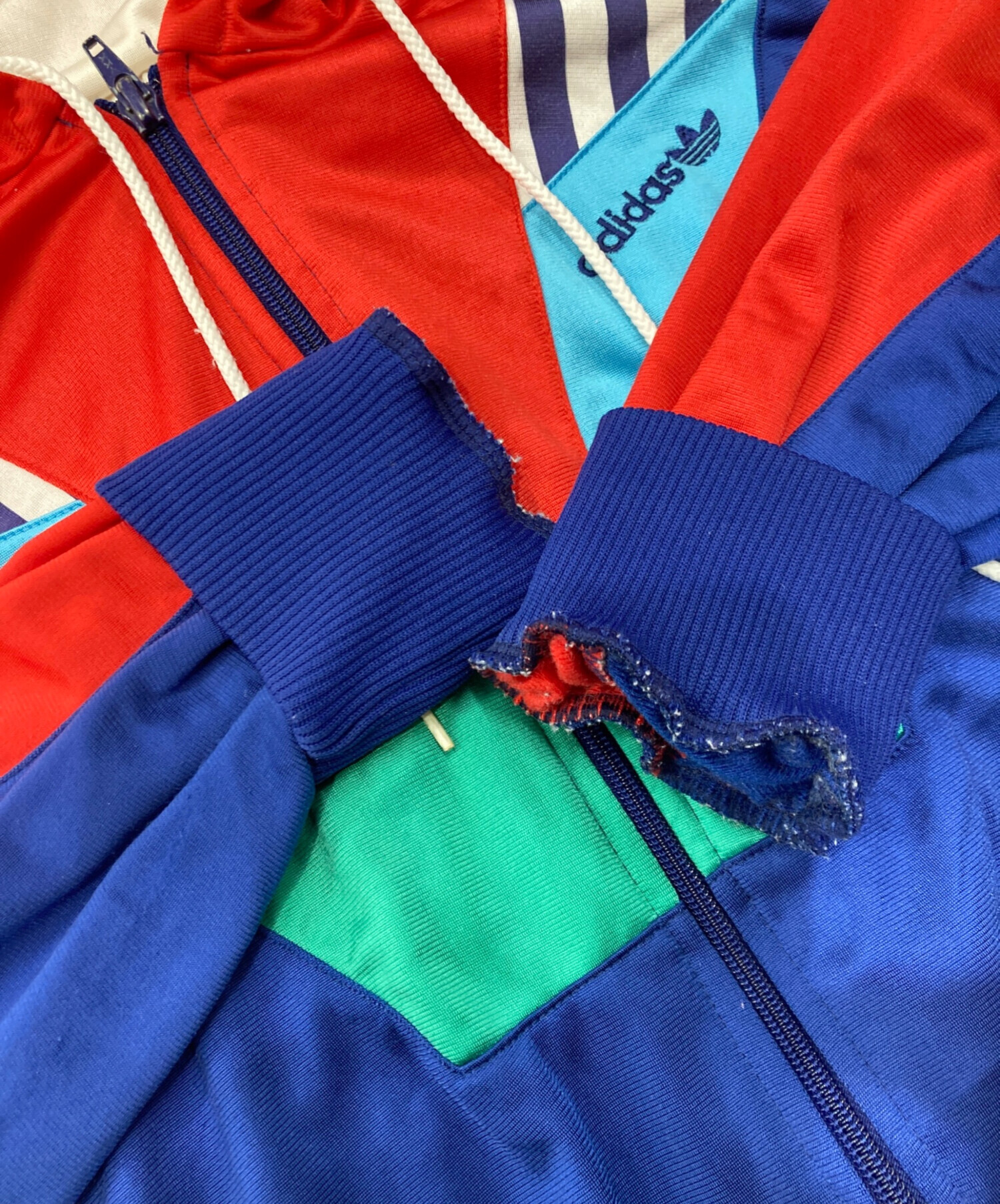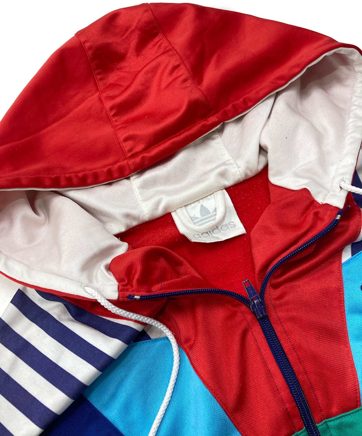 • adidas(アディダス)adidas (アディダス) パネルフードトラックジャケット ネイビー×レッド サイズ:4の古着・服飾アイテム 万国旗タグ