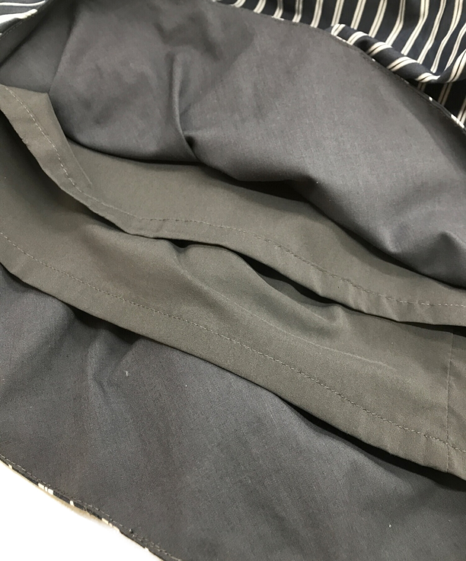 目立つシミや汚れ、におい等がある場合は商品画像や説明文にて極力表記させていただいておりますが、中古品という商品の特性上、全ての瑕疵や不備、洋服直し箇所を撮影・記載をすることは難しくなっております。また、ほとんどのアイテムは店頭と併売しておりますため、出品掲載時からコンディションが変動している場合もございます。あらかじめご了承くださいませ。