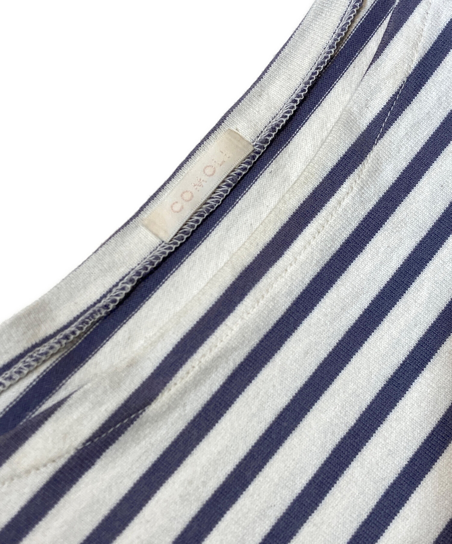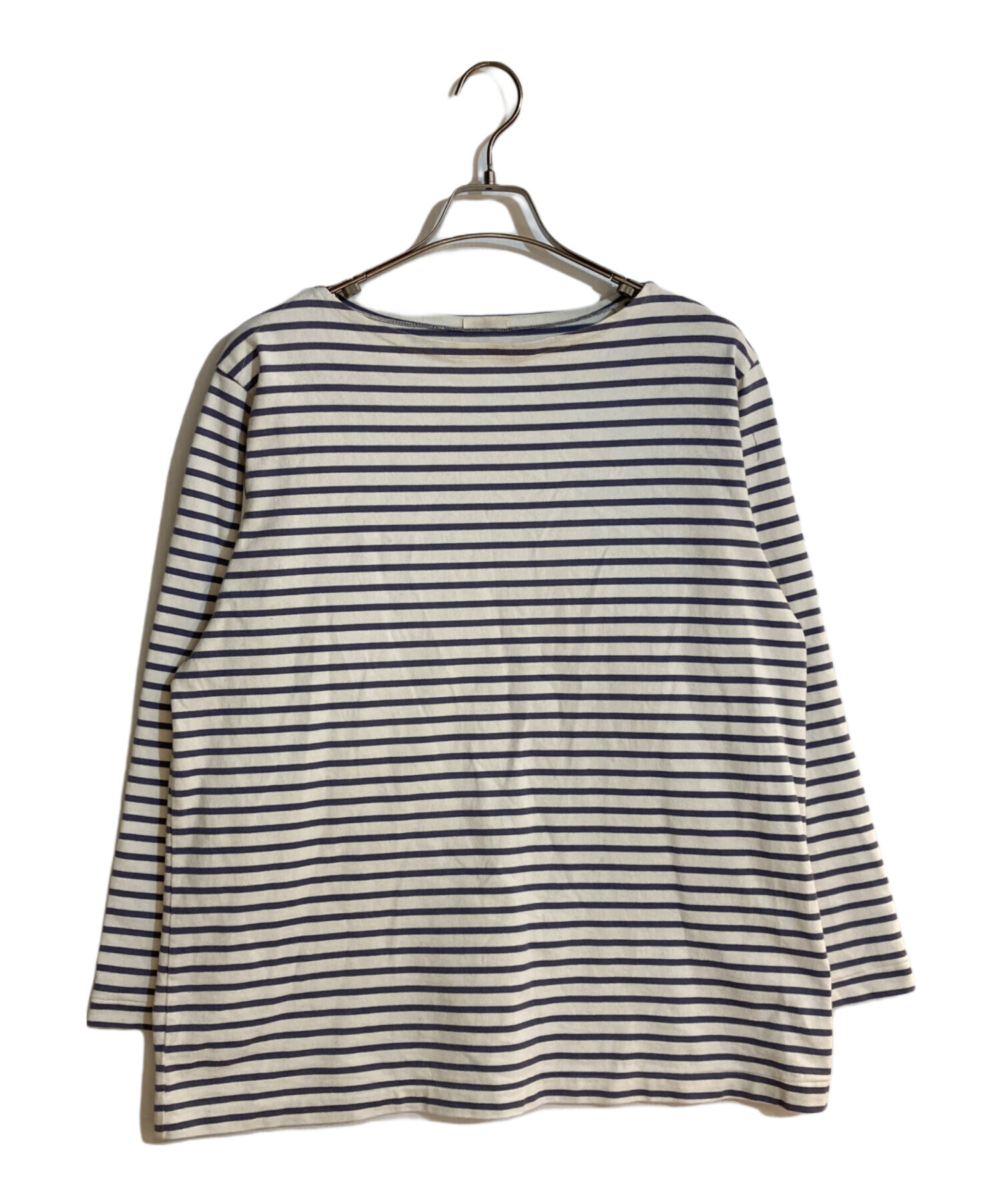 • COMOLI(コモリ)COMOLI (コモリ) ボーダー バスクシャツ ホワイト×パープル サイズ:不明の古着・服飾アイテム ヨゴレ有