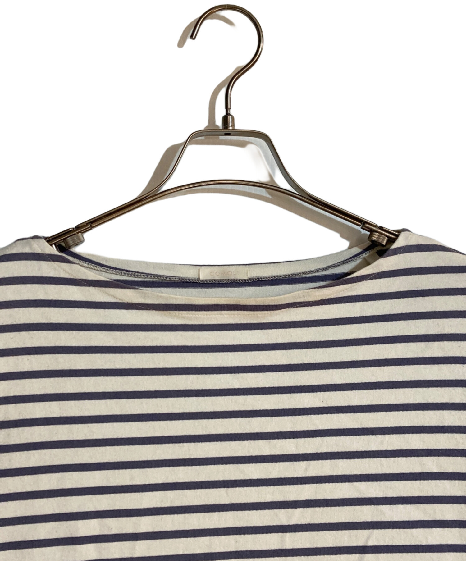• COMOLI(コモリ)COMOLI (コモリ) ボーダー バスクシャツ ホワイト×パープル サイズ:不明の古着・服飾アイテム 襟ヨゴレ有