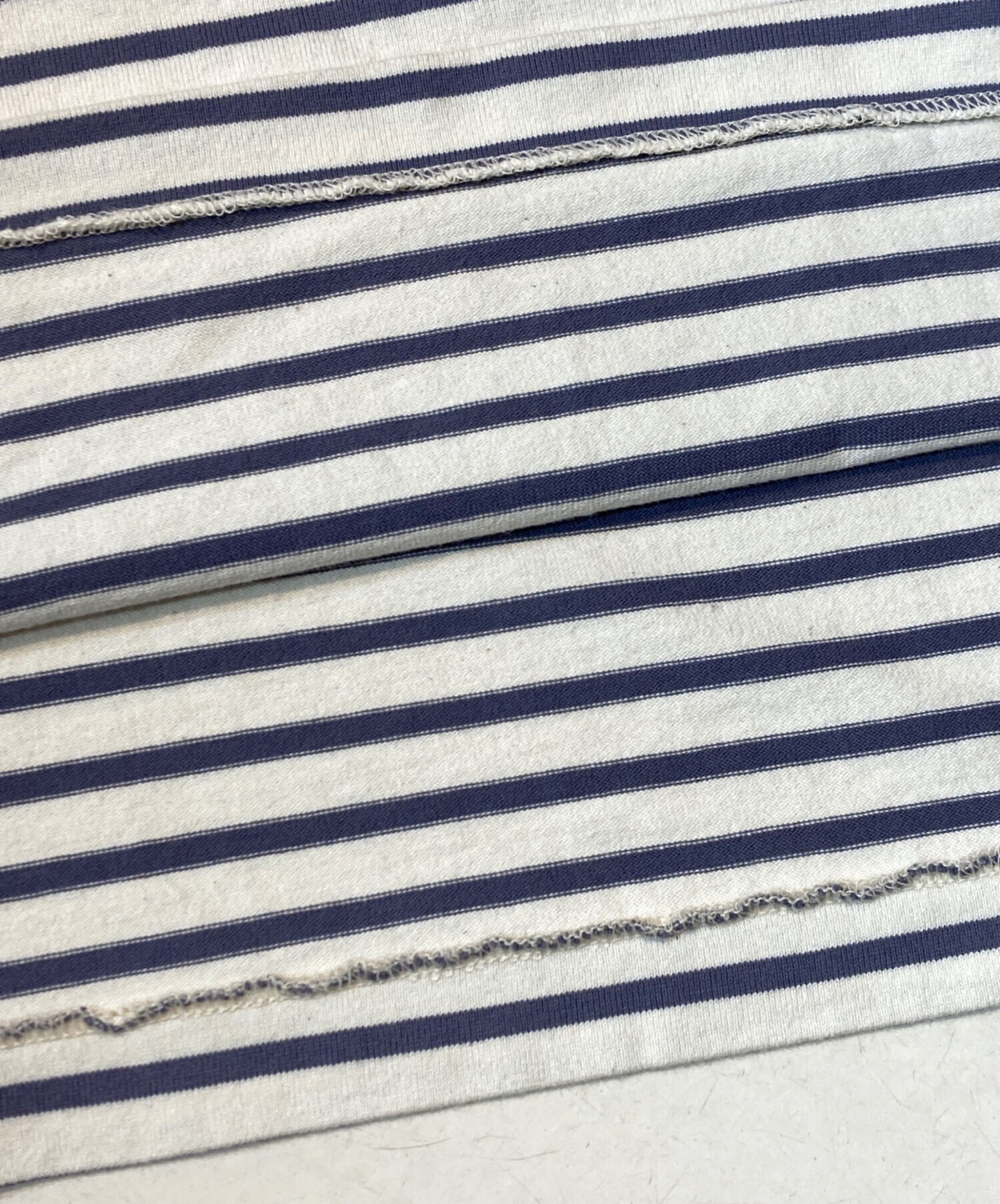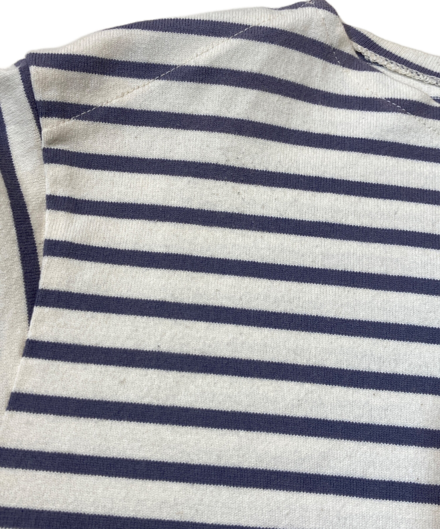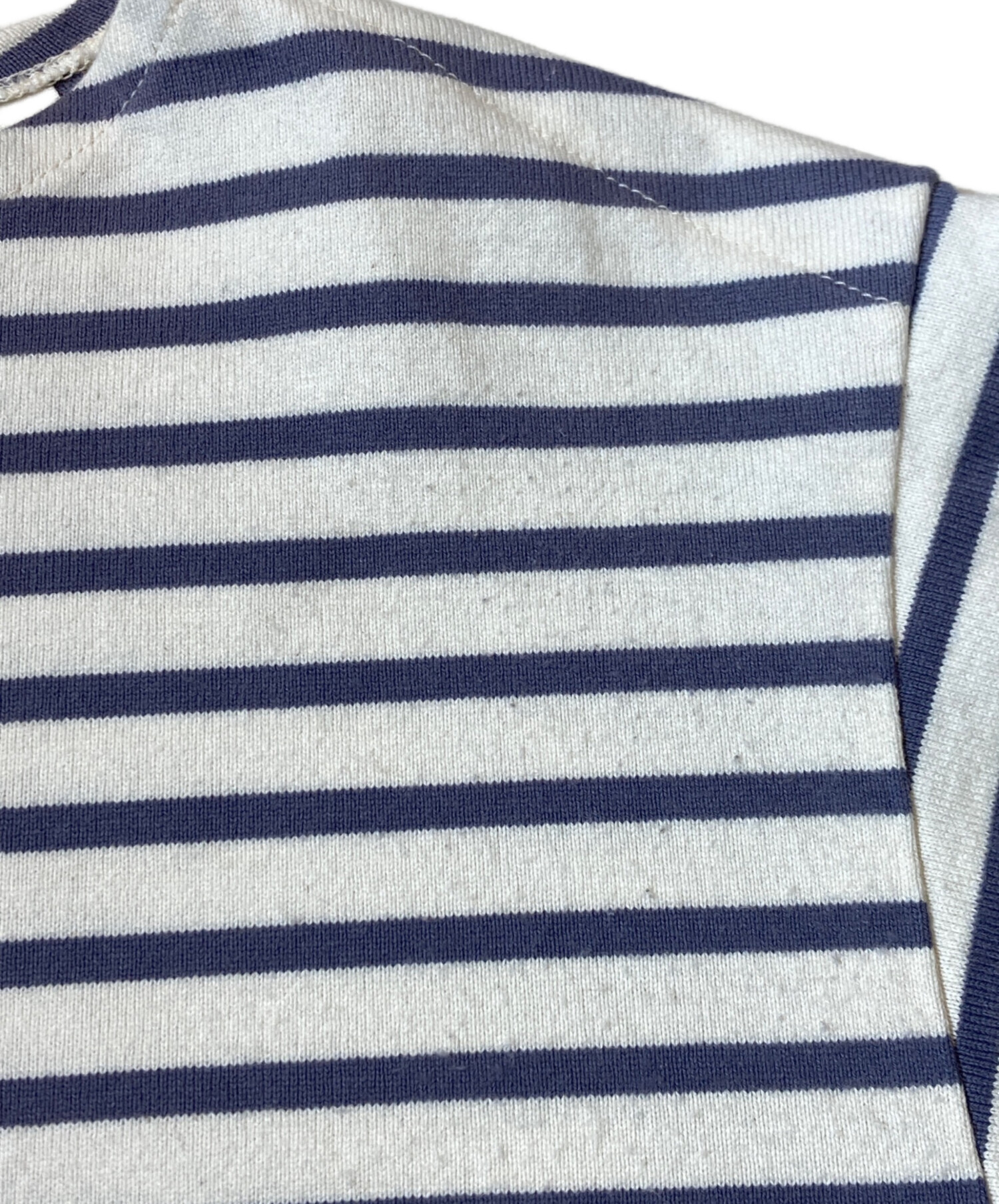 • COMOLI(コモリ)COMOLI (コモリ) ボーダー バスクシャツ ホワイト×パープル サイズ:不明の古着・服飾アイテム 毛羽立ち有