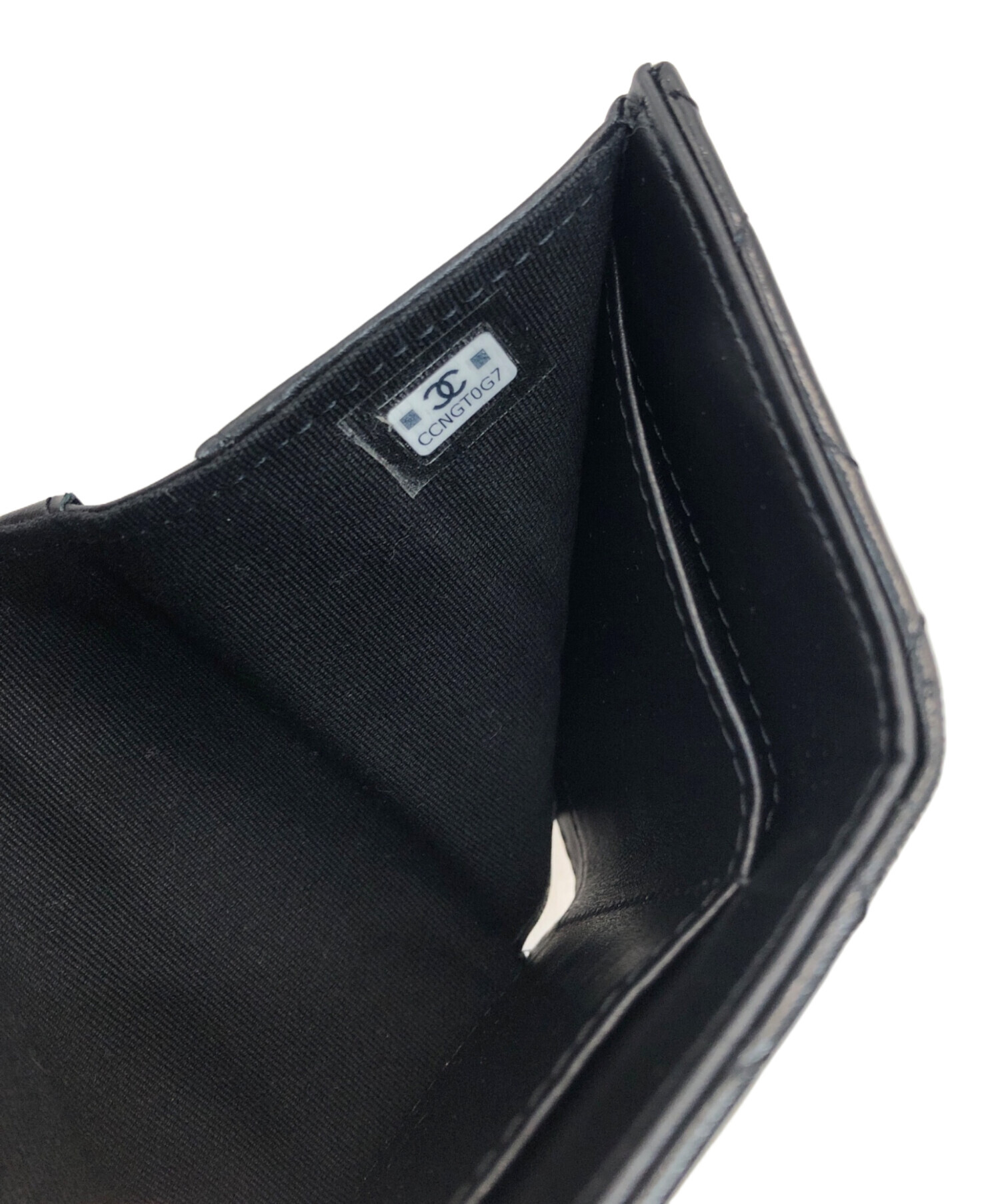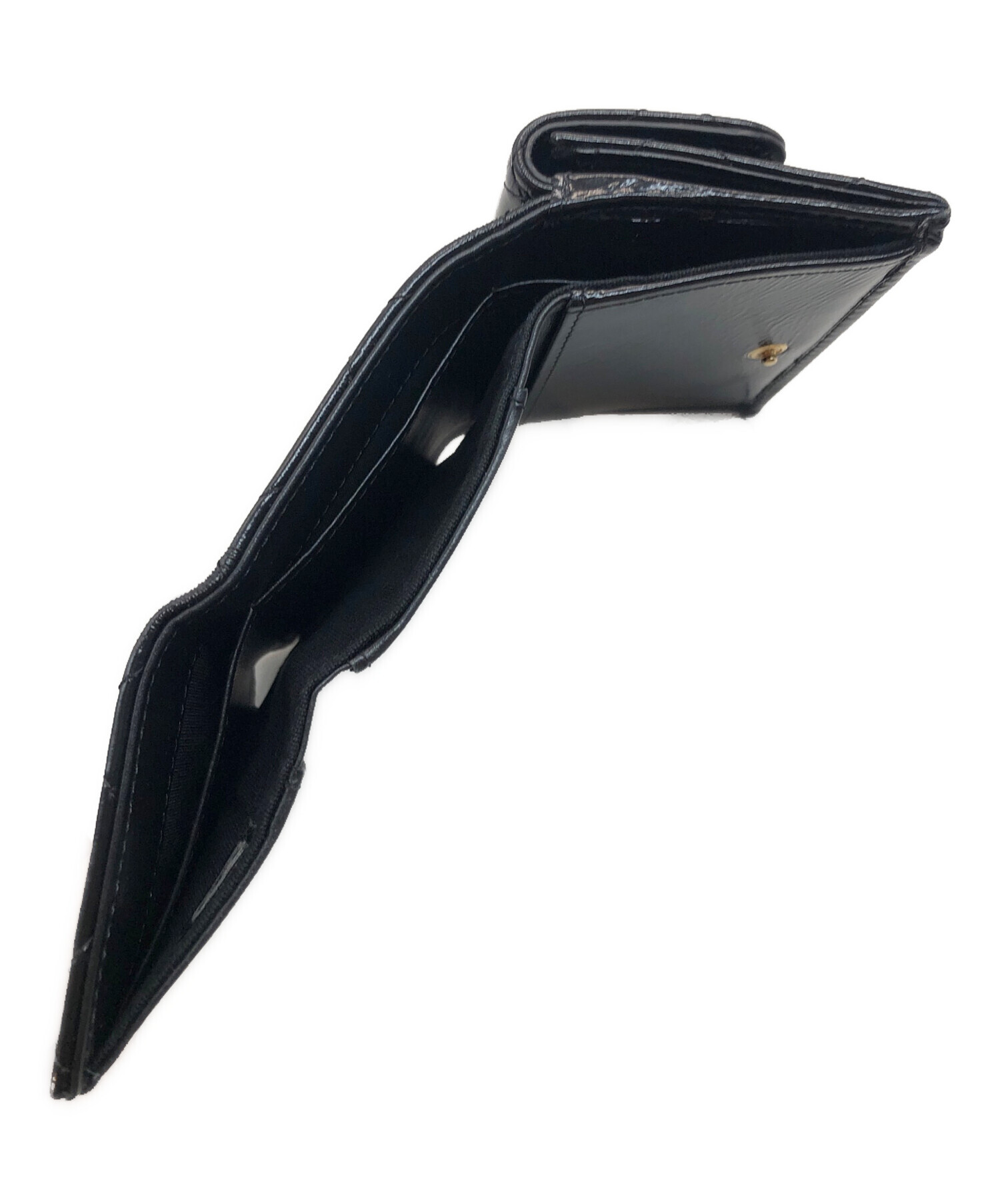 • CHANEL(シャネル)CHANEL (シャネル) マトラッセ スモール フラップコンパクトウォレット ブラックの古着・服飾アイテム コインポケット内部ヨゴレ有