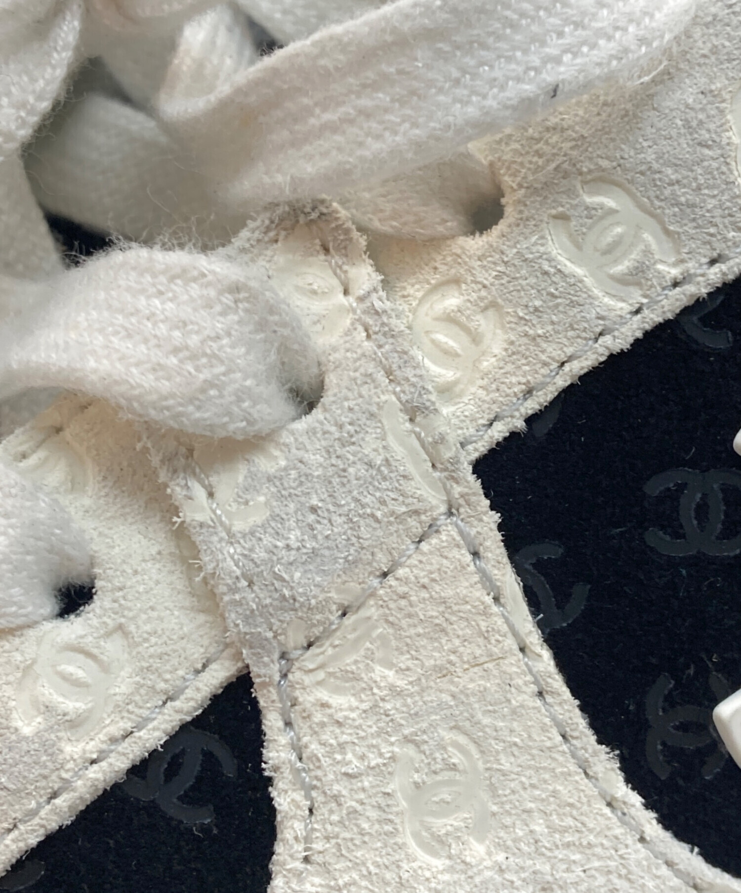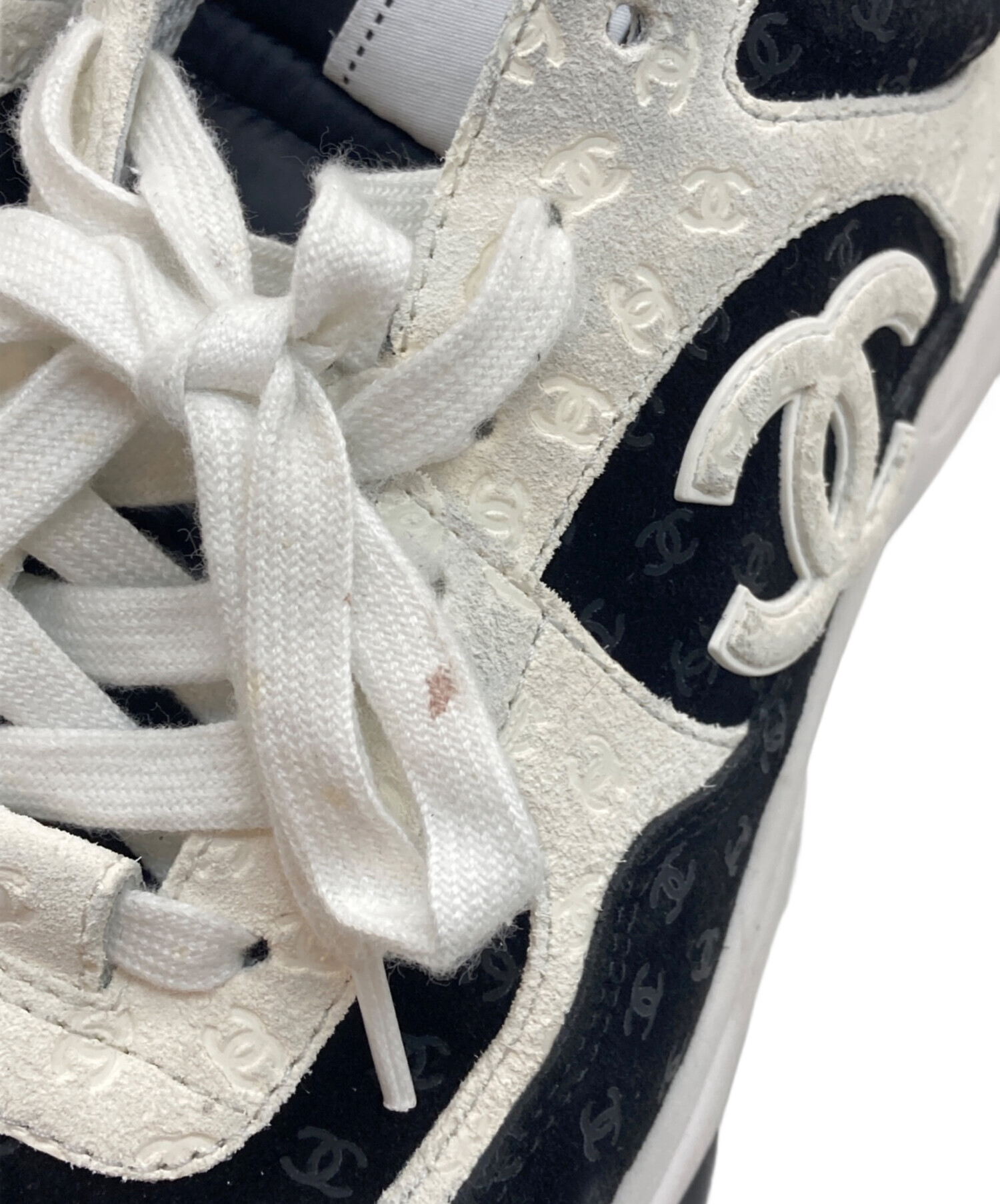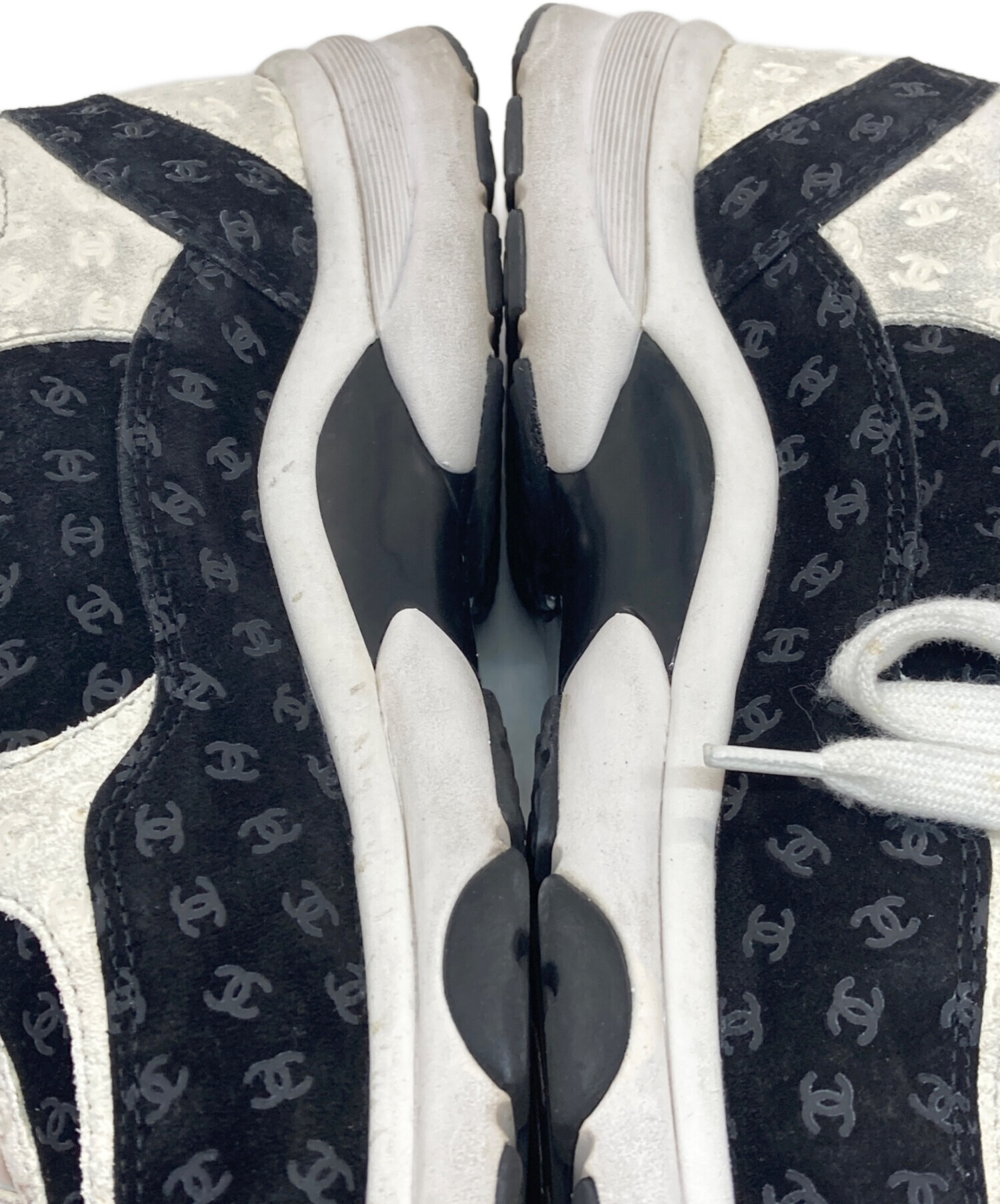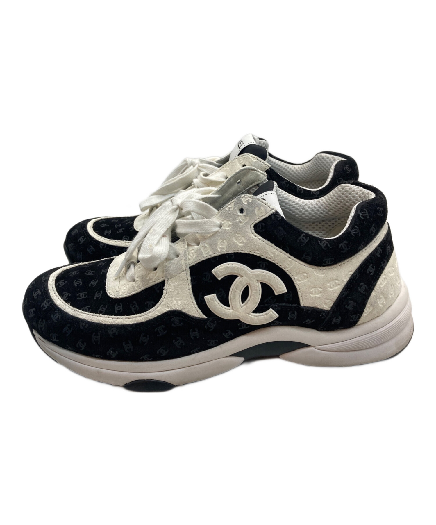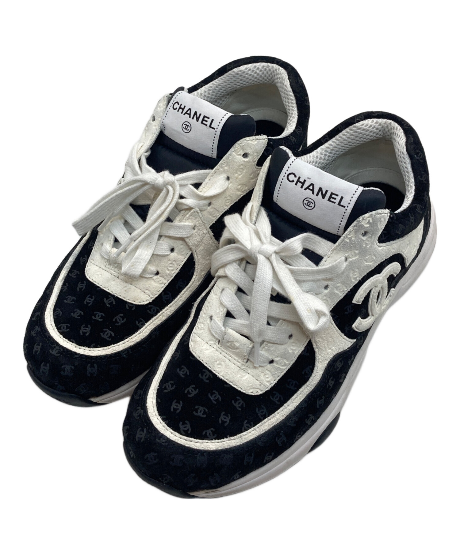 • CHANEL(シャネル)CHANEL (シャネル) ココマークローカットスニーカー ブラック×ホワイト サイズ:41の古着・服飾アイテム ヨゴレ有