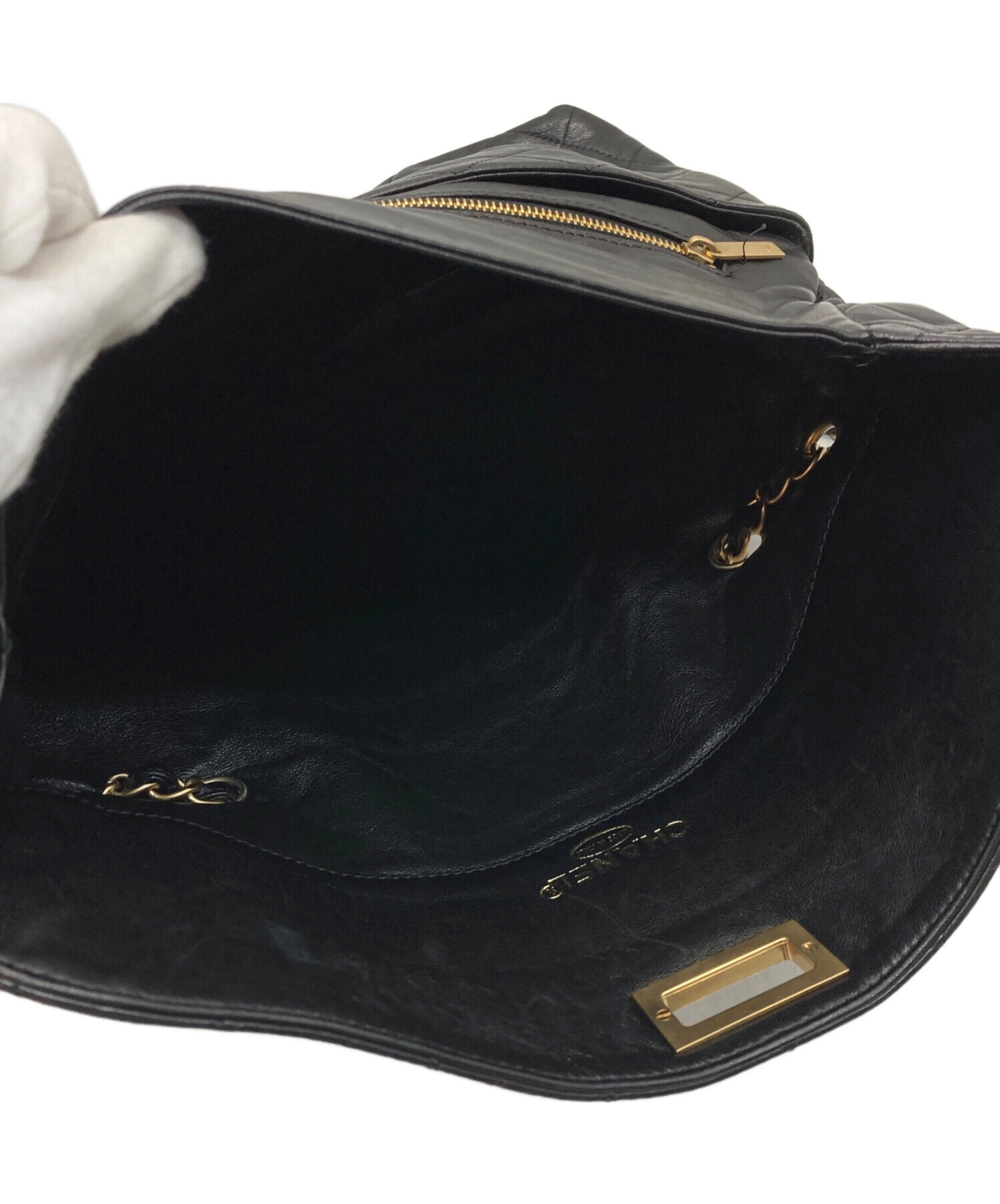 ラムスキンターンロックチェーンショルダーバッグ
