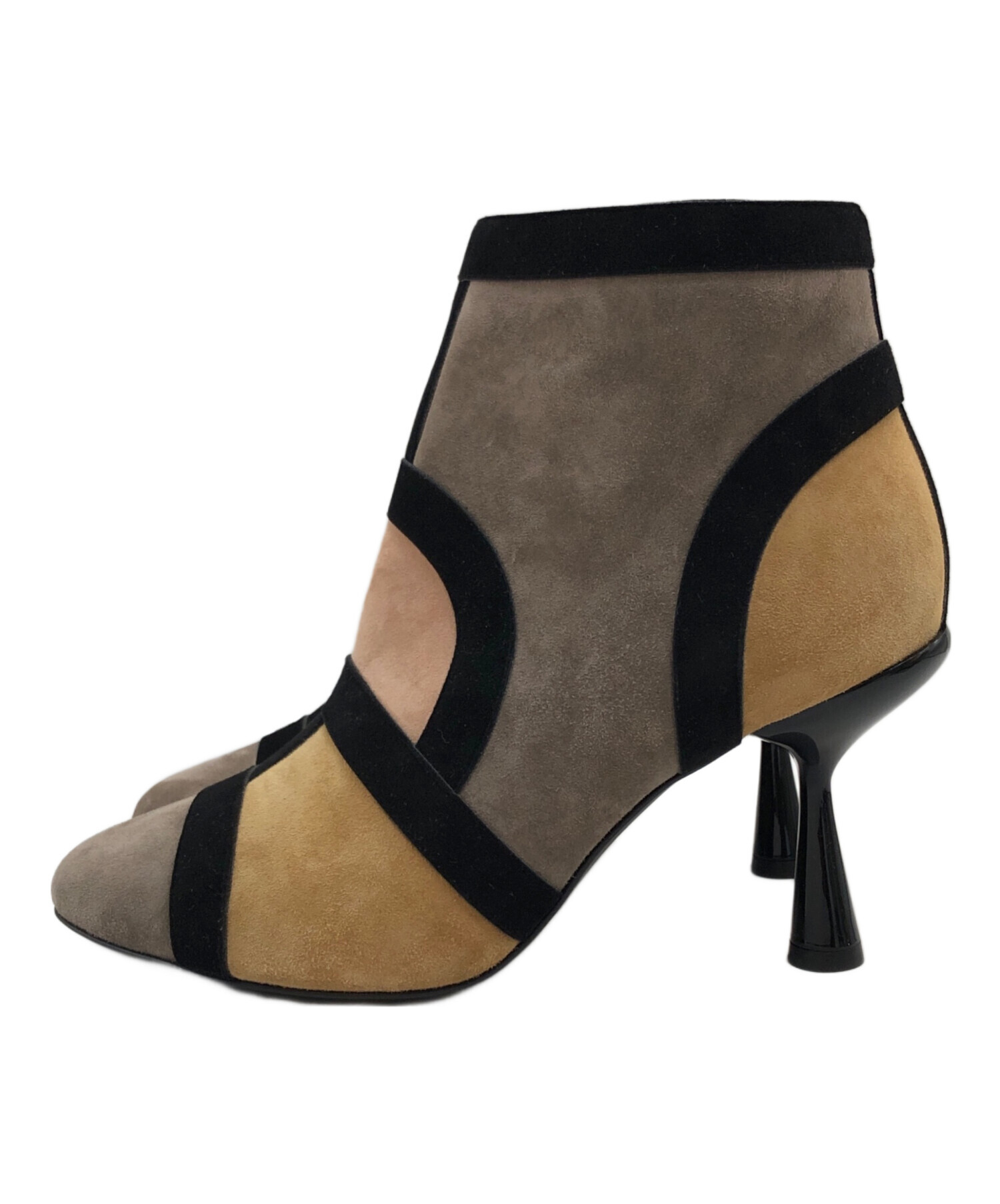 ゴートレザーパッチワークヒールブーツ