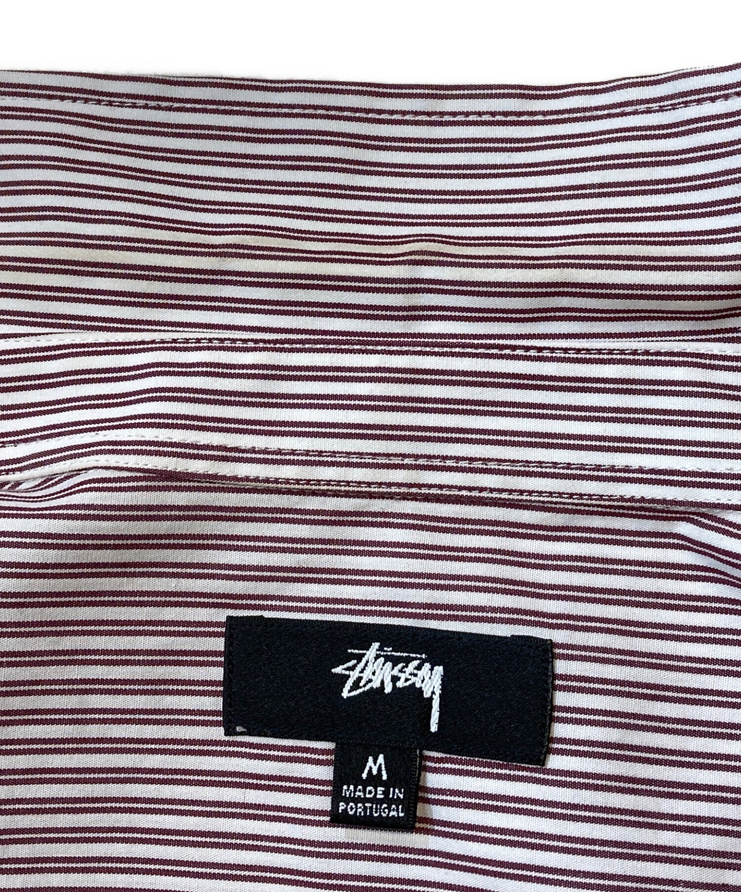 • stussy(ステューシー)stussy (ステューシー) BOXY SS SHIRT 8 BALL STRIPE レッド サイズ:Mの古着・服飾アイテム 襟ヨゴレ有