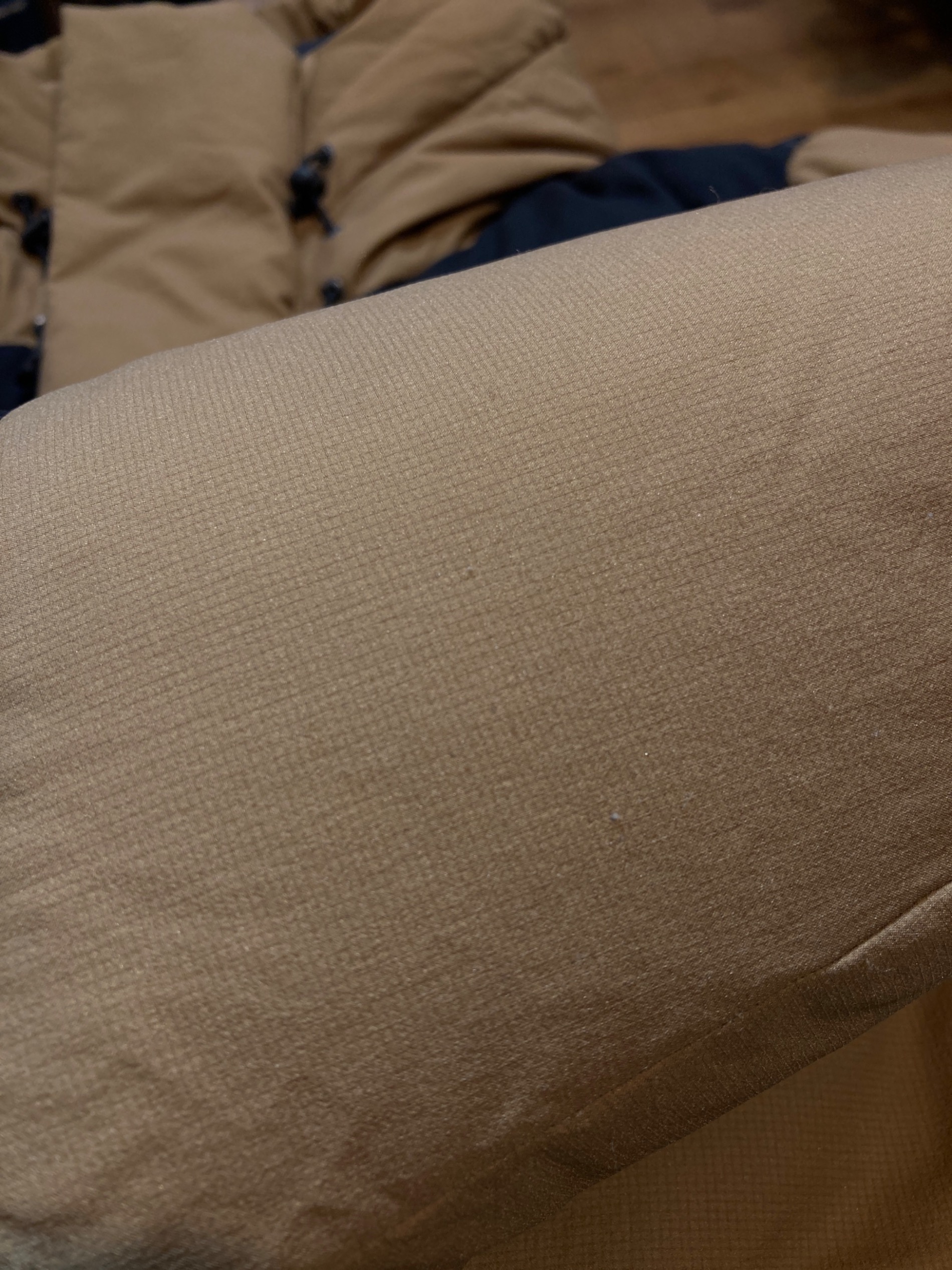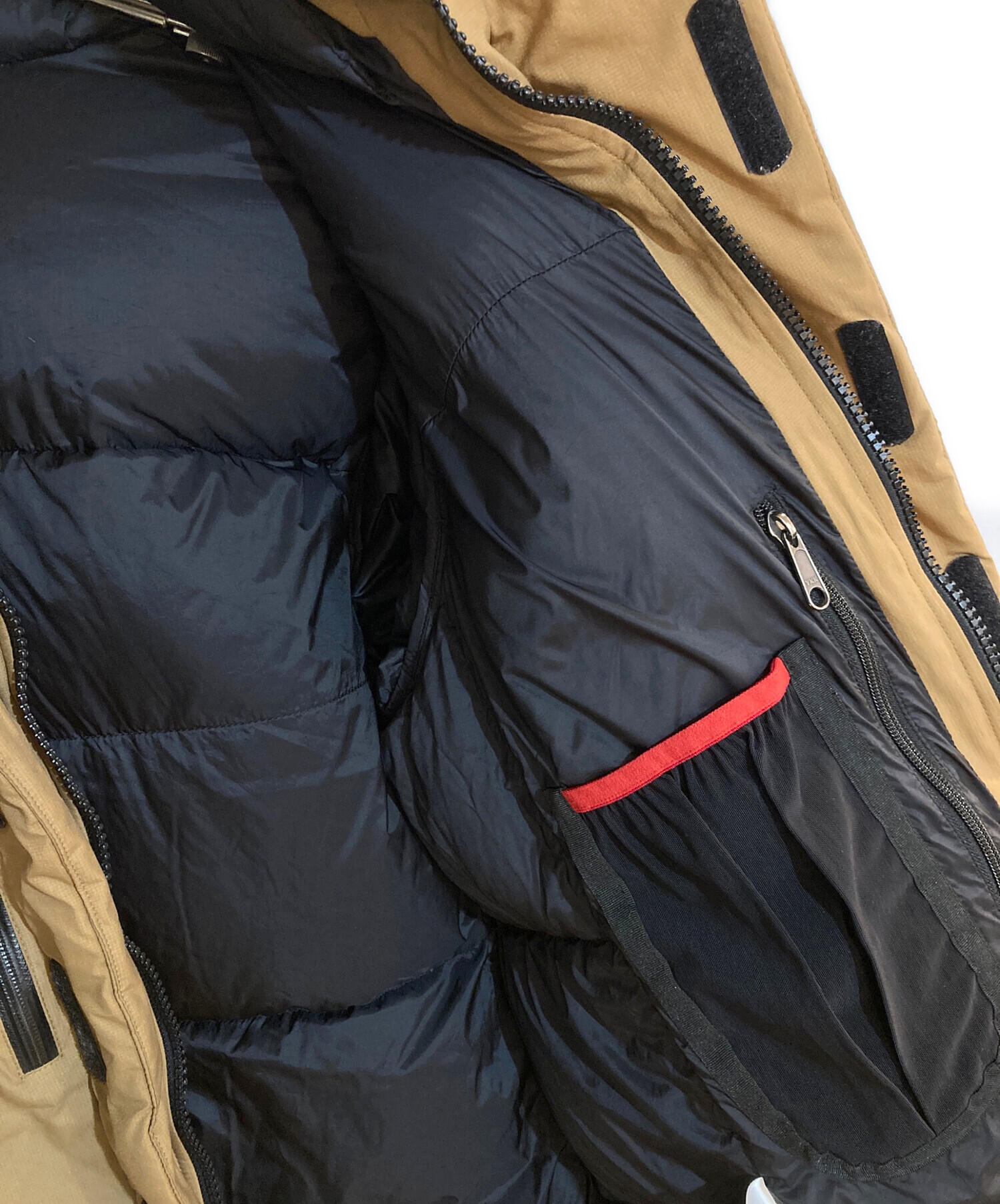 | 素材 | 表地:ナイロン 100% (コーティング等樹脂加工) 中綿:ダウン 72% レーヨン 20% フェザー 8% 裏地:ナイロン 100% |