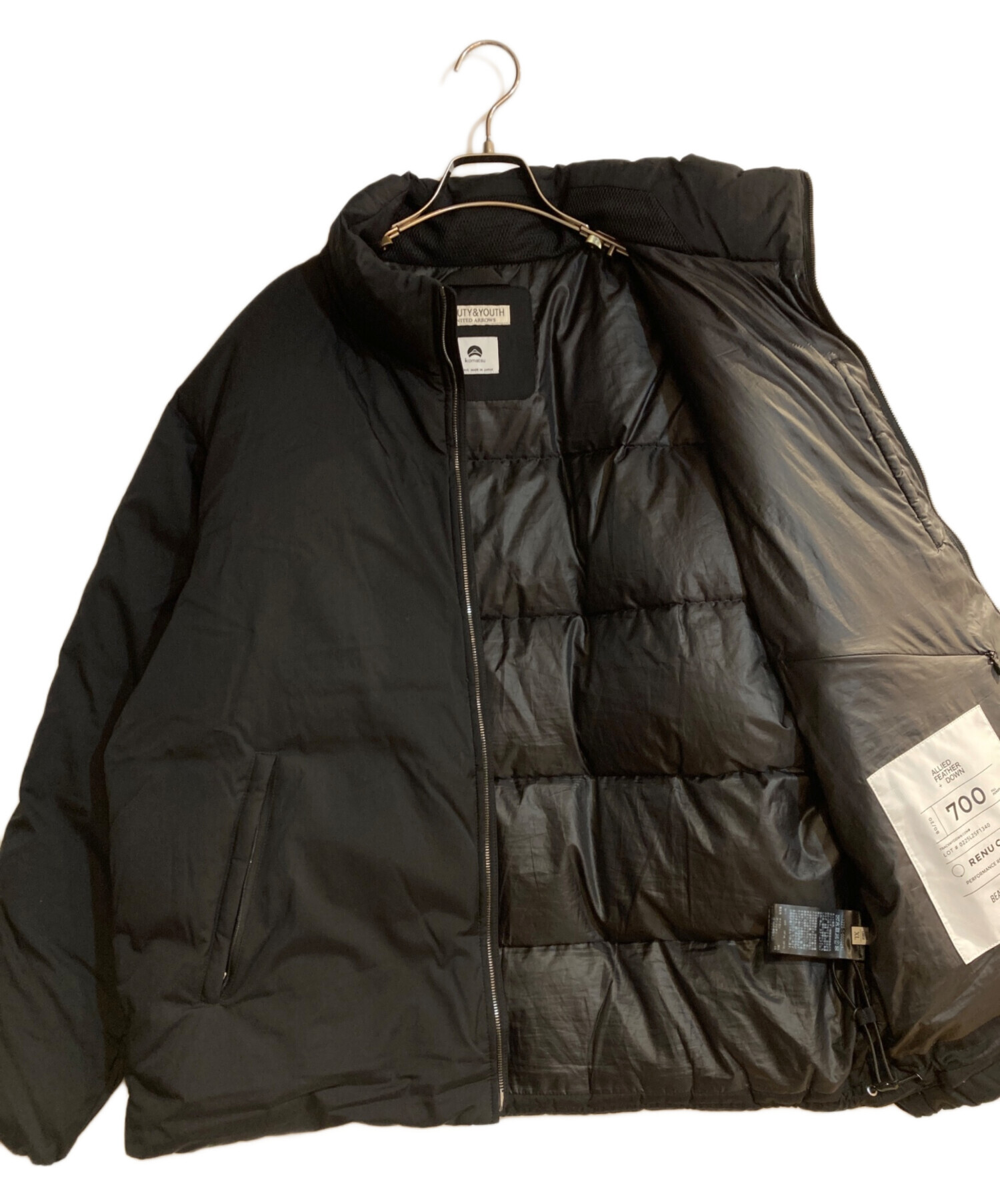 | 素材 | 表生地 ナイロン 96% ポリウレタン 4% (ポリウレタン樹脂加工) 裏生地 ポリエステル 100% 中綿 本体 ダウン 80% フェザー 20% その他 ポリエステル 100% 別布 ポリエステル 100% |