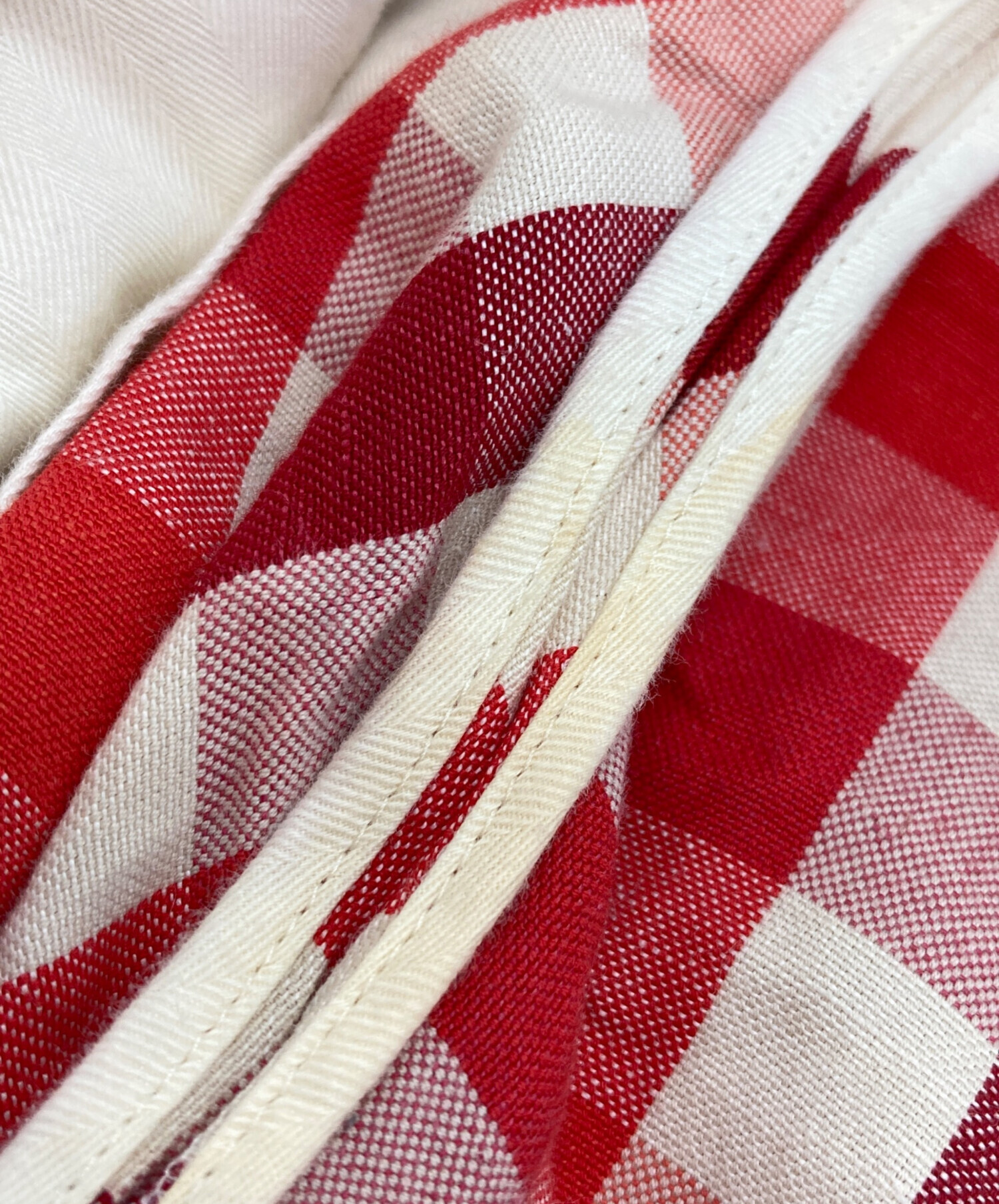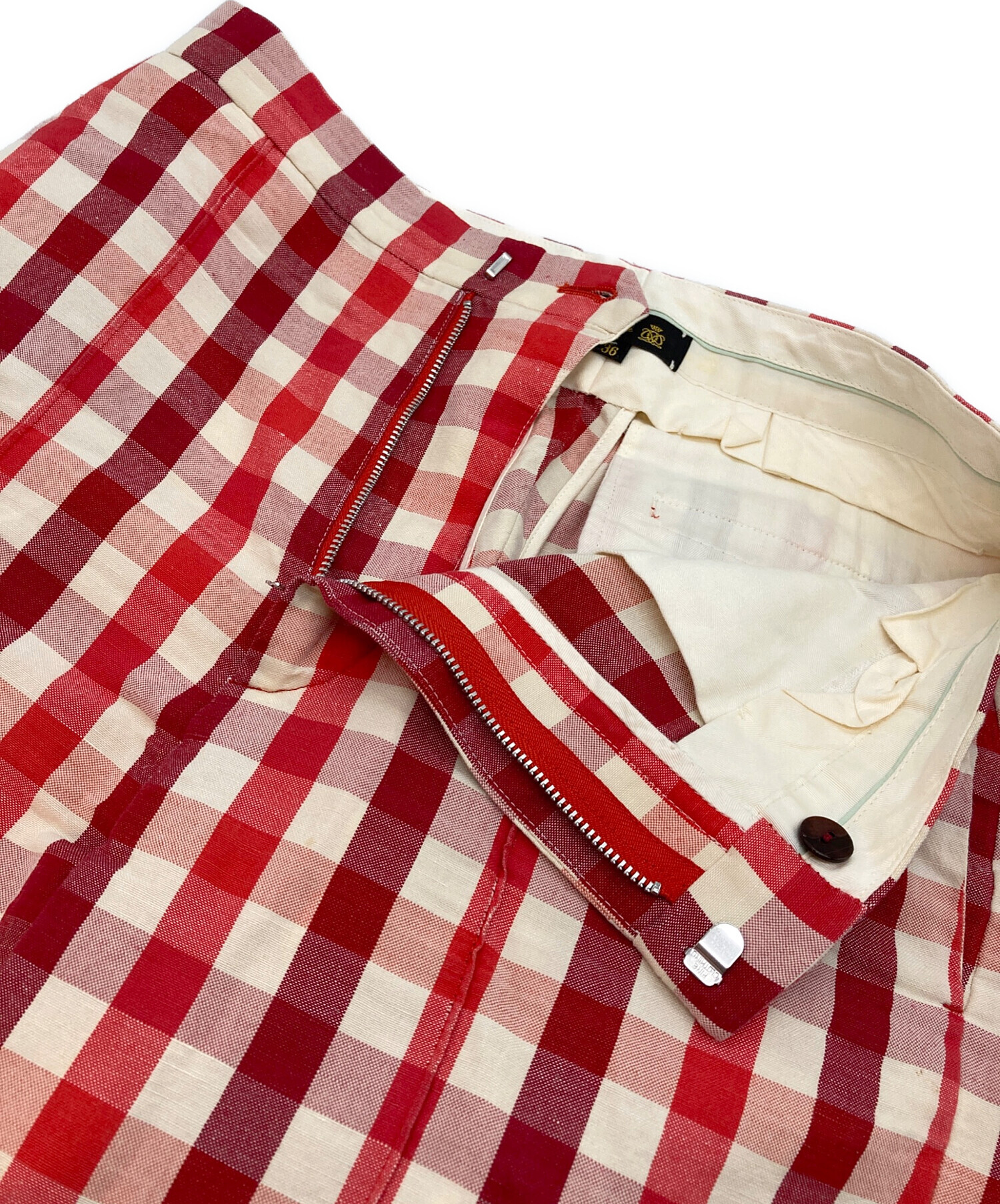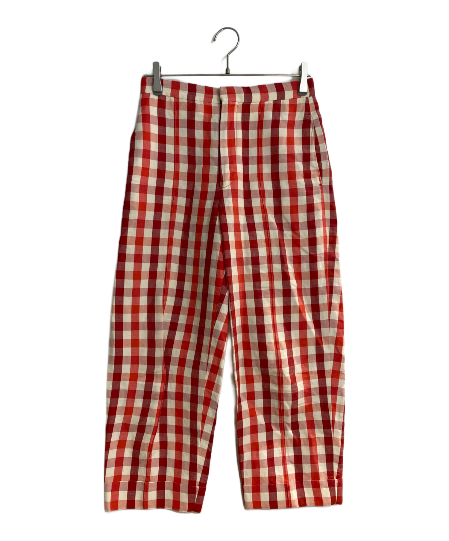 • DRAWER(ドゥロワー)Drawer (ドゥロワー) コットンヘンプチェックパンツ レッド サイズ:36の古着・服飾アイテム ヨゴレ有