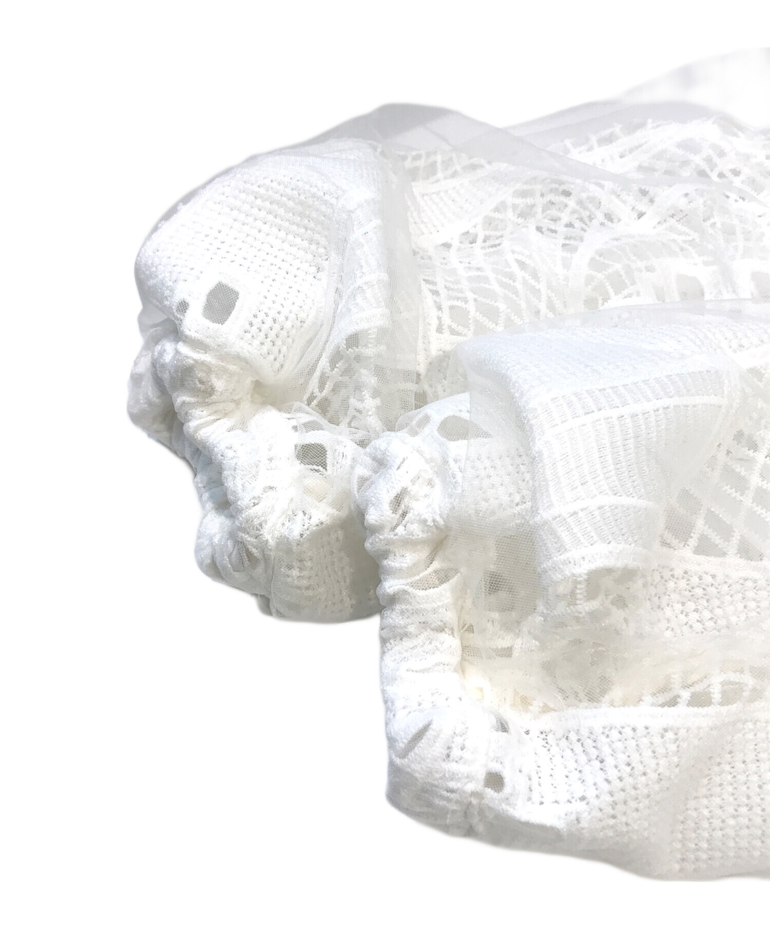 | 素材 | 表側: ナイロン100% 裏側: ナイロン100% レース: ポリエステル100% リブ: 綿50% ポリエステル50% 別布: ポリエステル100% パイピング: ポリエステル100% |