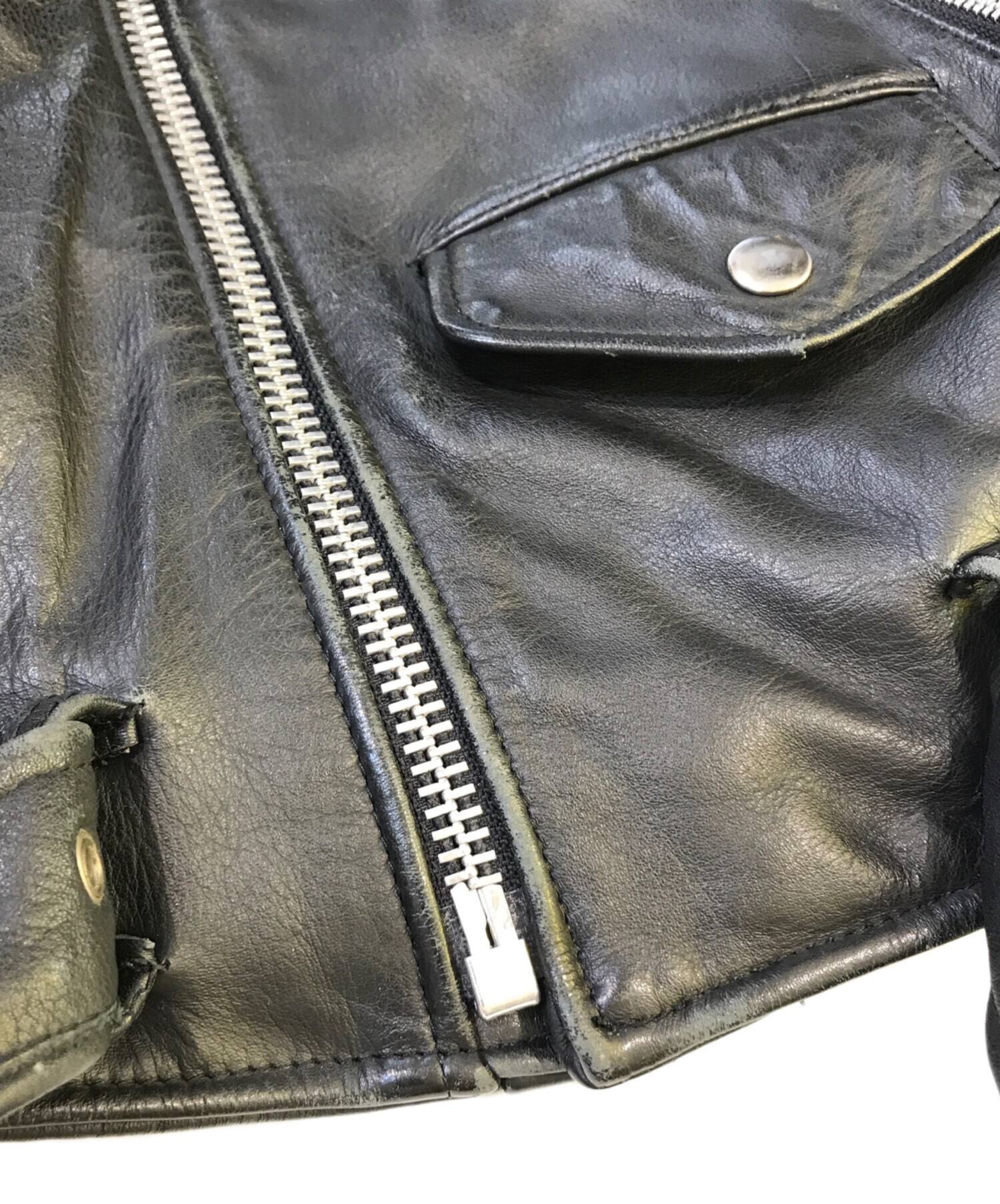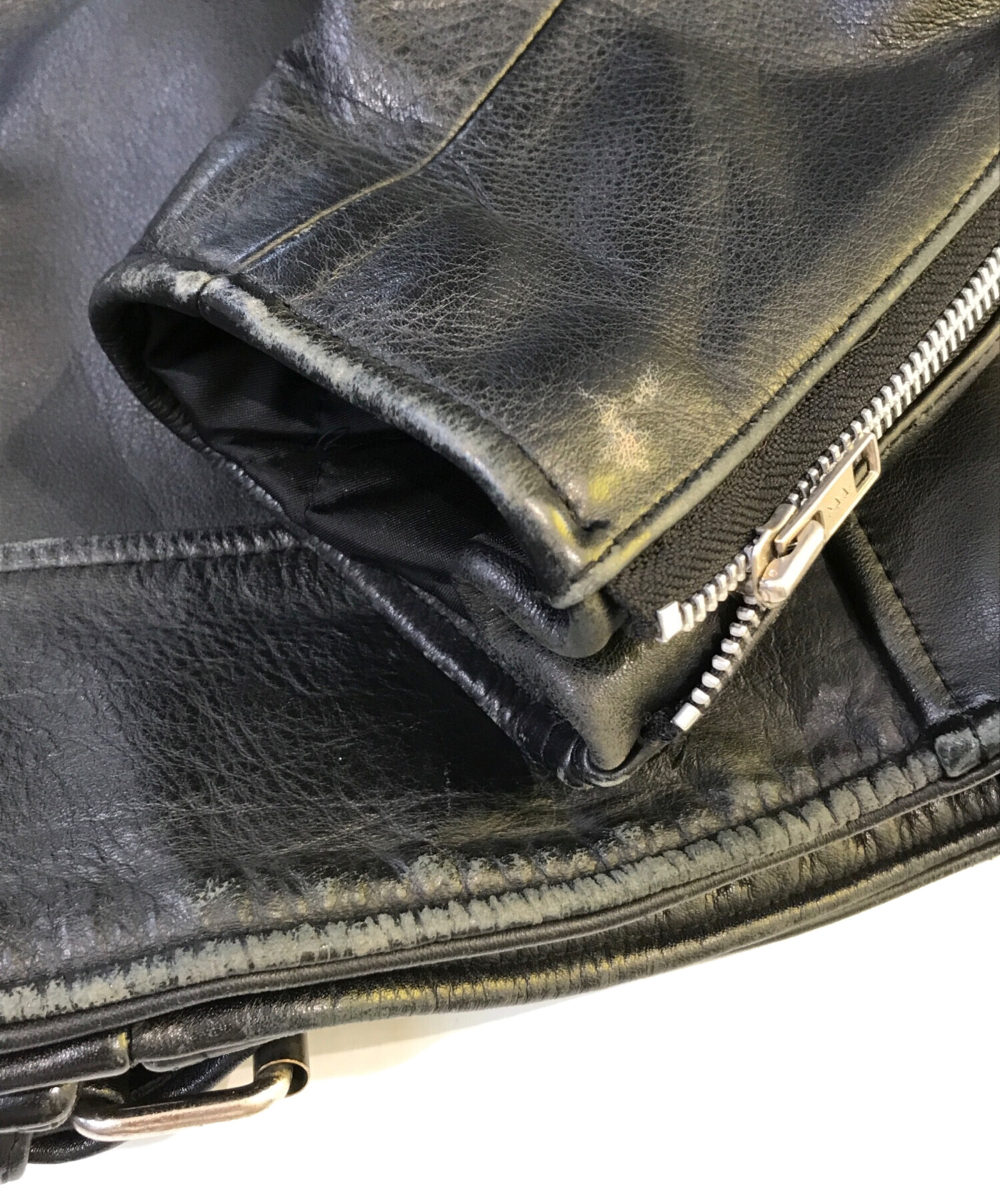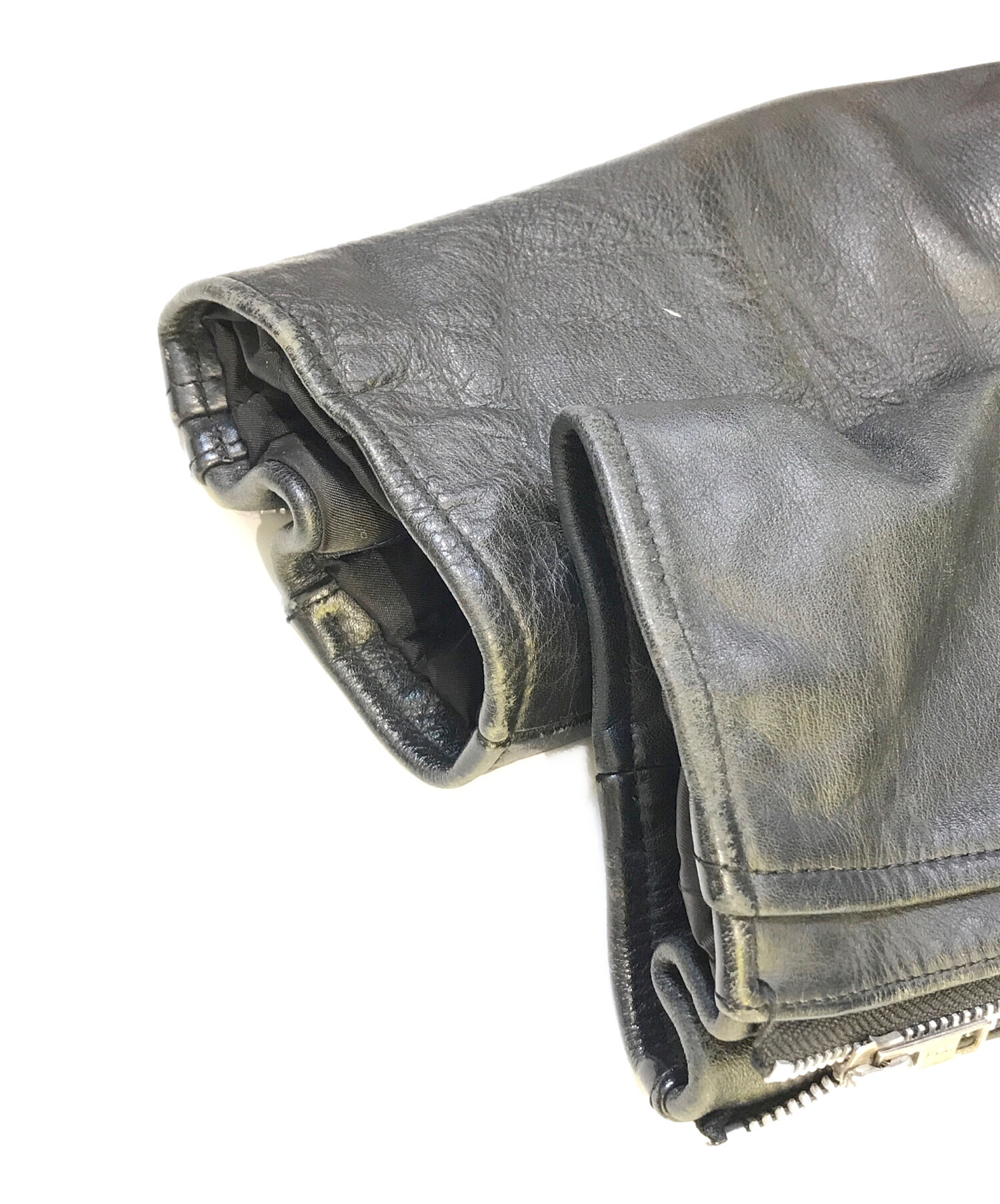 • NO BRAND(ノーブランド)NO BRAND (ノーブランド) レザージャケット ブラック サイズ:FREEの古着・服飾アイテム ダメージ